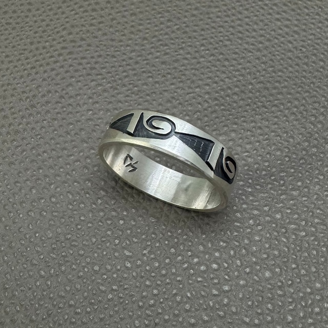 ホピ族 Darren Seweyestewa作によるオーバーレイリング。 シンプルで様々なスタイルに合わせやすいデザインです。 ホピ族の伝統的な技法である「オーバーレイ」で作られた作品です。 上のプレートにデザインを描き、糸鋸で切り絵のように切り抜き、その後下のプレートと貼り合わせます。 高い技術が必要とされる技法です。 ホピジュエリー好きの方にぜひ! ■サイズ:24号 0.6cm×2.2cm(縦×横) ■素材: STERLING SILVER