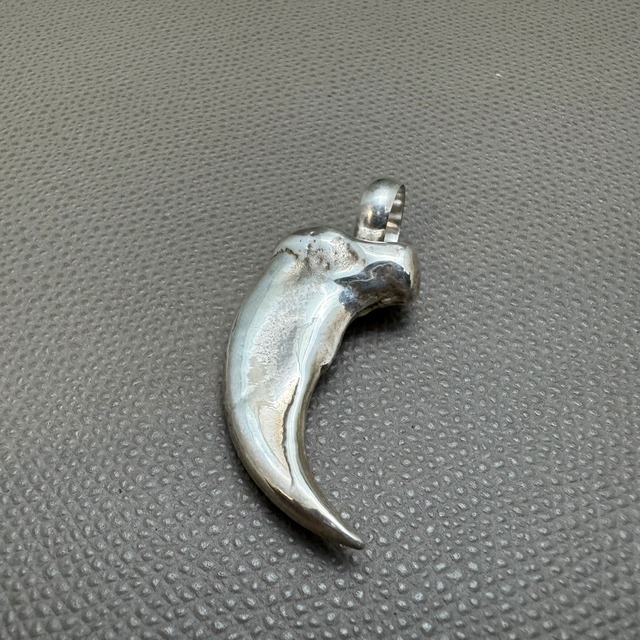 NAVAJO族 アーティスト作 ベアクロートップ。 熊の爪をリアルに再現した作品で重量感もあります。 ベアは力強さや権力の象とされています。 インディアンジュエリー好きの方に是非! ■サイズ:たて5.0cm×よこ2.5cm ■素材:sterling silver ※チェーンは別売りです。
