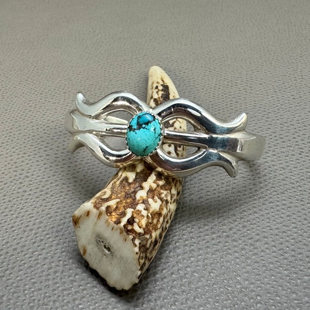 NAVAJO族 Edith Kee作 キングマンターコイズバングル シルバー INDIAN ネイティブ ホピ ズニ ナバホ アクセ ブレス 小さいサイズ