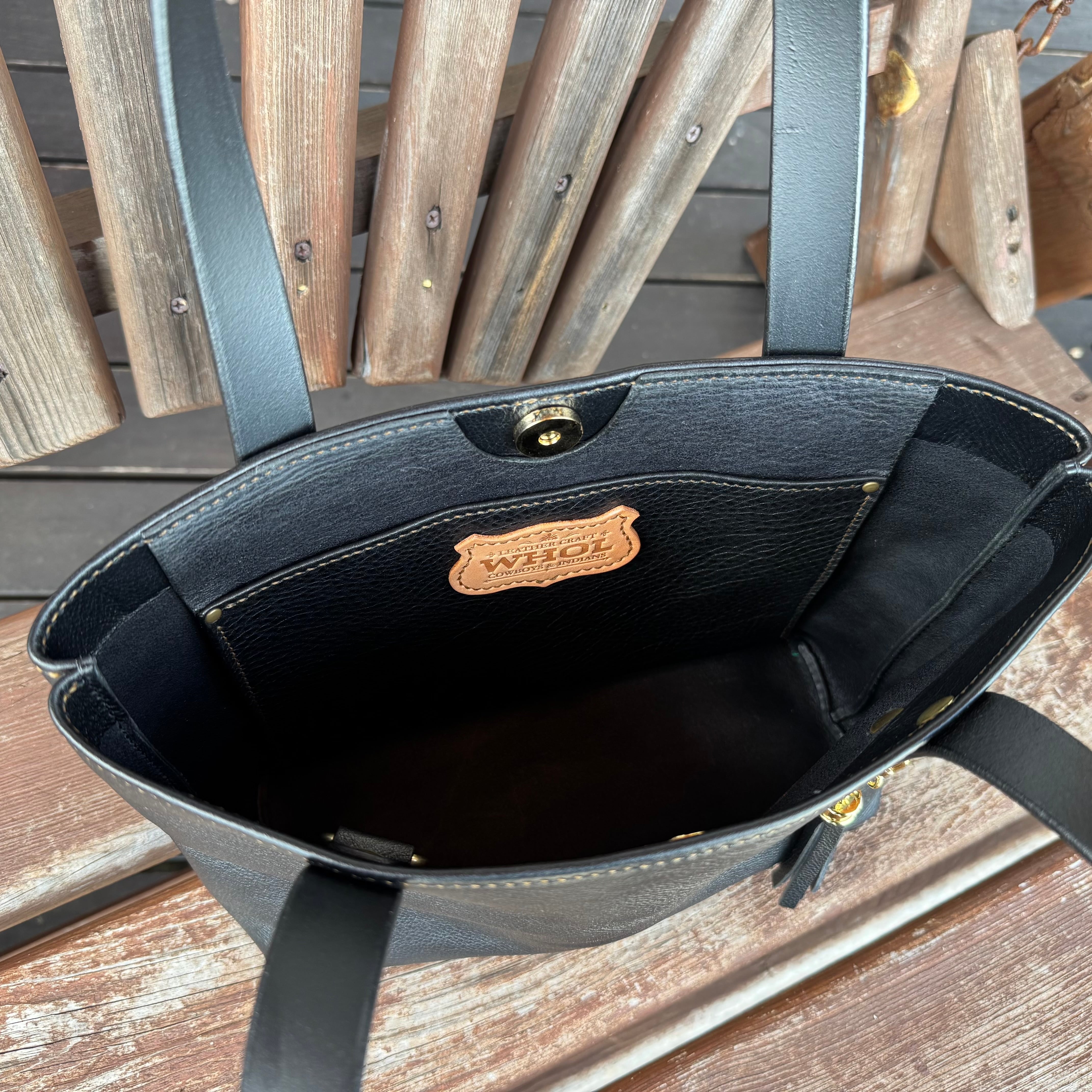 レザークラフトWHOLオリジナル アリゾナレザートートバッグM ハンドメイド 手縫い カバン 本革 牛革 ブラック