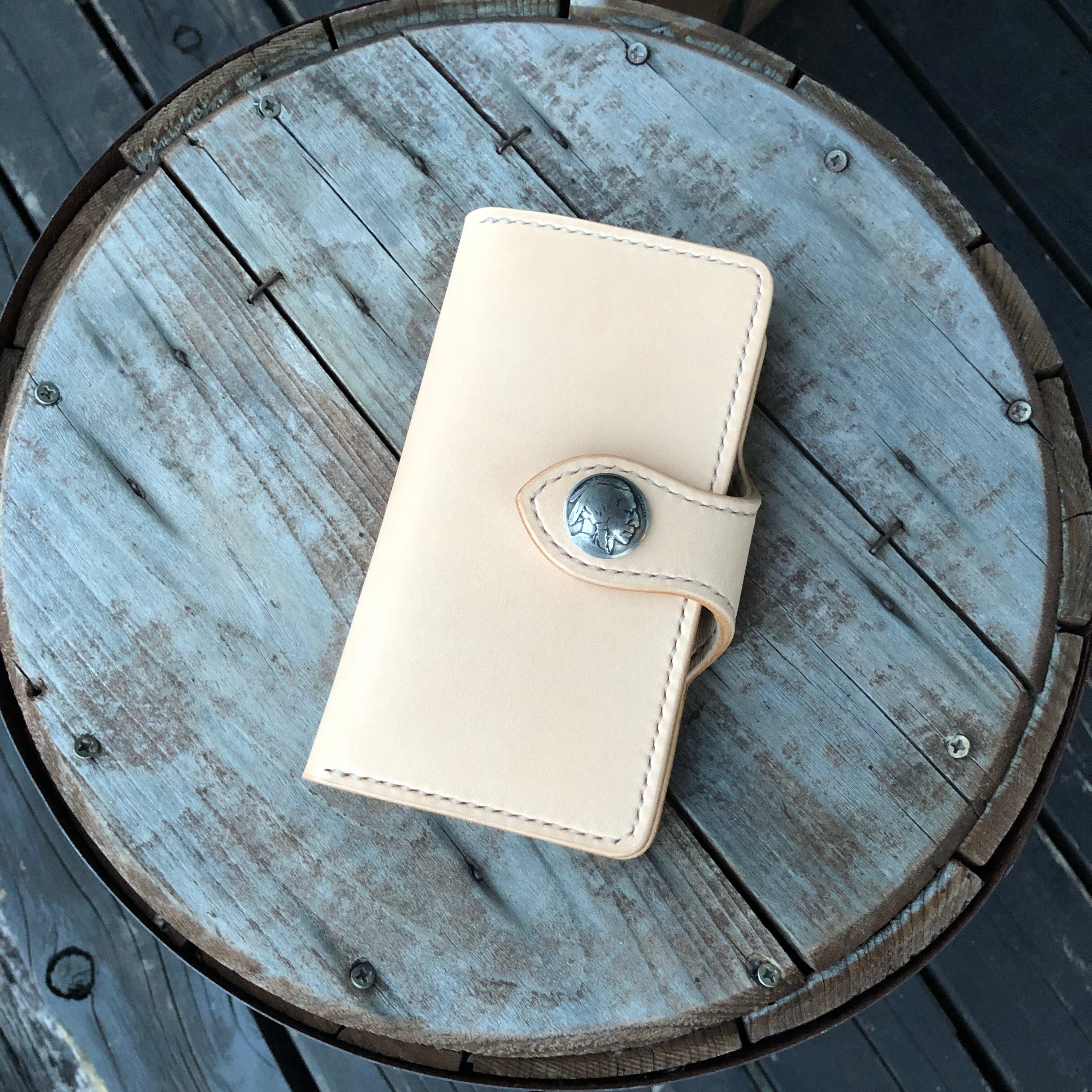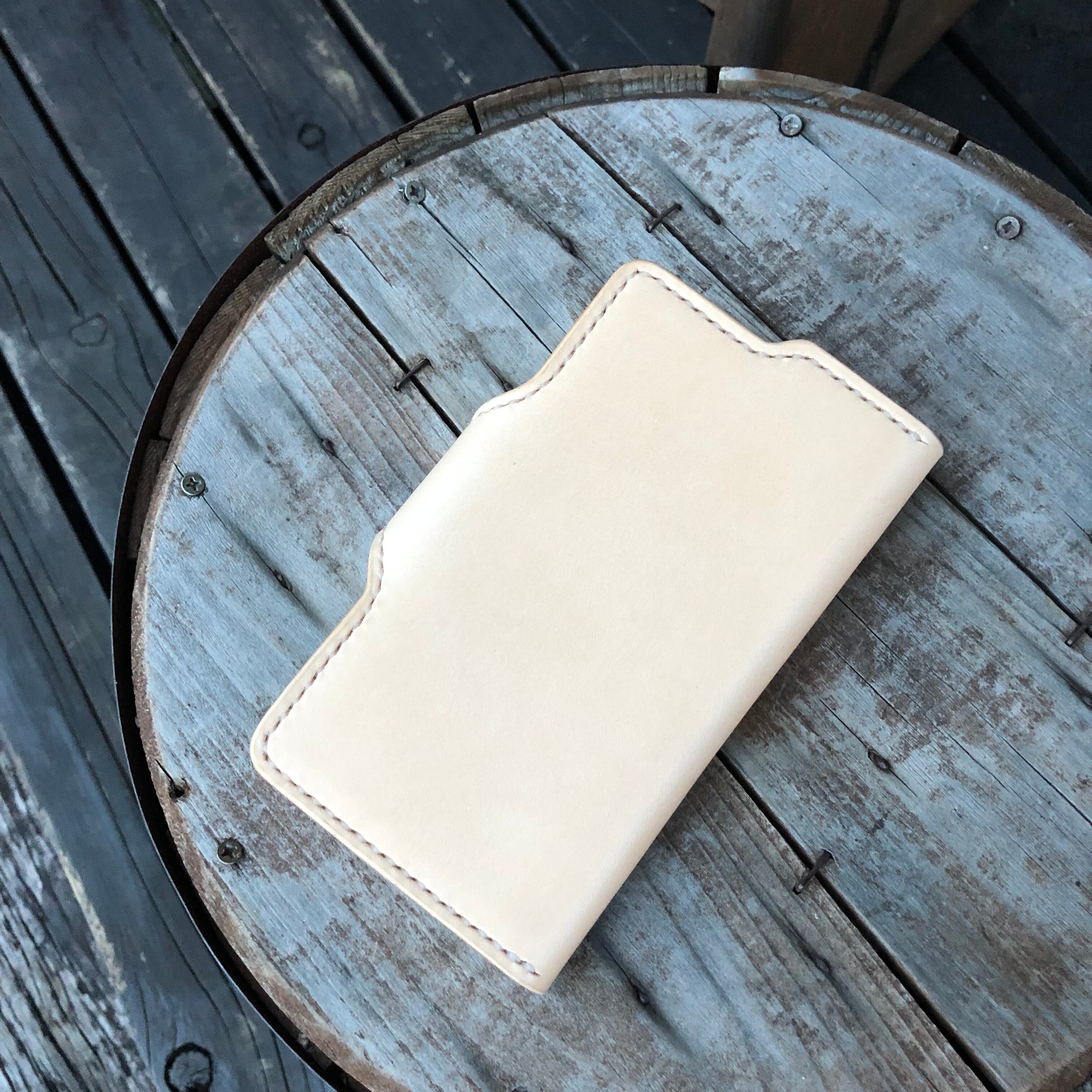 WHOLオリジナル iPhone14Pro Android EUレザー スマホレザーケース 手帳型 スライド式 本革 牛革 手縫い ハンドメイド