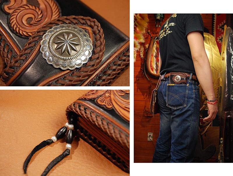 レザークラフトWHOL社のオリジナルライダースウォレット(財布)シェリダンスタイル カービング。
