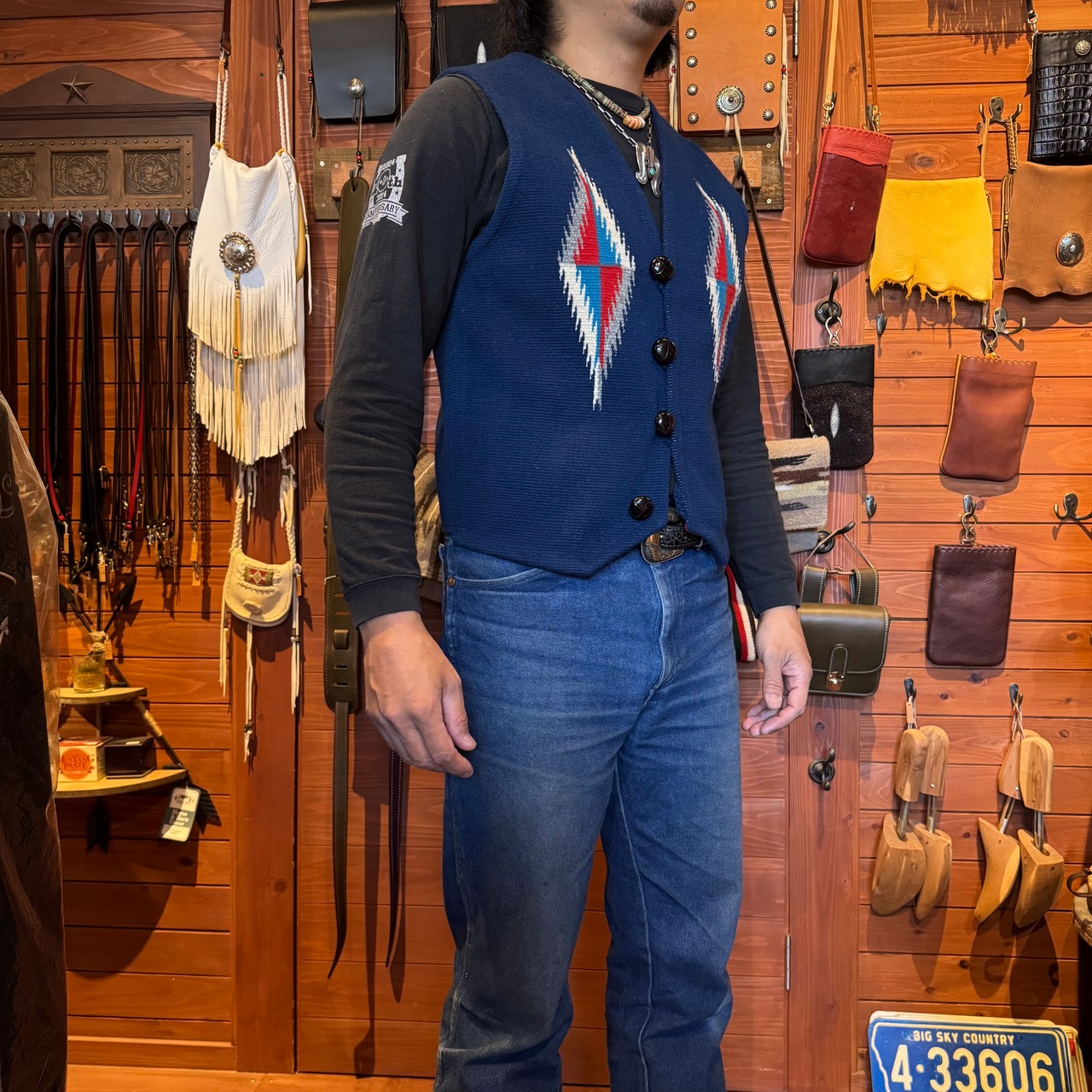 ORTEGA's(オルテガ)ラグ チマヨベスト サイズ38 センチネラ チマヨ NAVAJO インディアン INDIAN 手織り ブルー