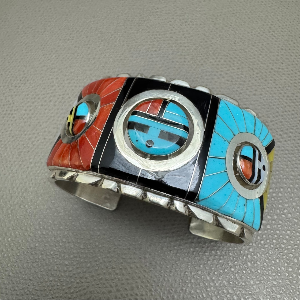 何と言ってもズニ族らしい丁寧で美しいインレイワークの真ん中に、クルクル回る可愛らしいサンフェイスがとても印象的です。