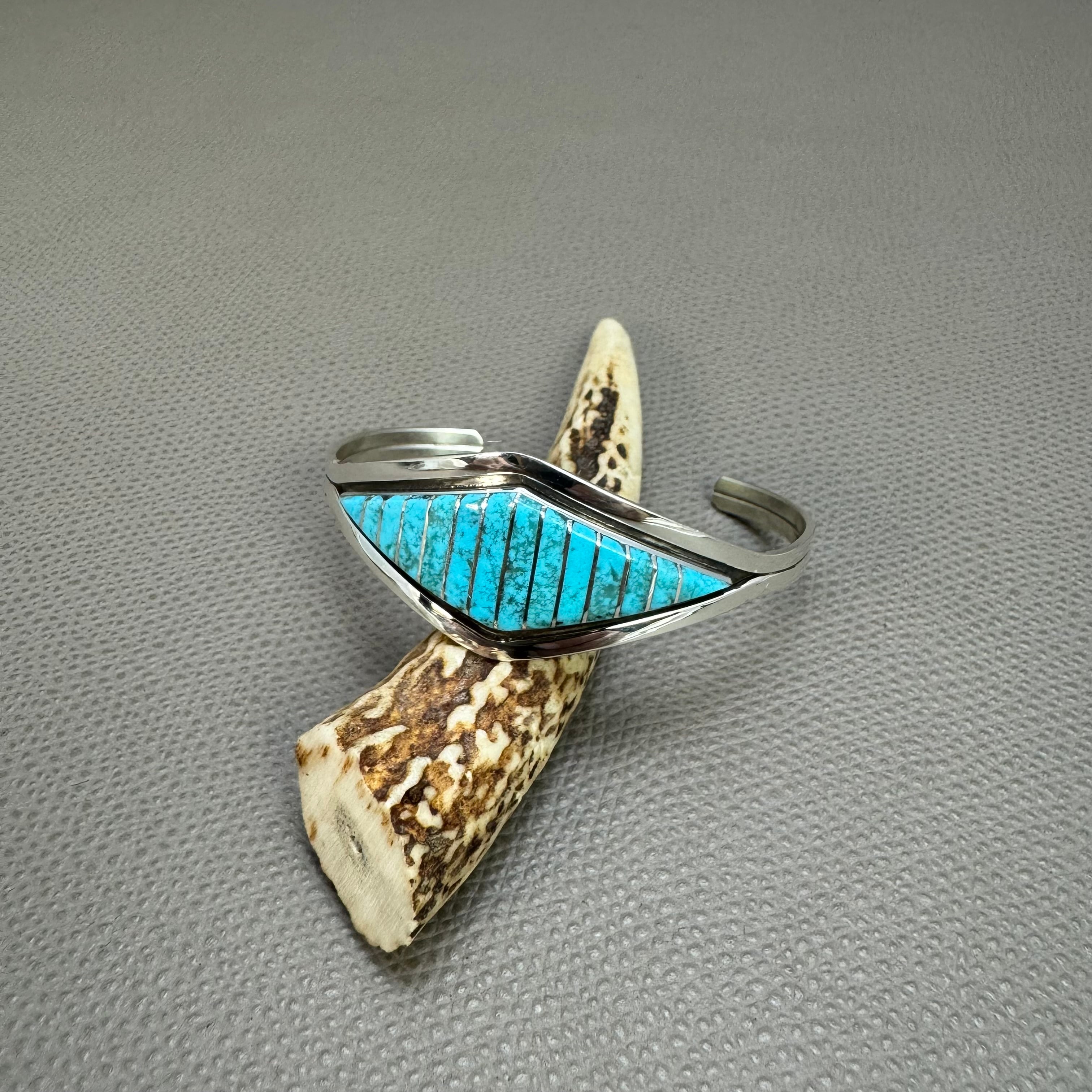 ZUNI族 アーティストMarvin Luarkie作 ターコイズチャネルインレイバングルです。