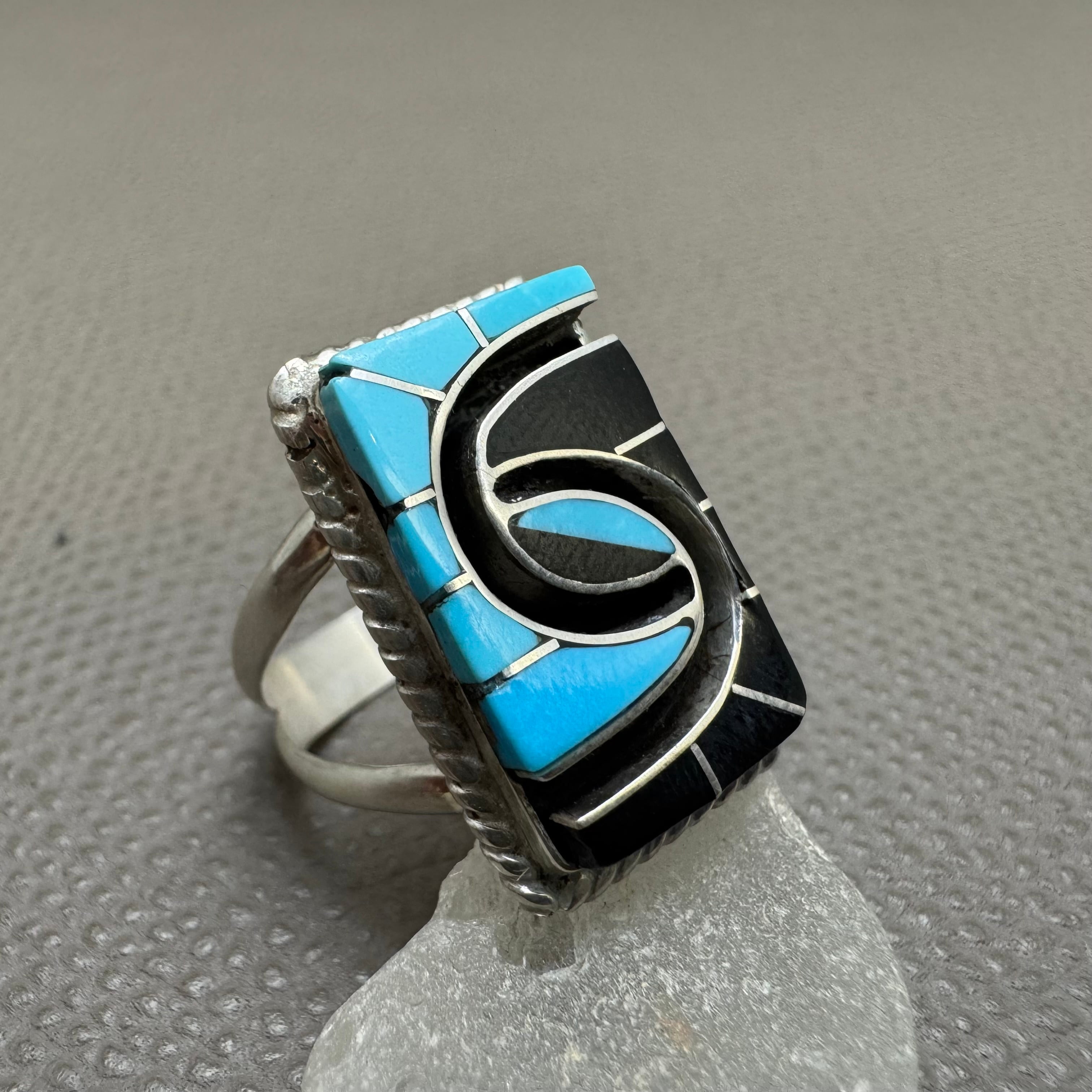 ZUNI族の人気アーティストAmy Wesley/エイミー・ウェスリーが制作した、インレイワークが見事なリングです。