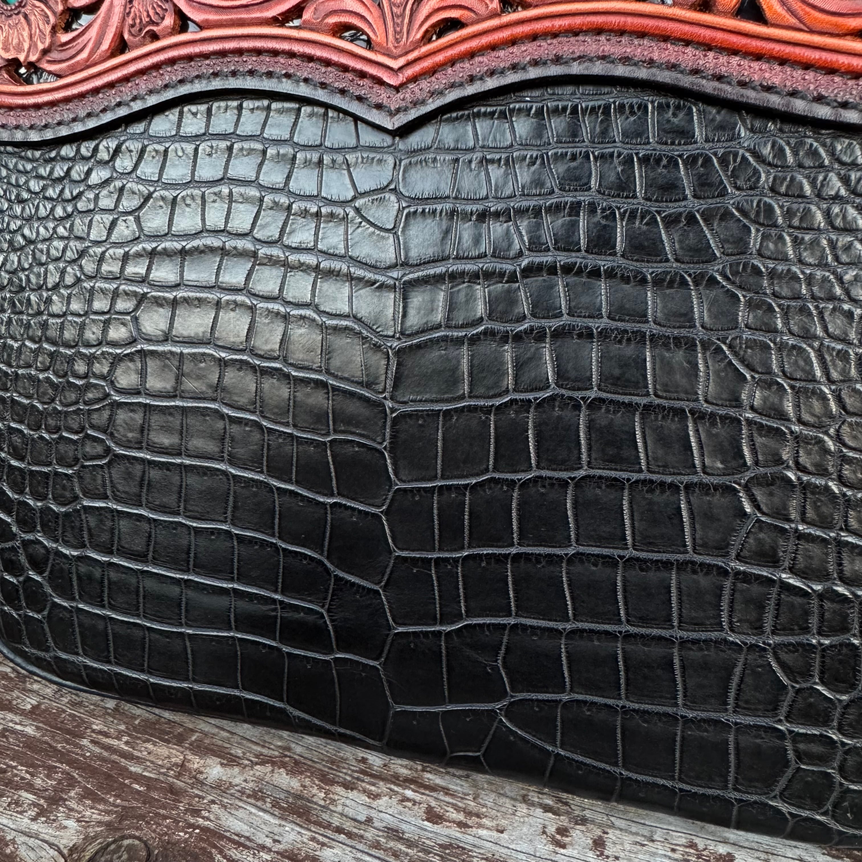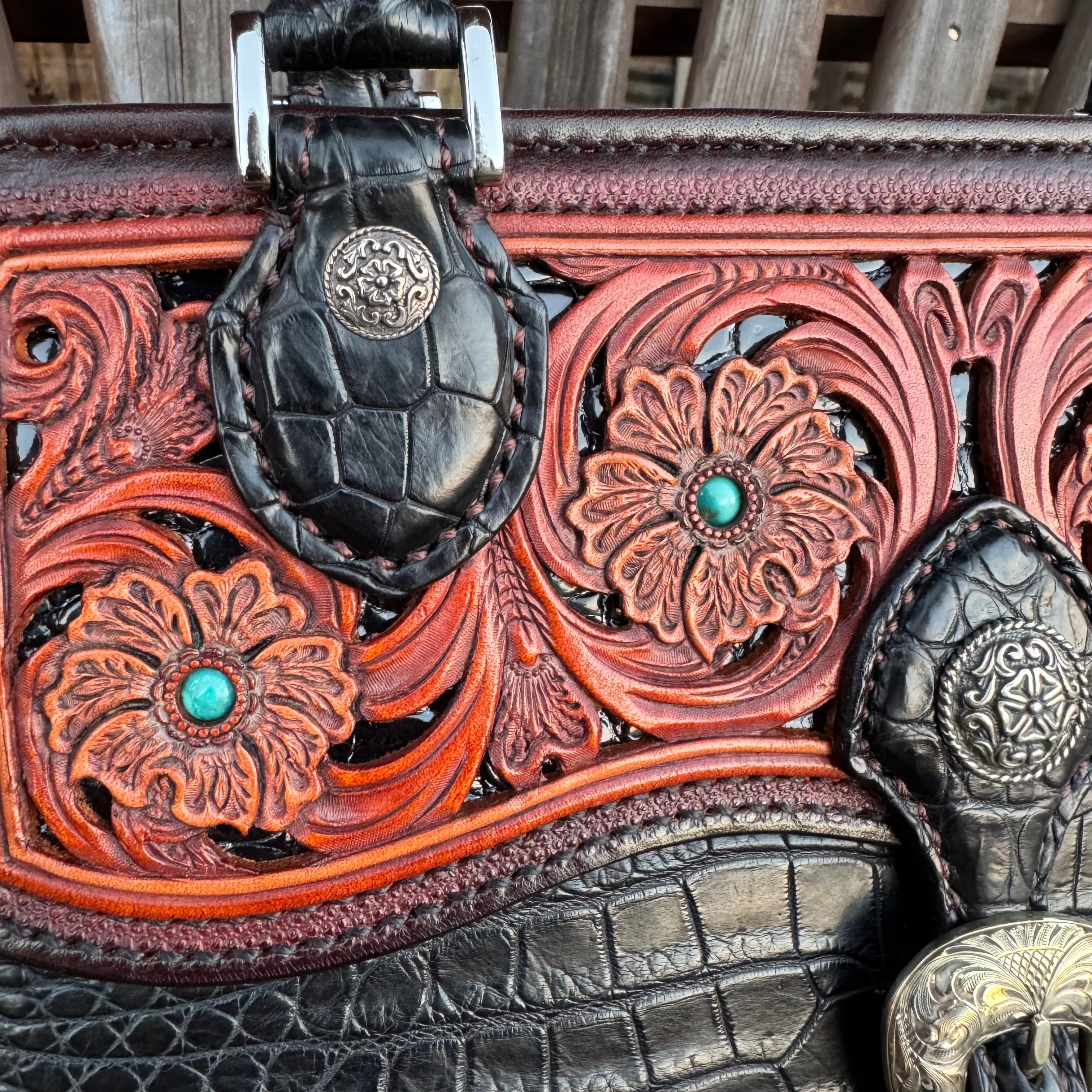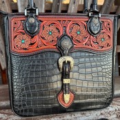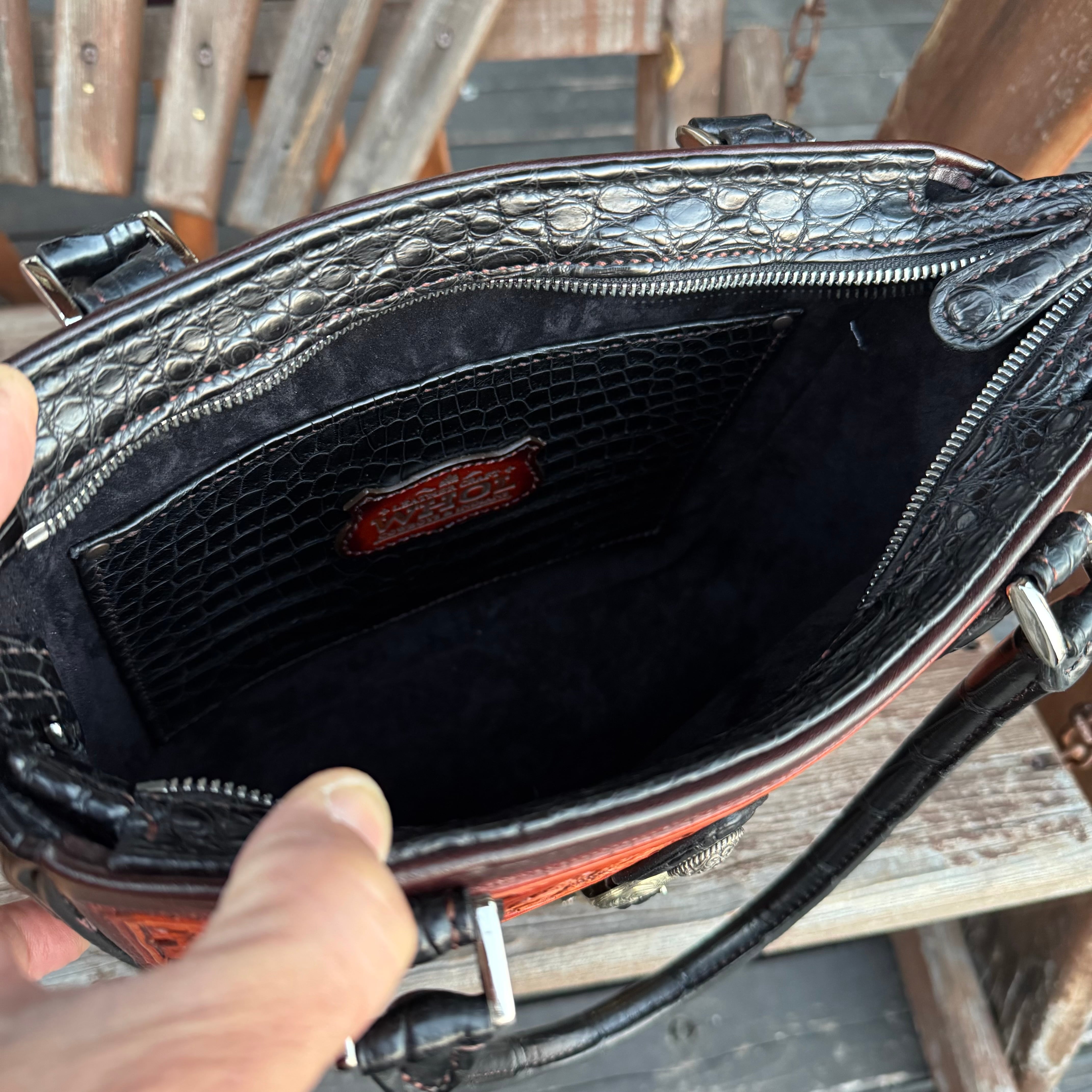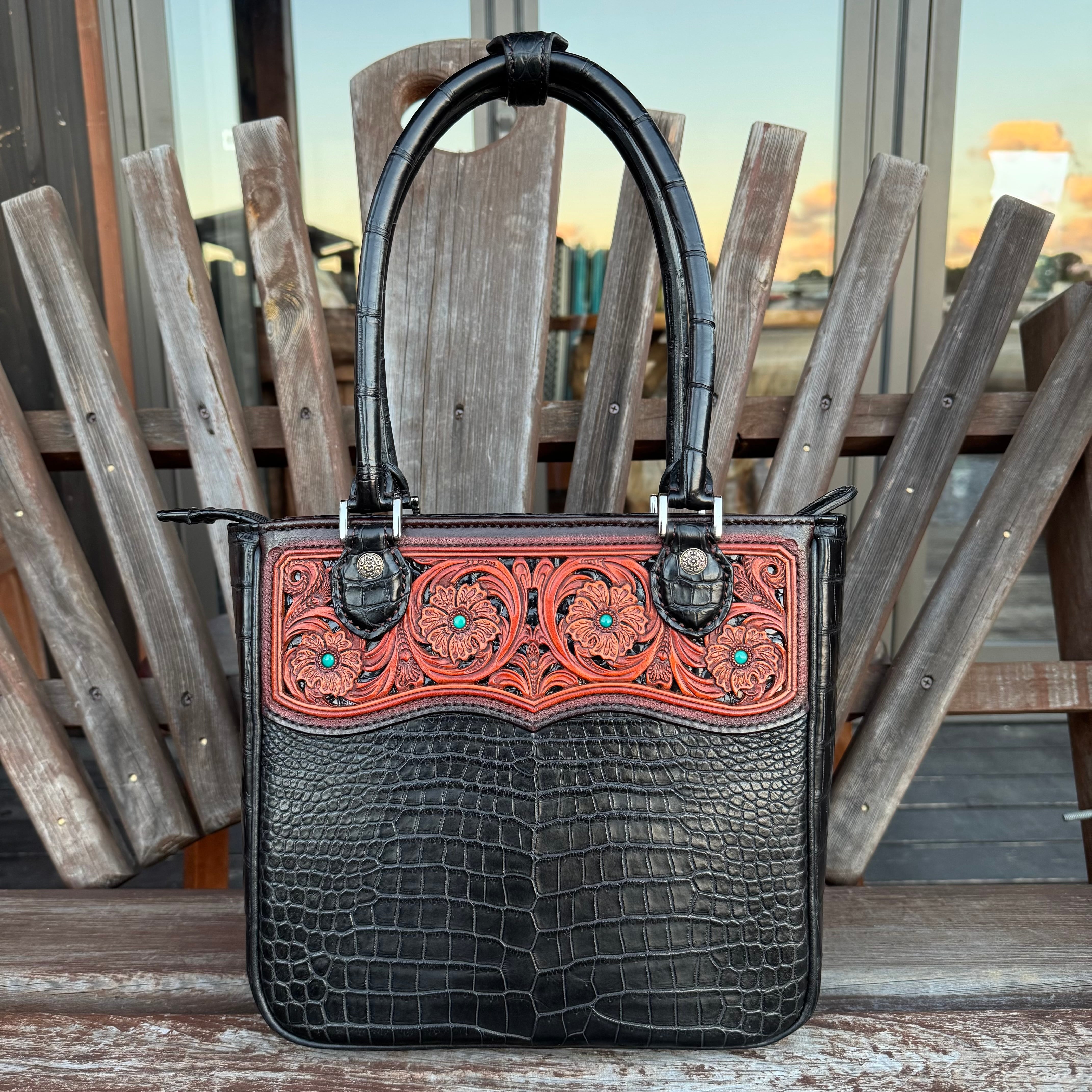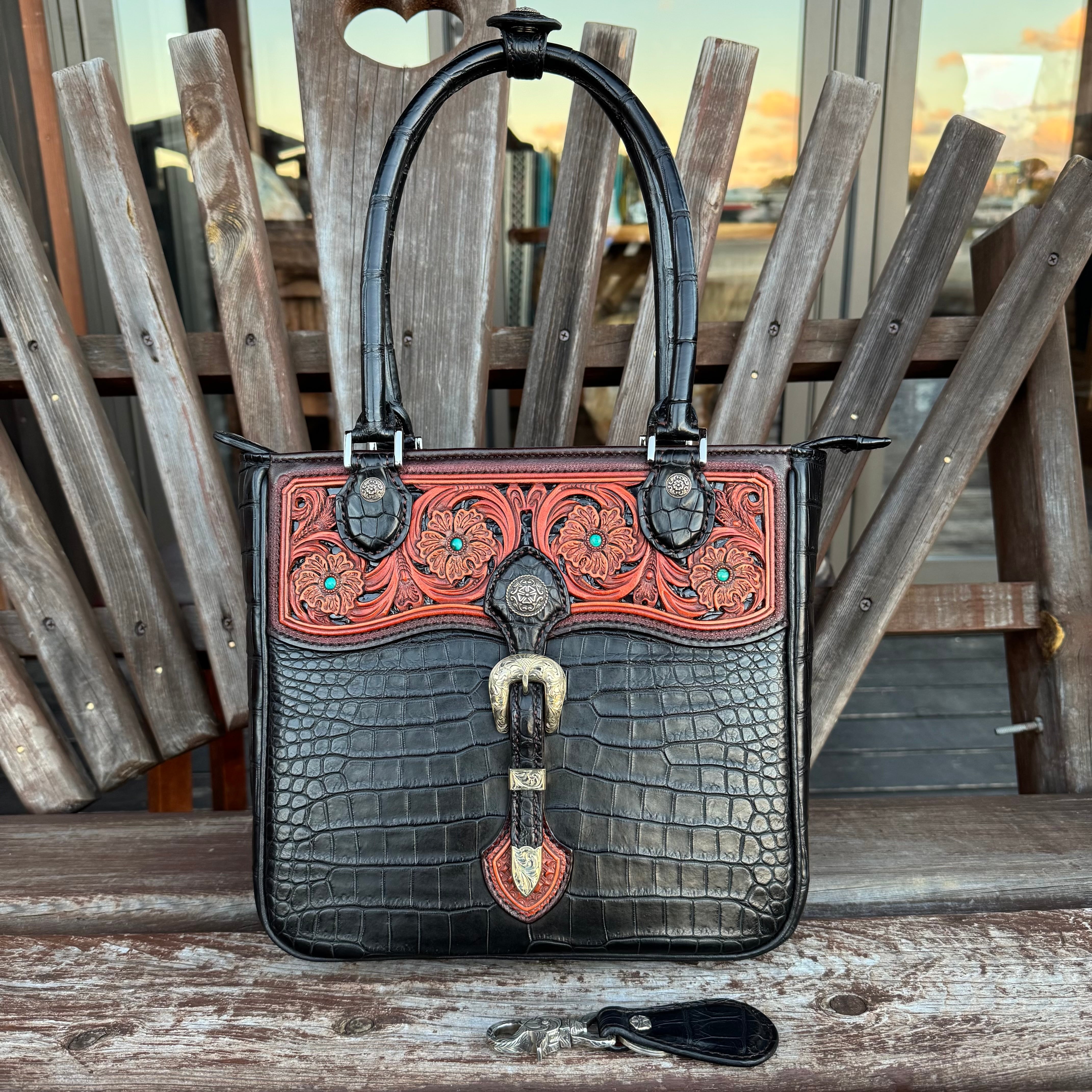 レザークラフトWHOLオリジナル、レザーカービング&クロコダイルレザー トートバッグ。