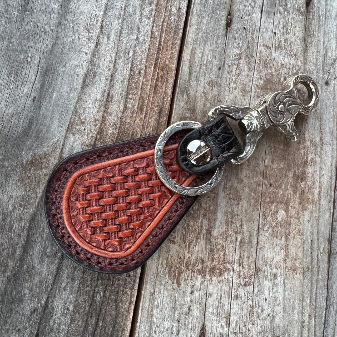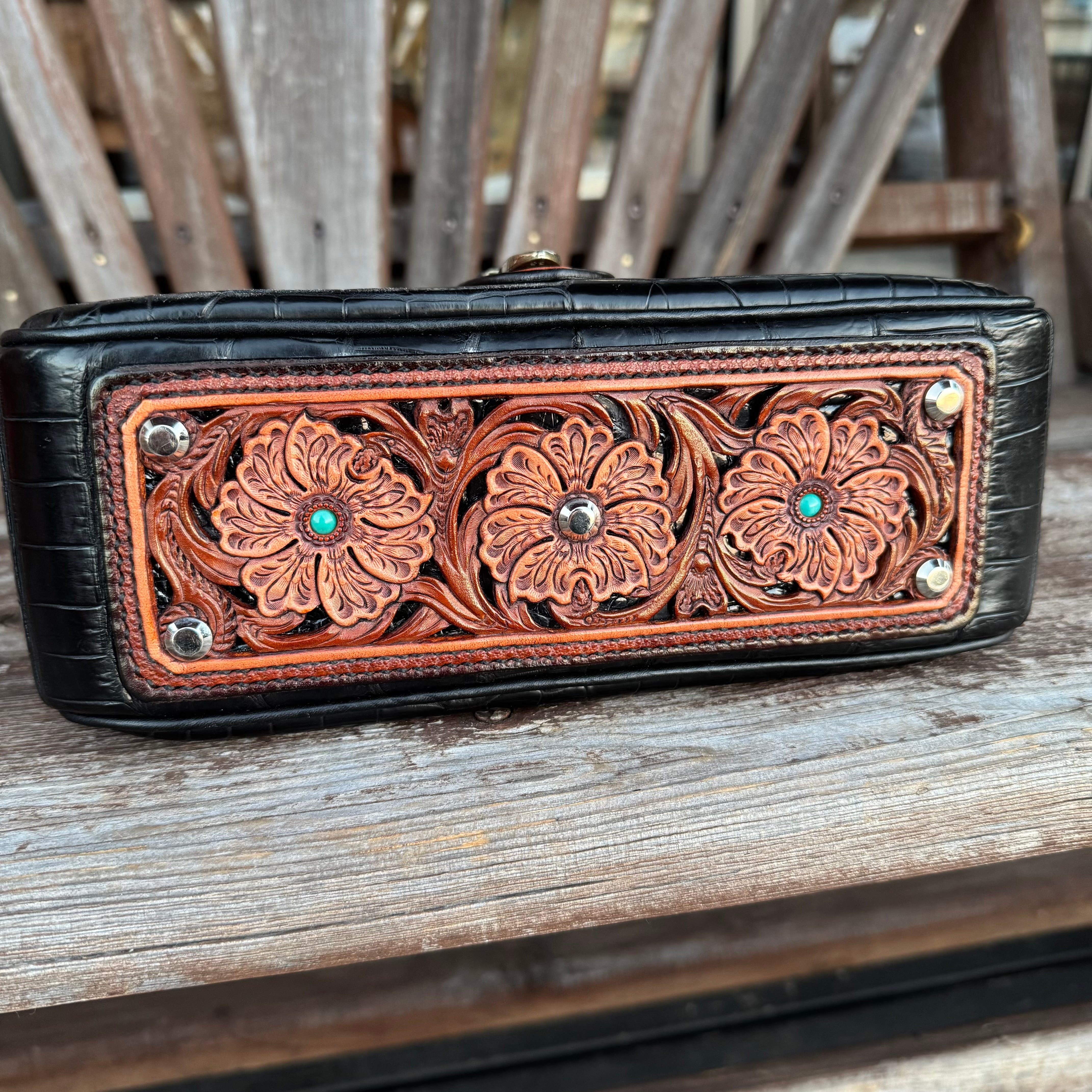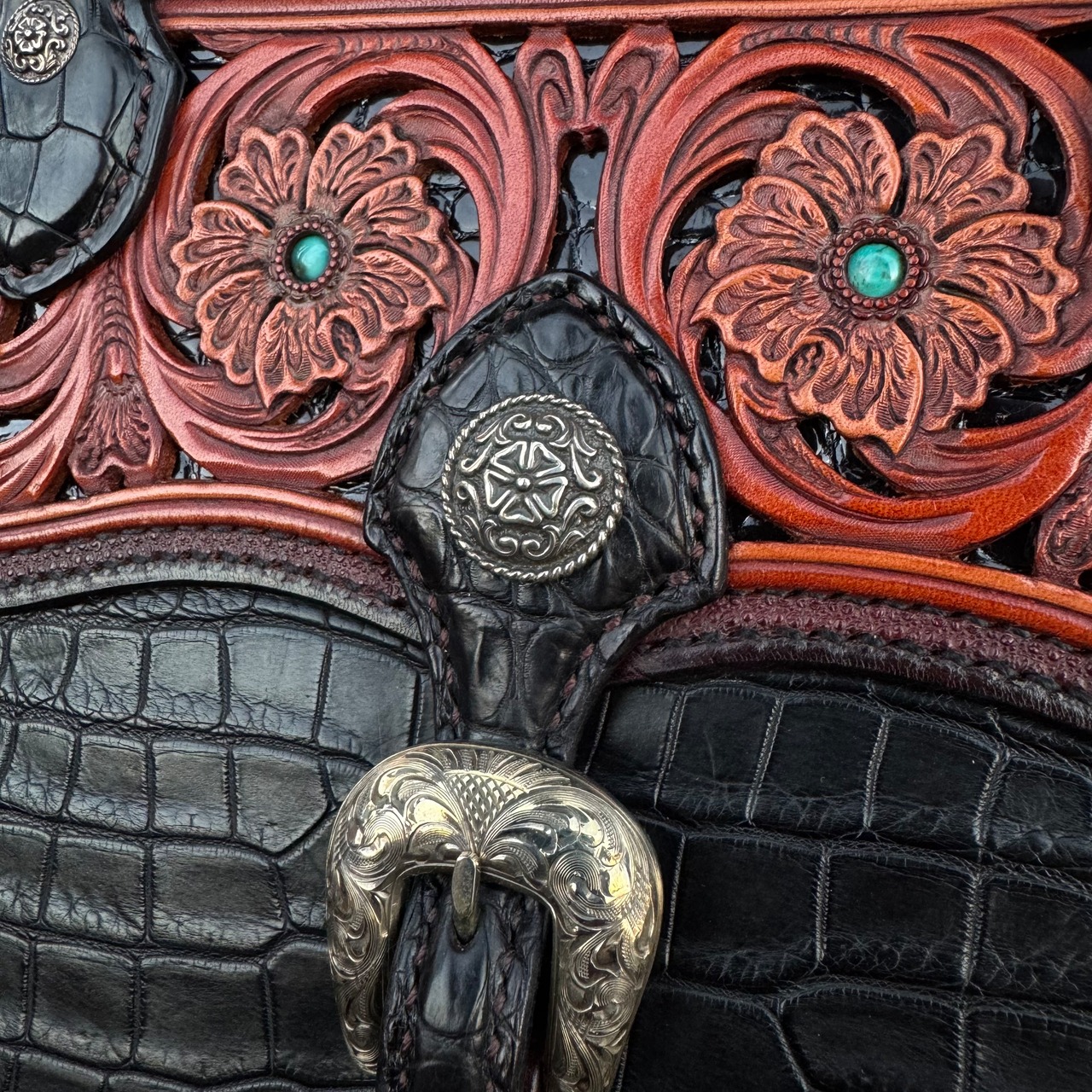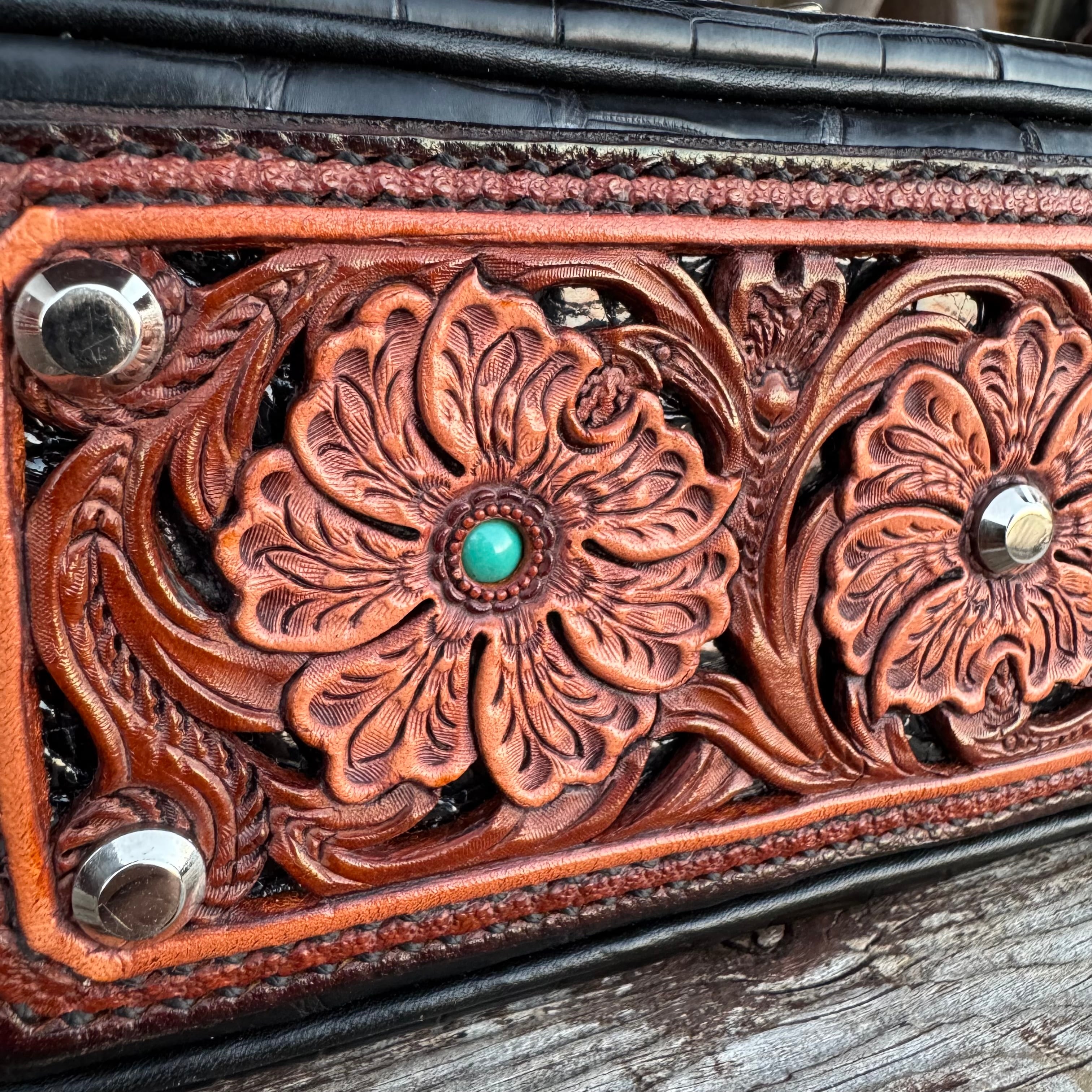レザークラフトWHOLオリジナル、レザーカービング&クロコダイルレザー トートバッグ。
