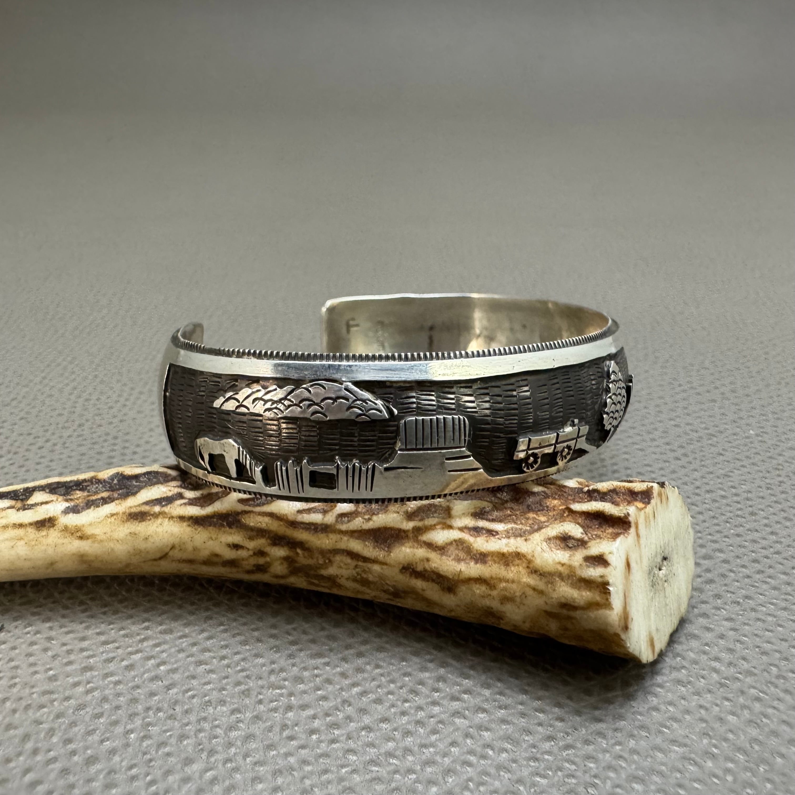 NAVAJO族 Johnson Largo作 ストーリーテラーバングル シルバー INDIAN ネイティブ ホピ ズニ ナバホ アクセ ブレス