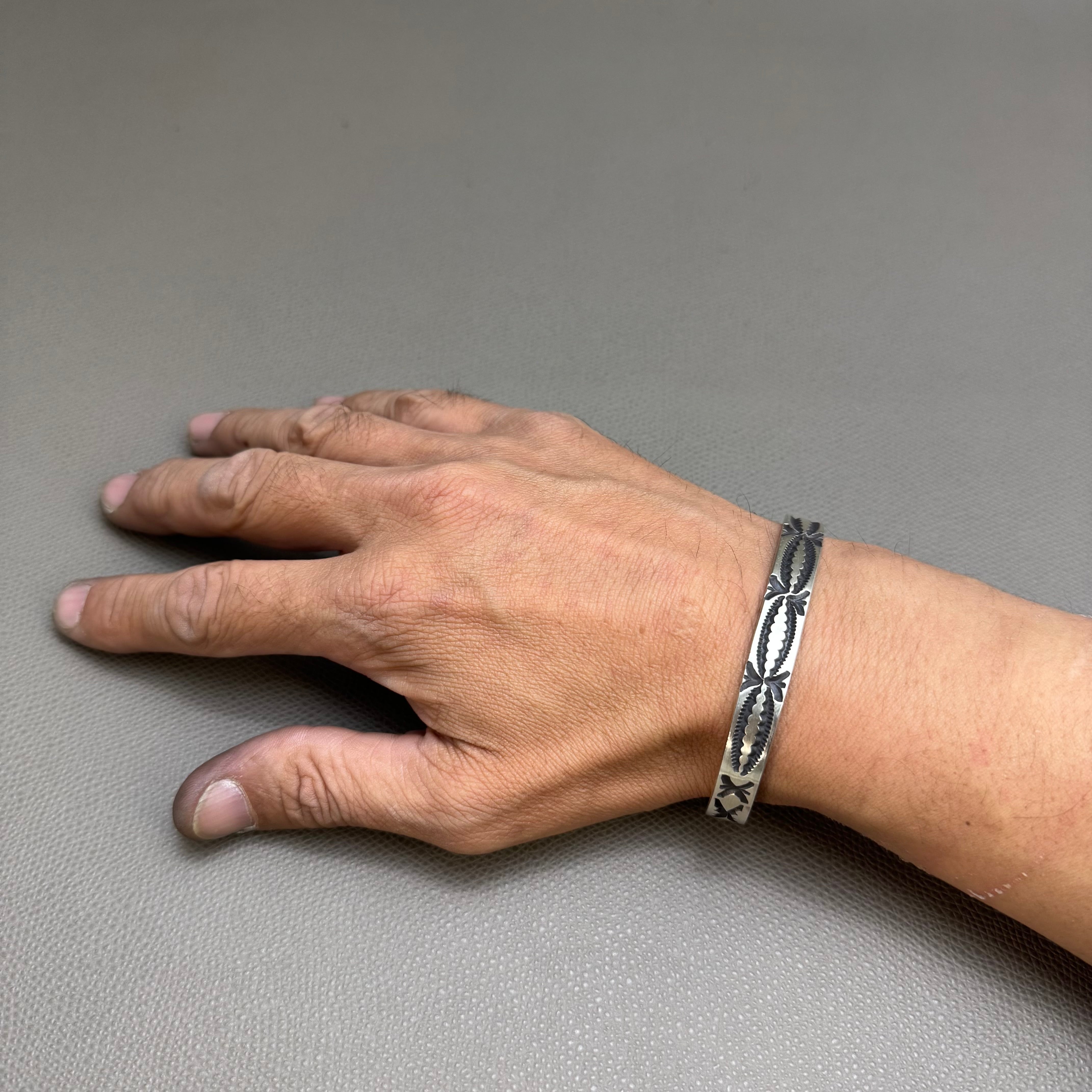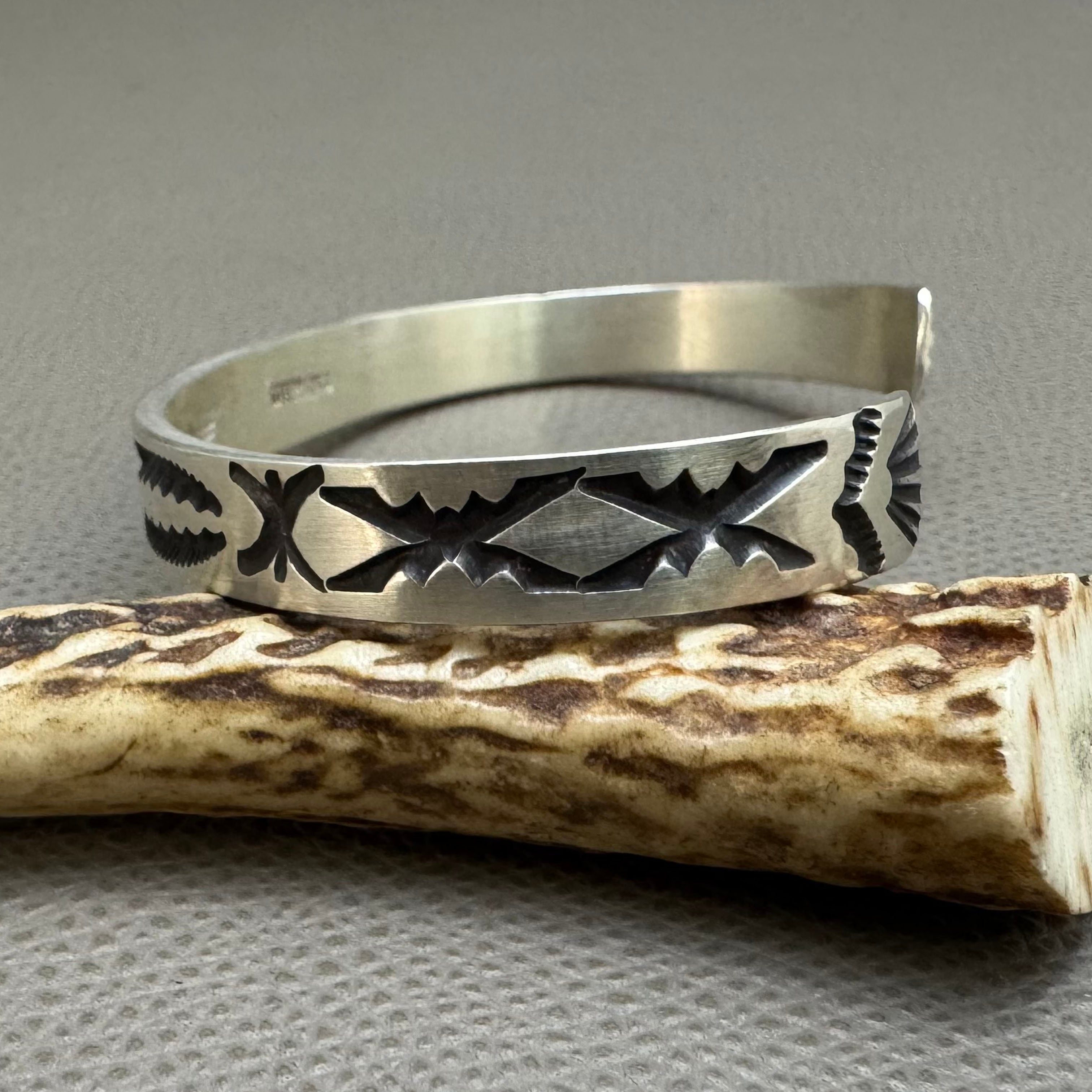 NAVAJO族 Jerrold Tahe作 スタンプワークバングル シルバー INDIAN ネイティブ ホピ ズニ ナバホ アクセ ブレス