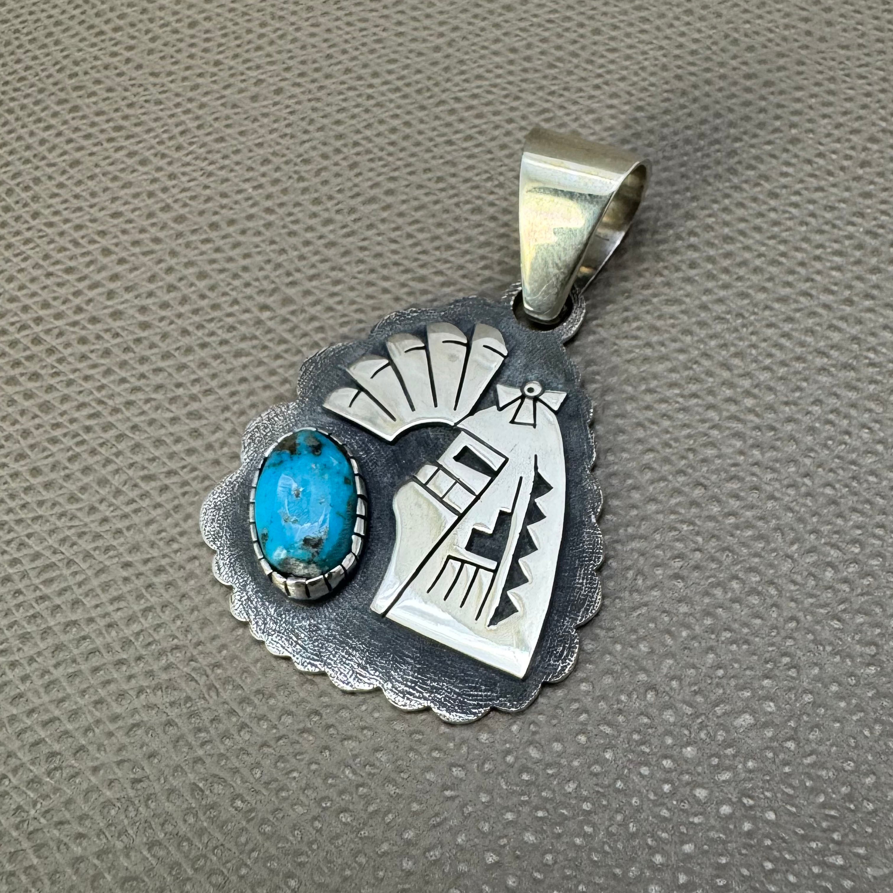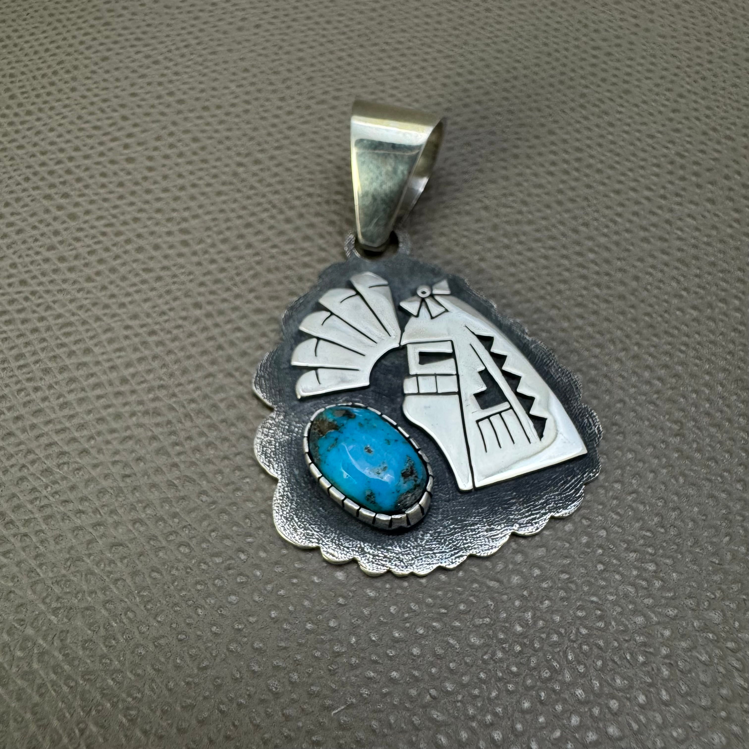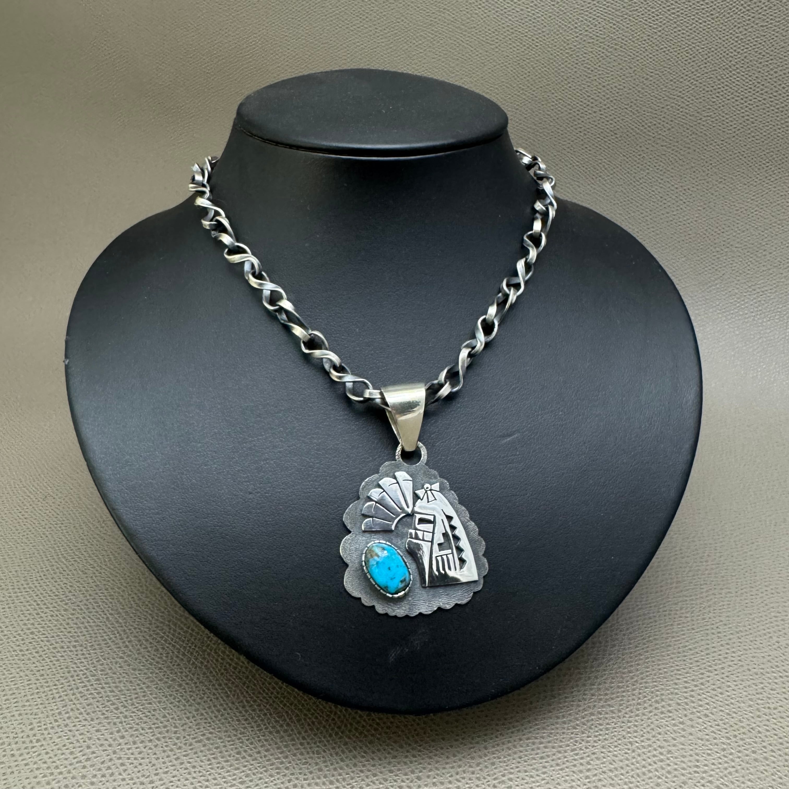 HOPI(ホピ)族 Jarrett Lorenzo Yoyokie作 ロングヘアトップ モレンチターコイズ シルバー INDIAN ネイティブ ズニ ナバホ ネックレス