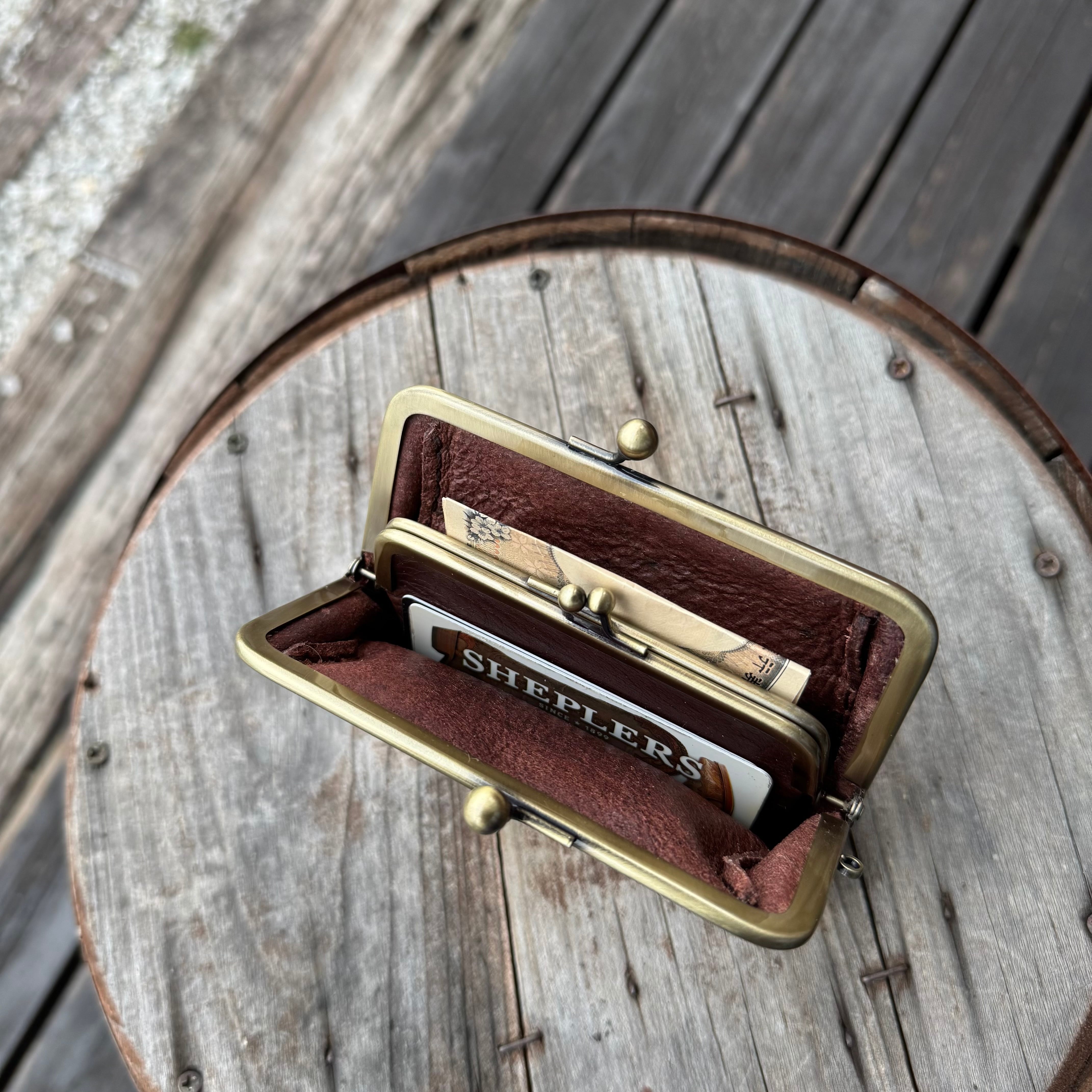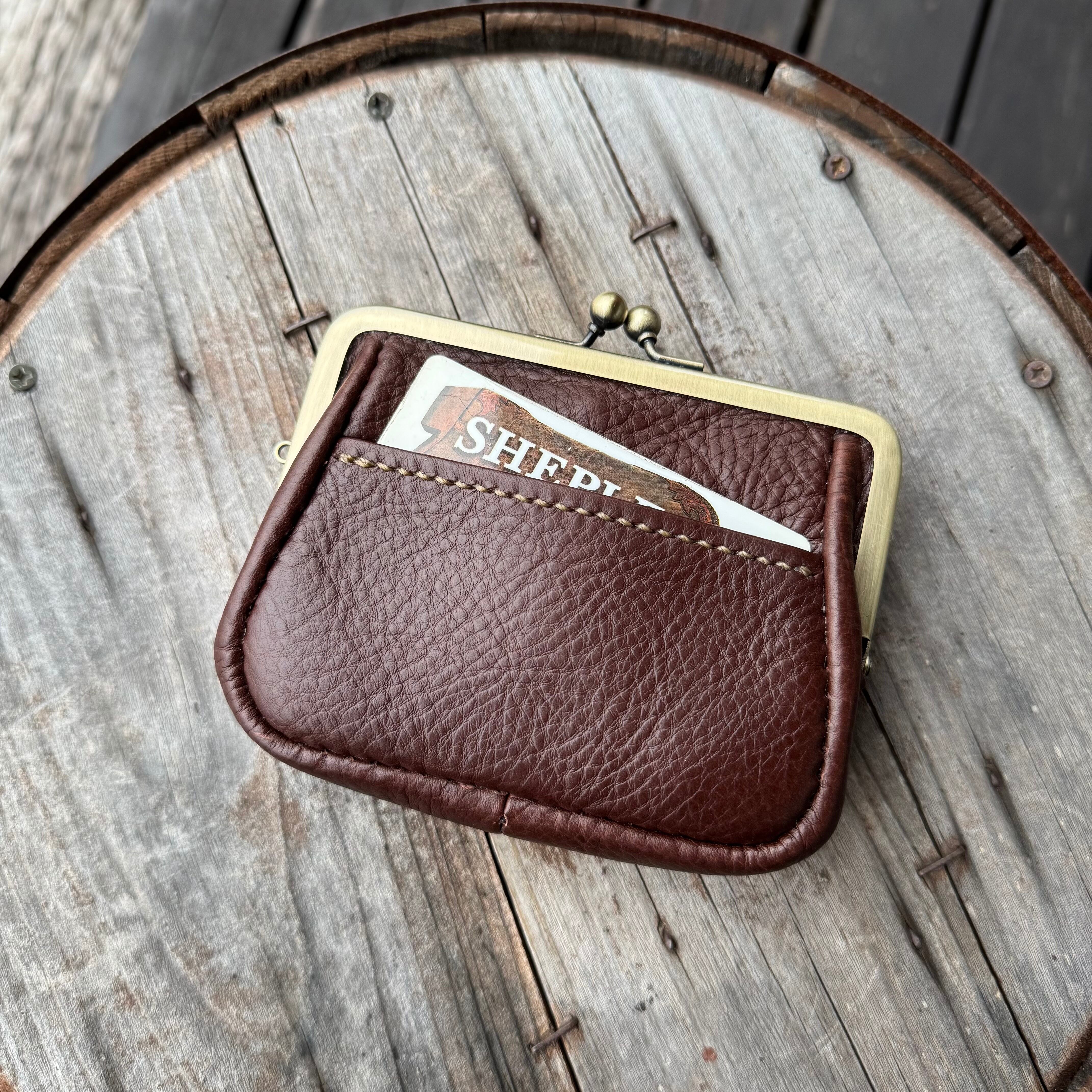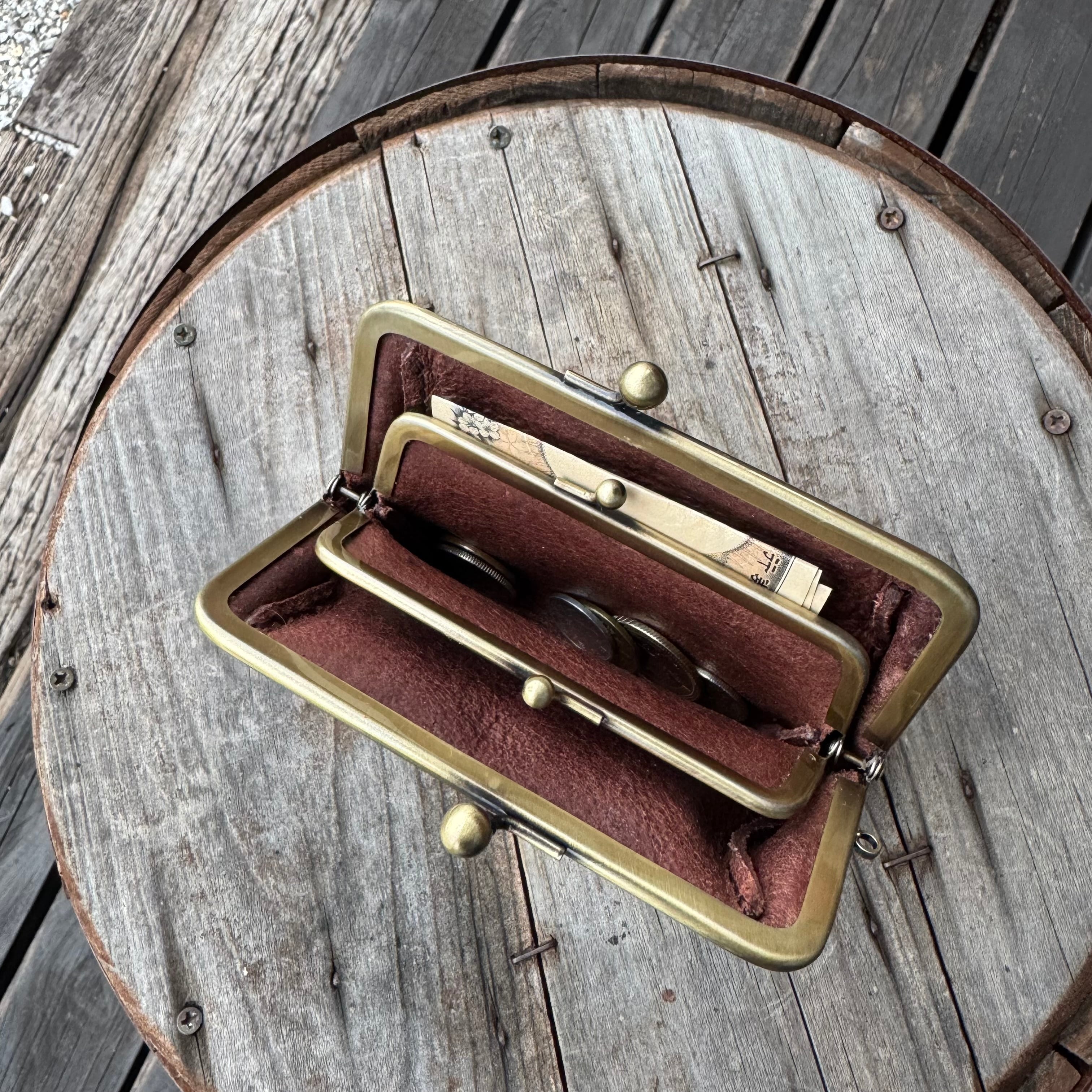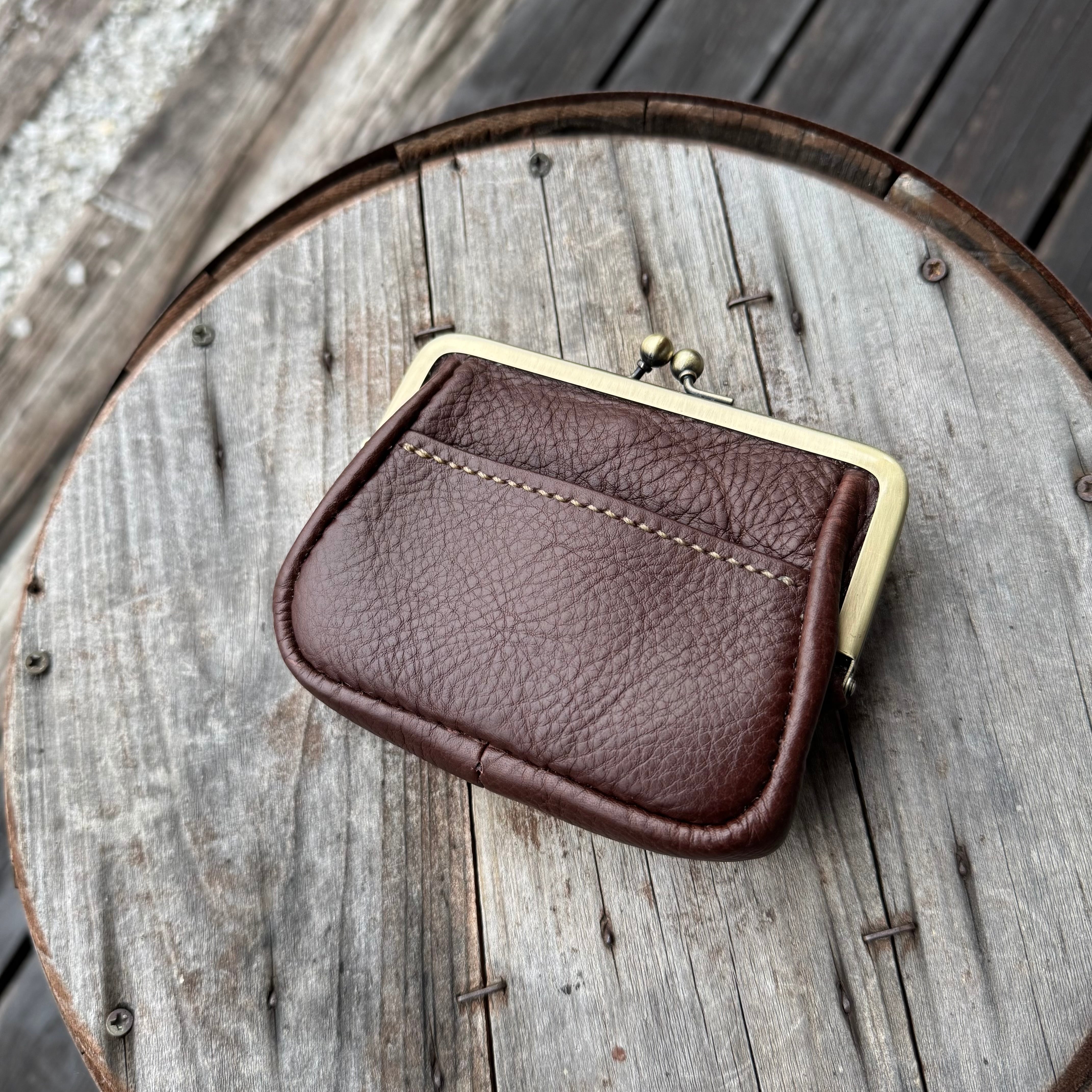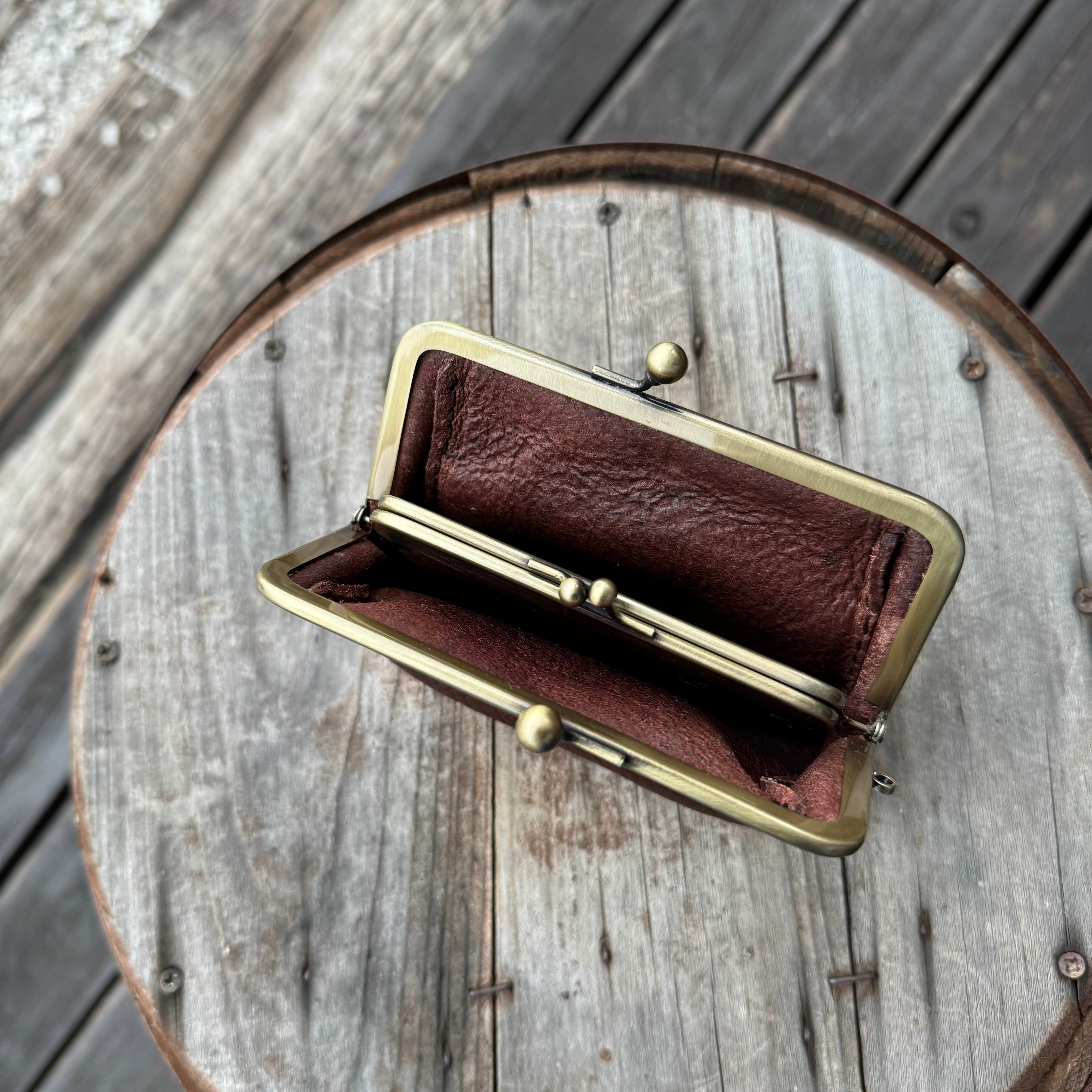 WHOLオリジナル 親子がま口ミニウォレット アリゾナレザー ハンドメイド 財布 手縫い 本革 ダークブラウン