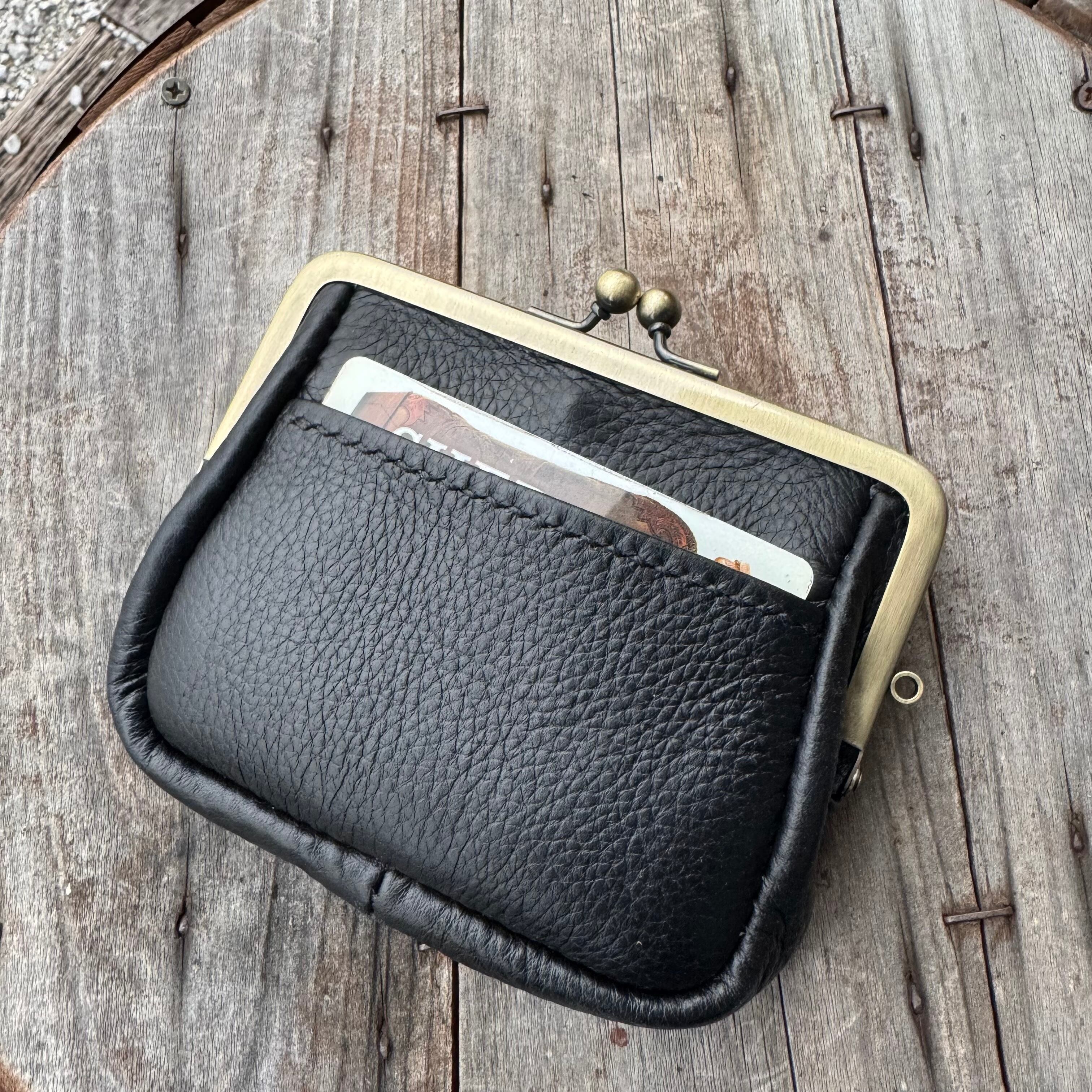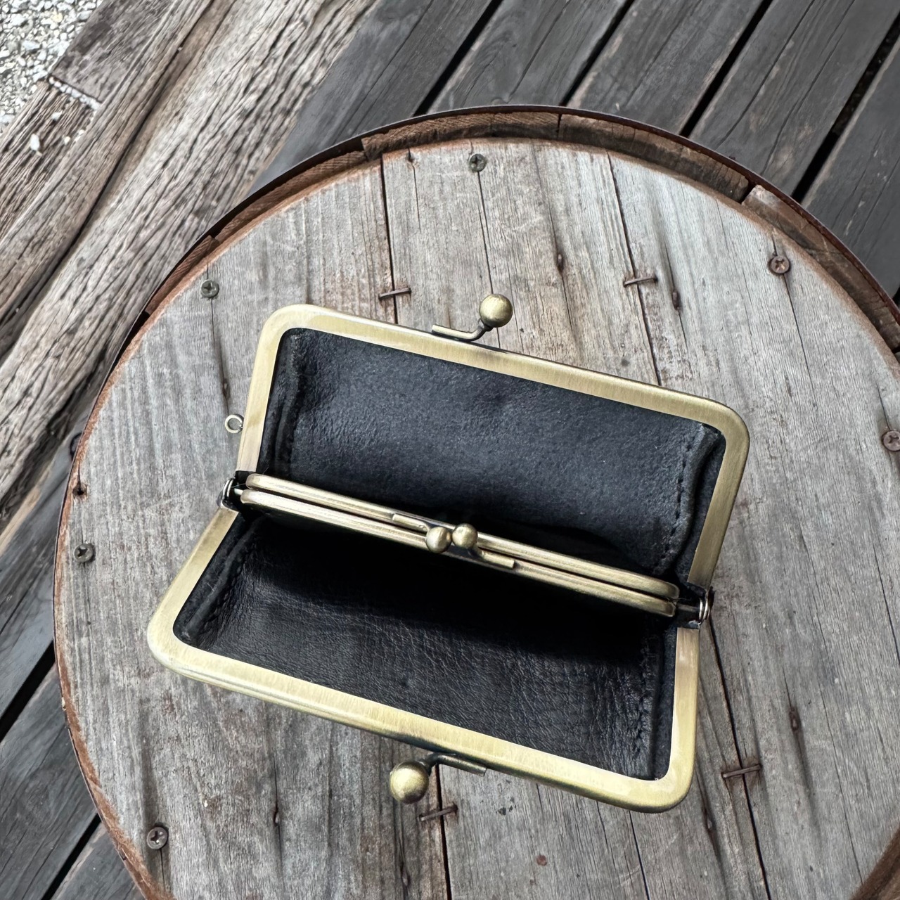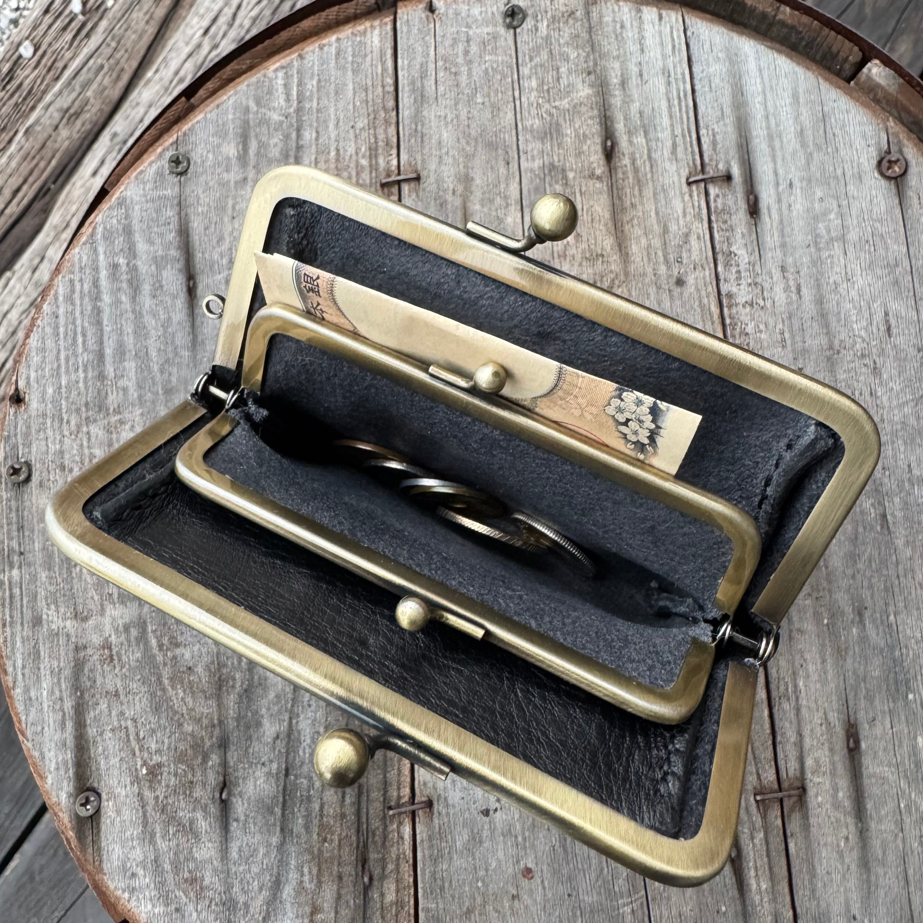 がま口を開けると真ん中にがま口のコインケースがありカードや二つ折りのお札が入る大きさです。