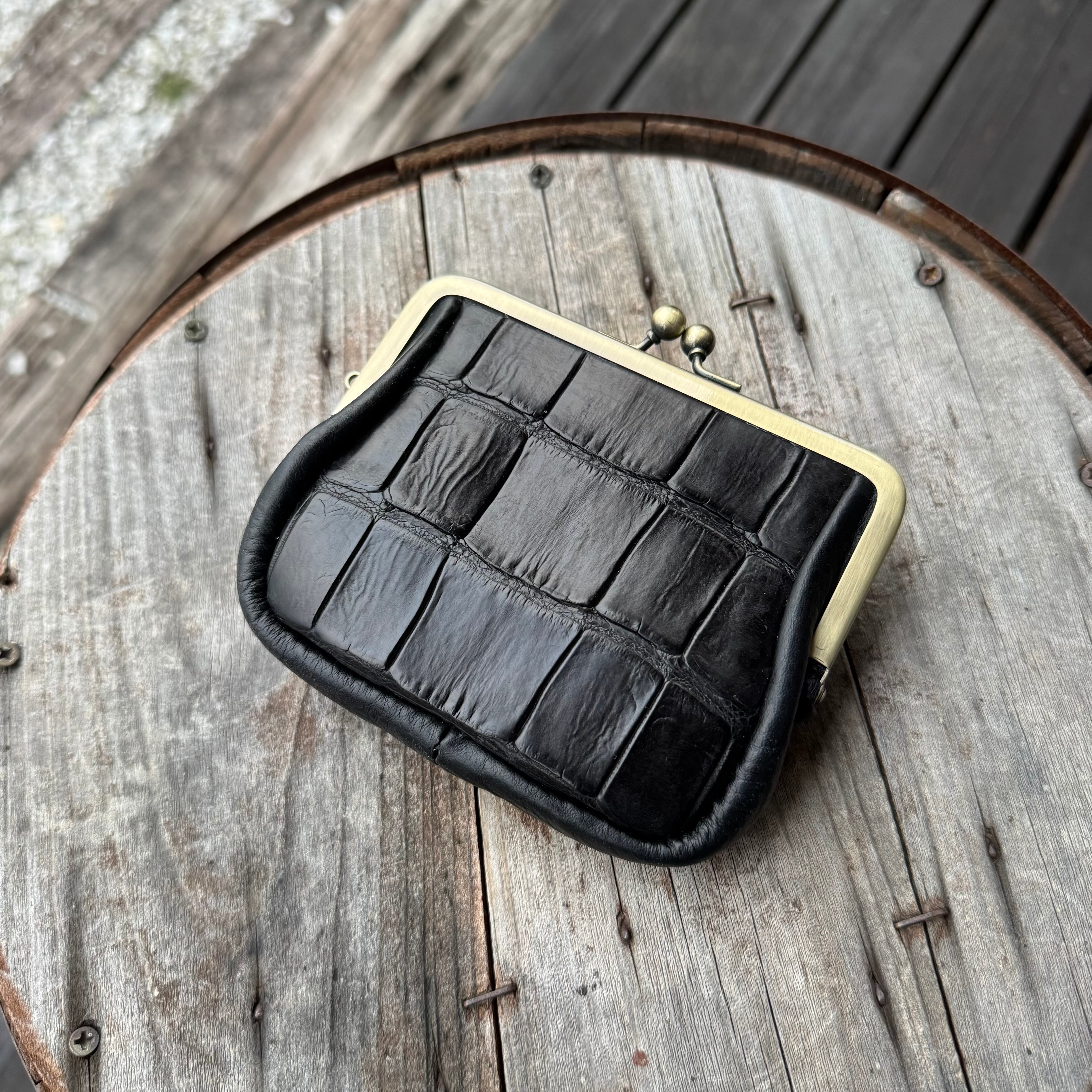 WHOLオリジナル 親子がま口ミニウォレット クロコダイル アリゾナレザー ハンドメイド 財布 手縫い 本革 ワニ