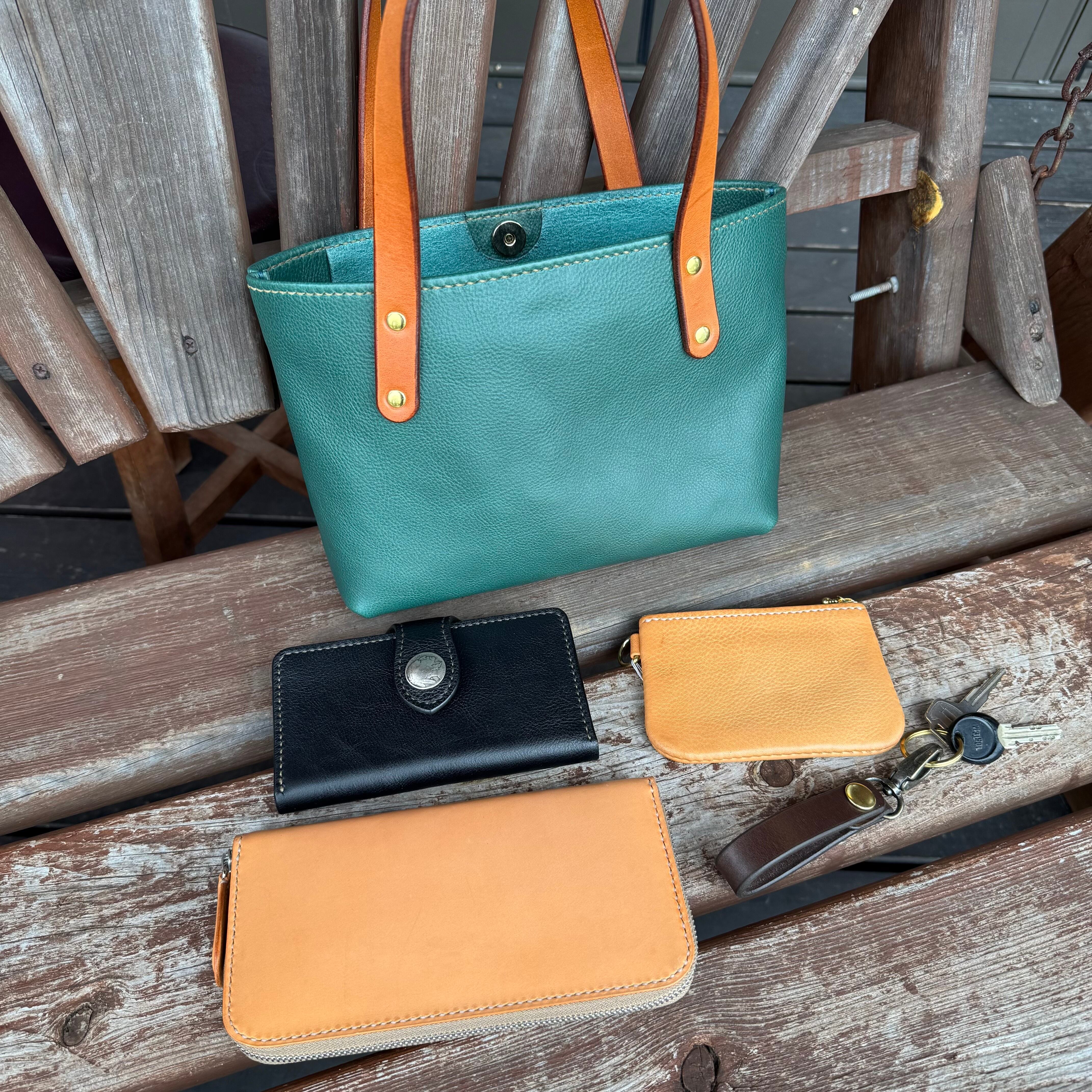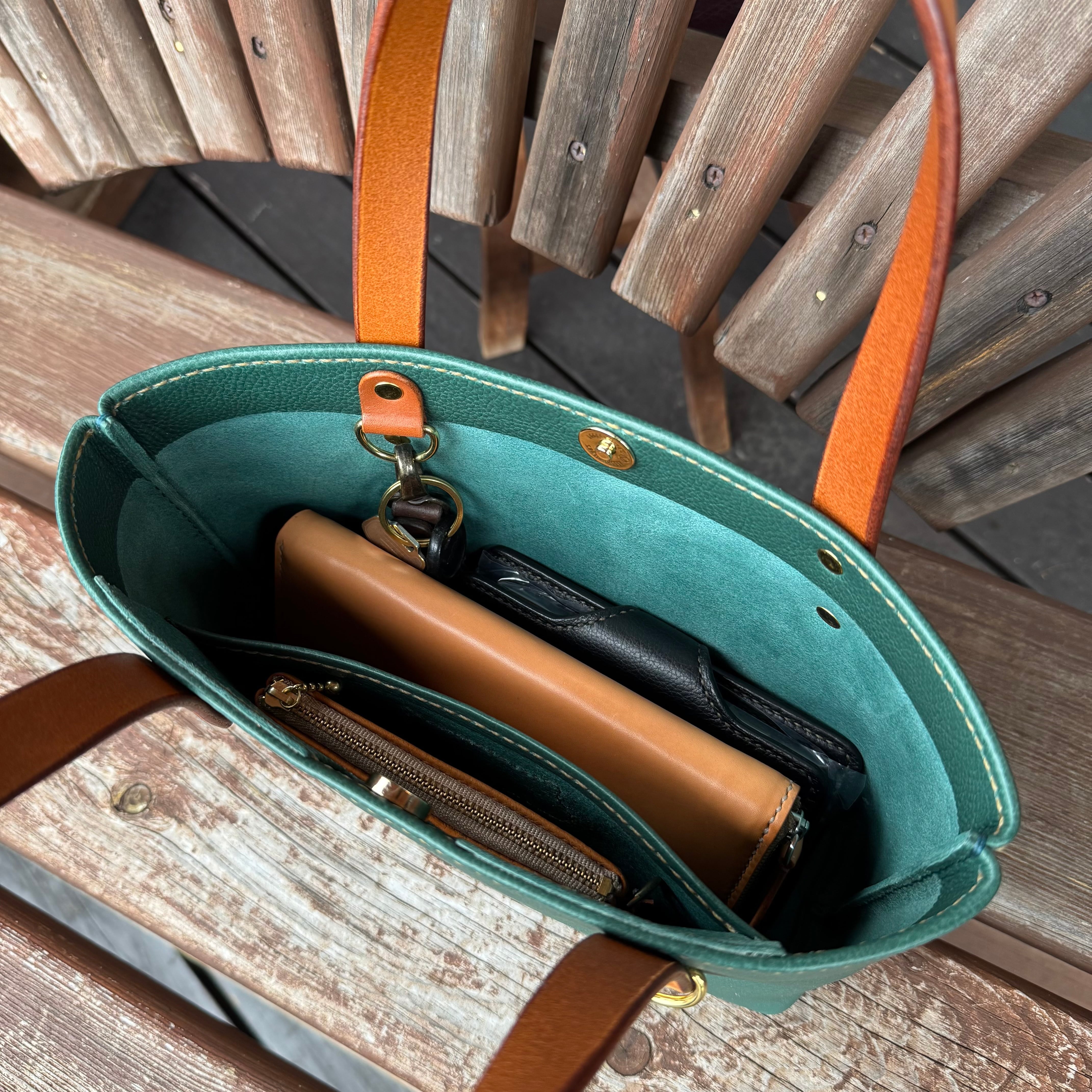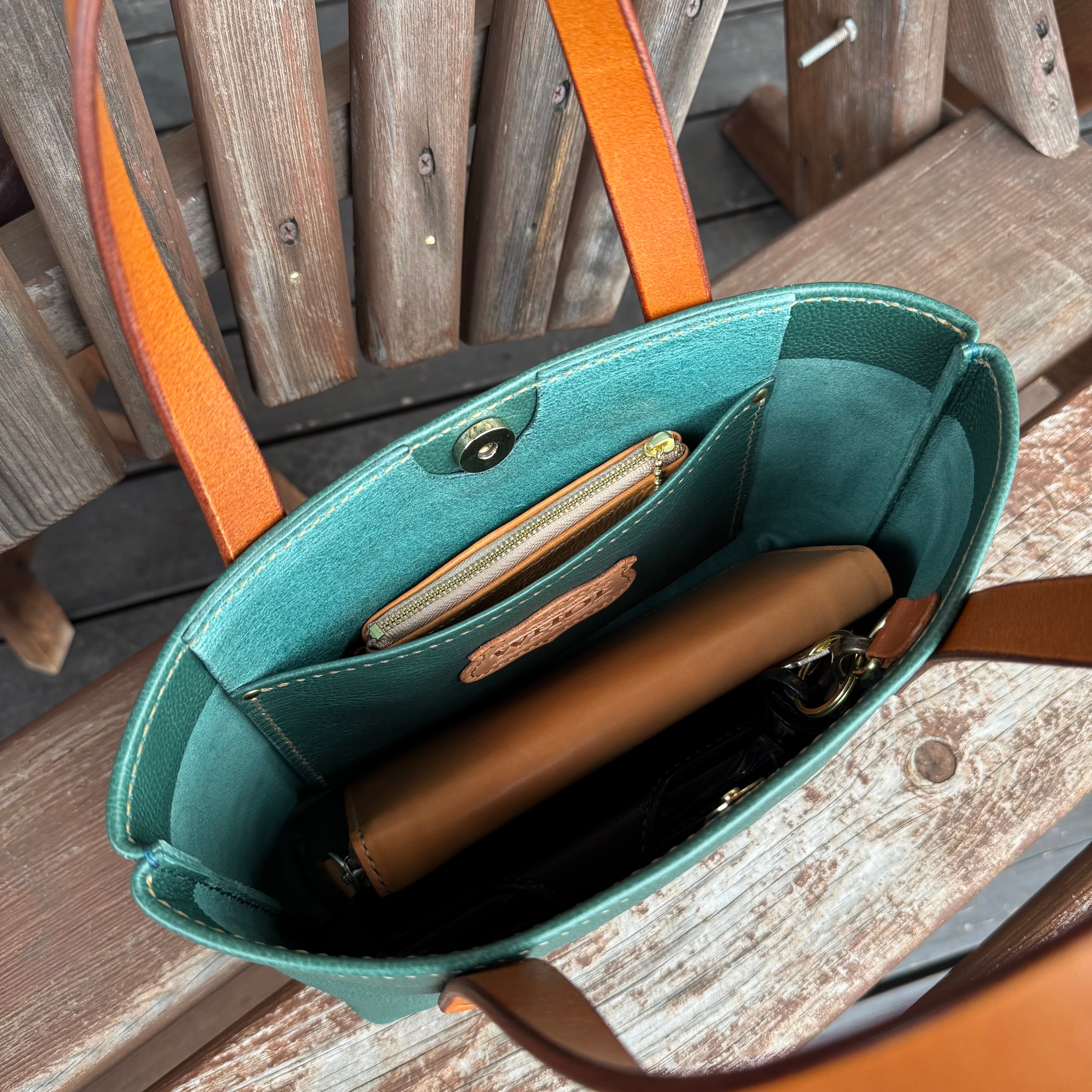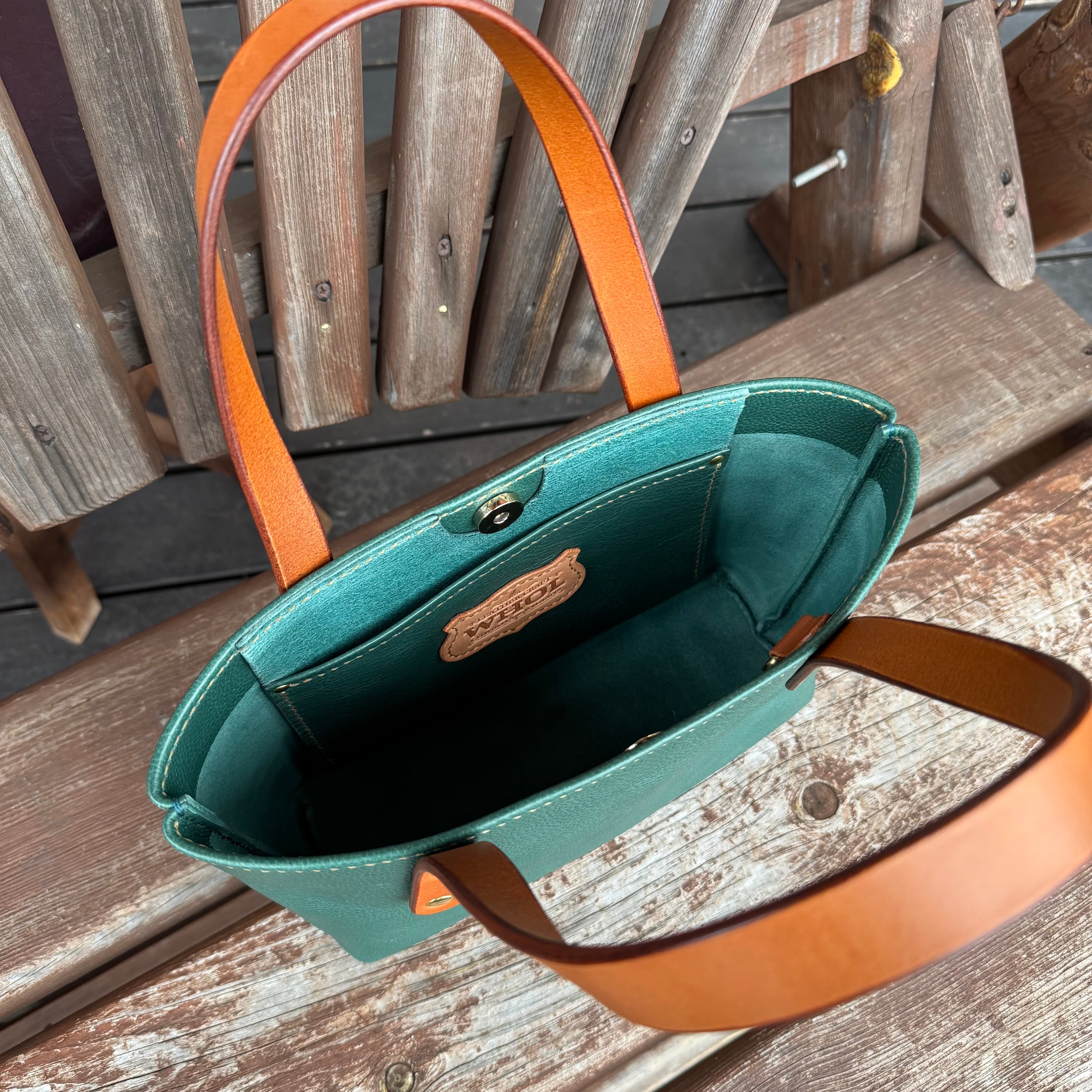 レザークラフトWHOLオリジナル アリゾナレザートートバッグS ハンドメイド 手縫い カバン 本革 牛革 グリーン ブラウン
