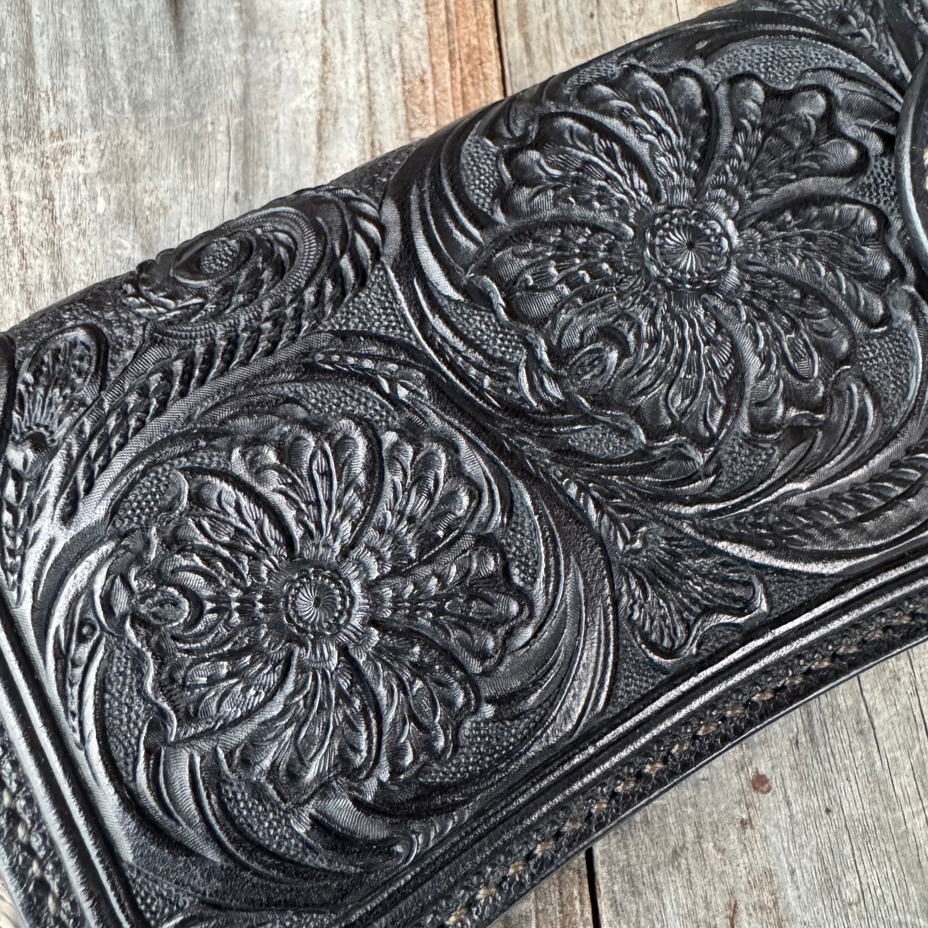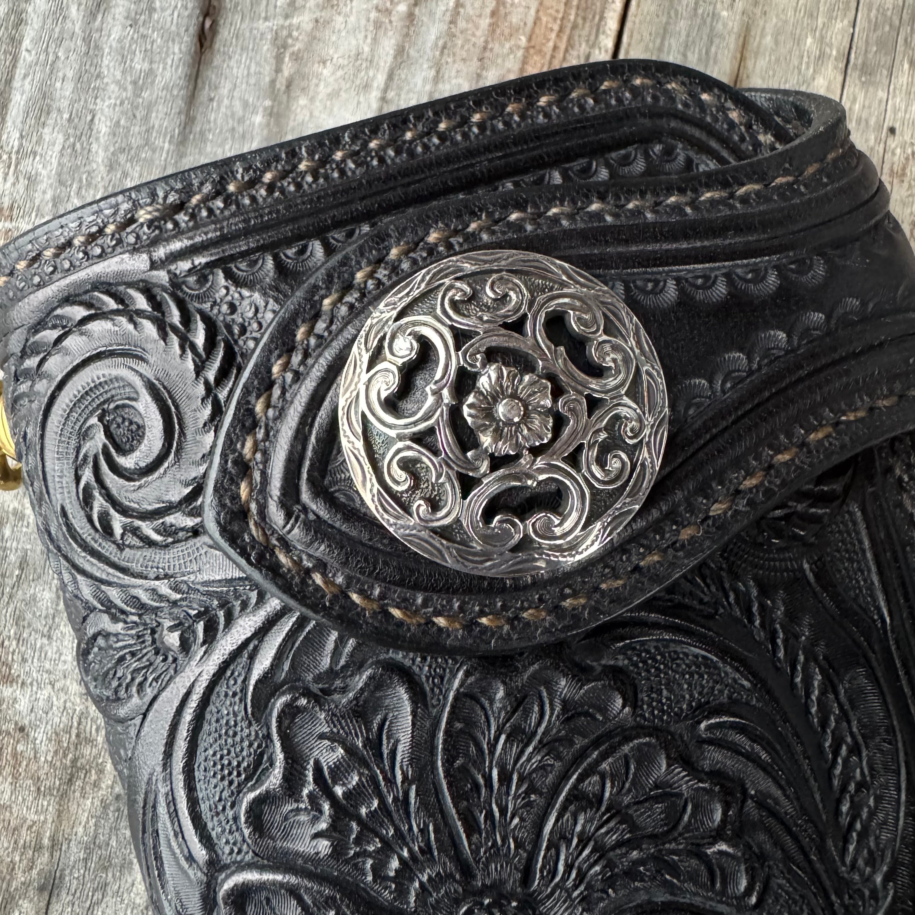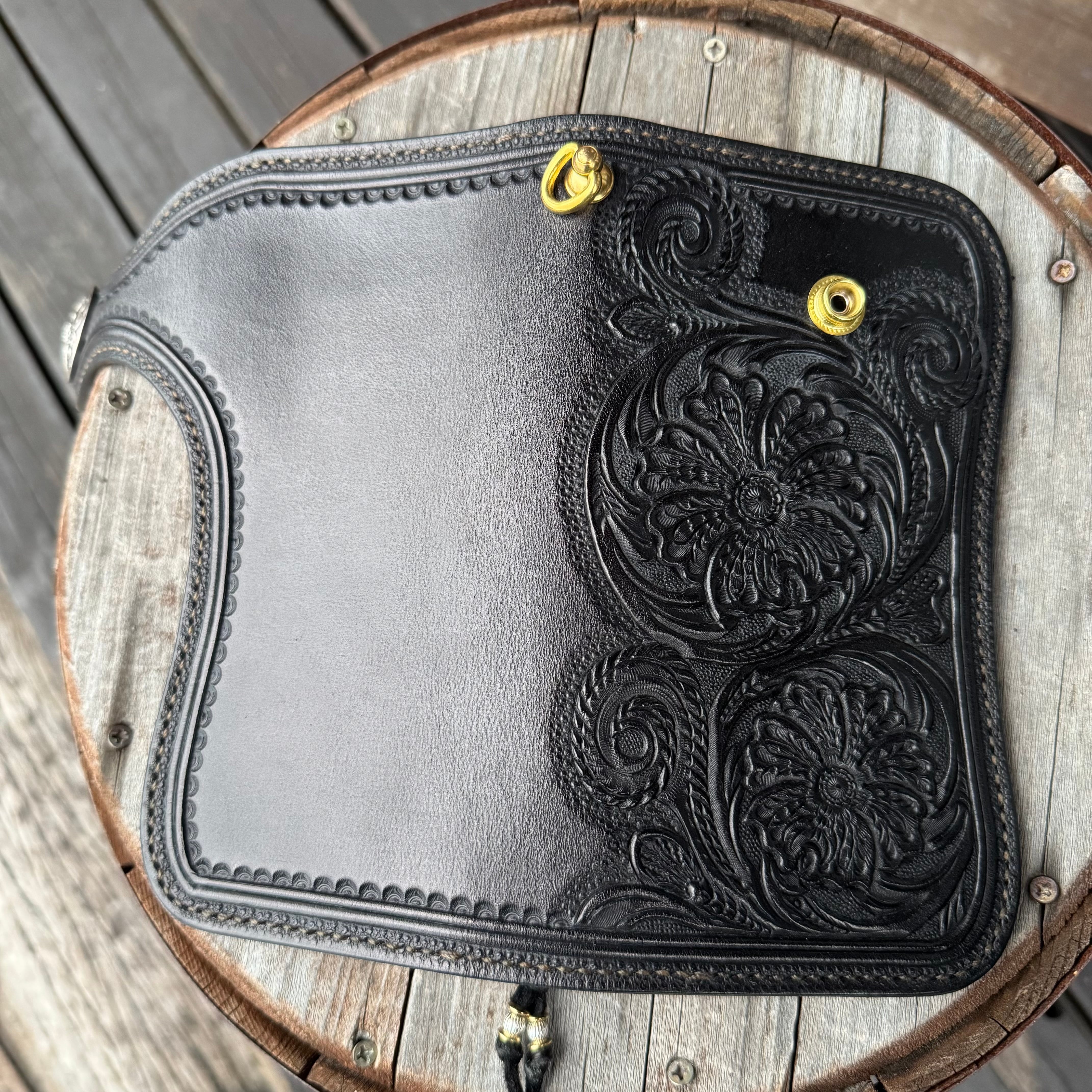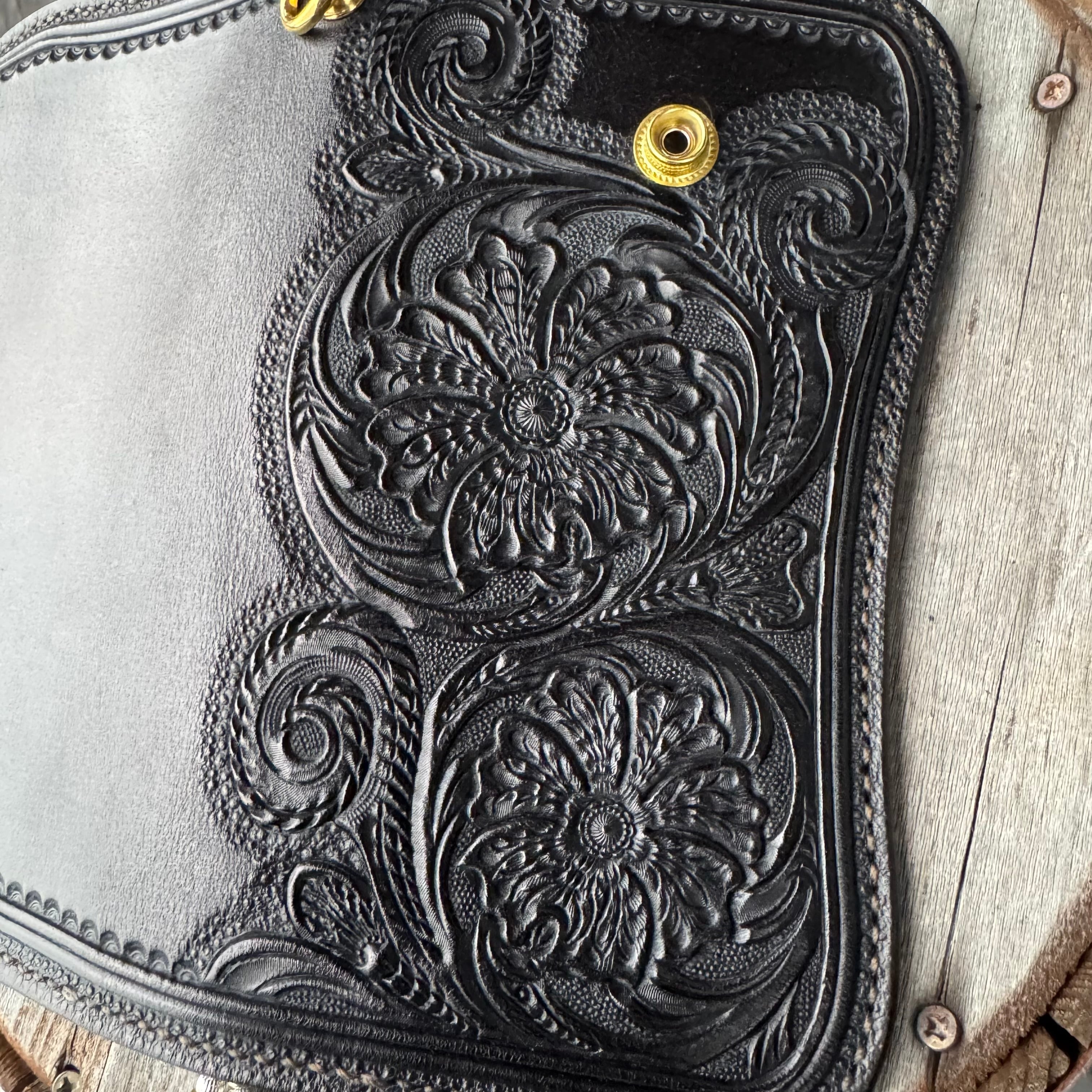 レザークラフトWHOLオリジナルライダースウォレット(財布)シェリダンスタイル カービング。