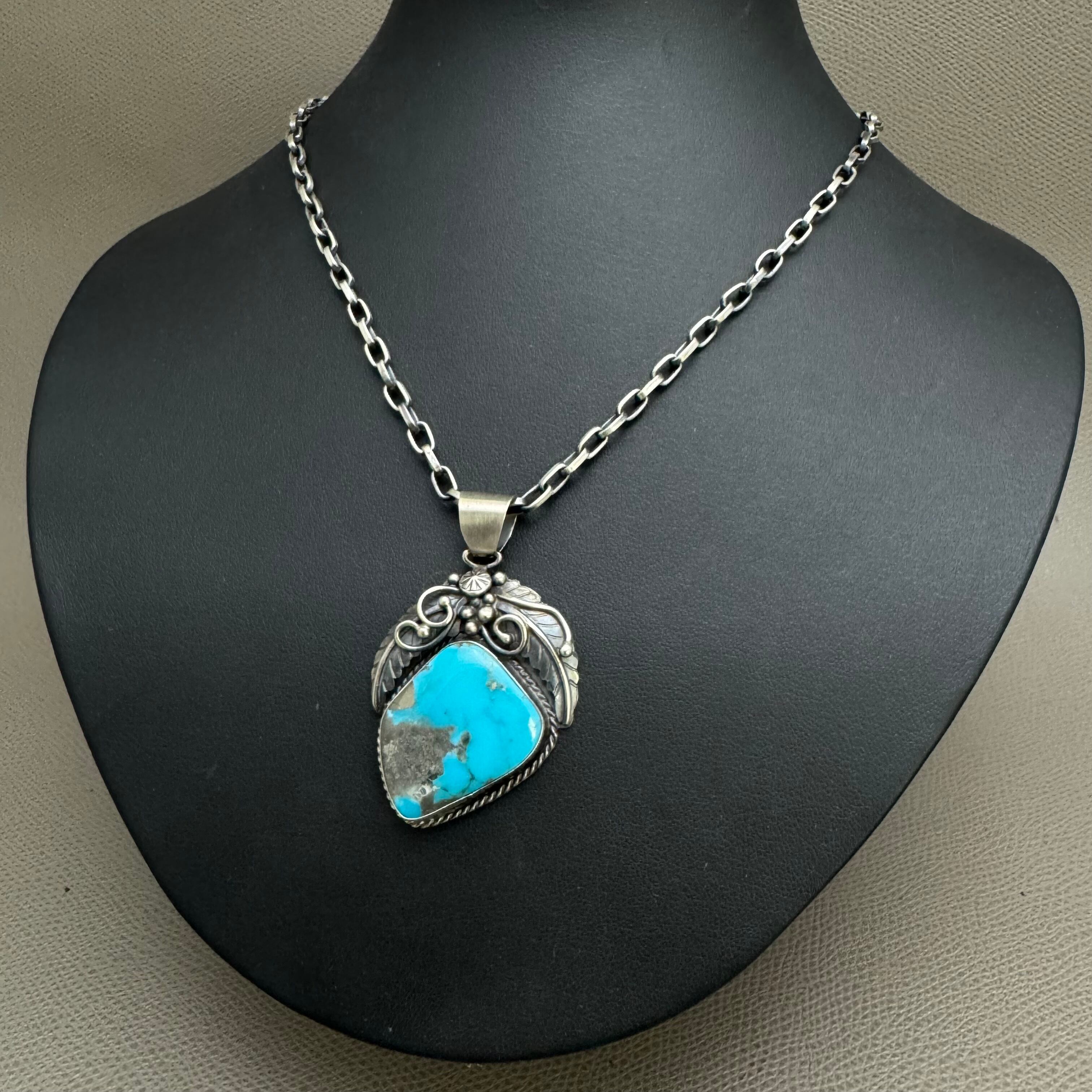 NAVAJO(ナバホ)族 Freddie Maloney作 キングマンターコイズトップ シルバー INDIAN ネイティブ ズニ ホピ アクセ ネックレス