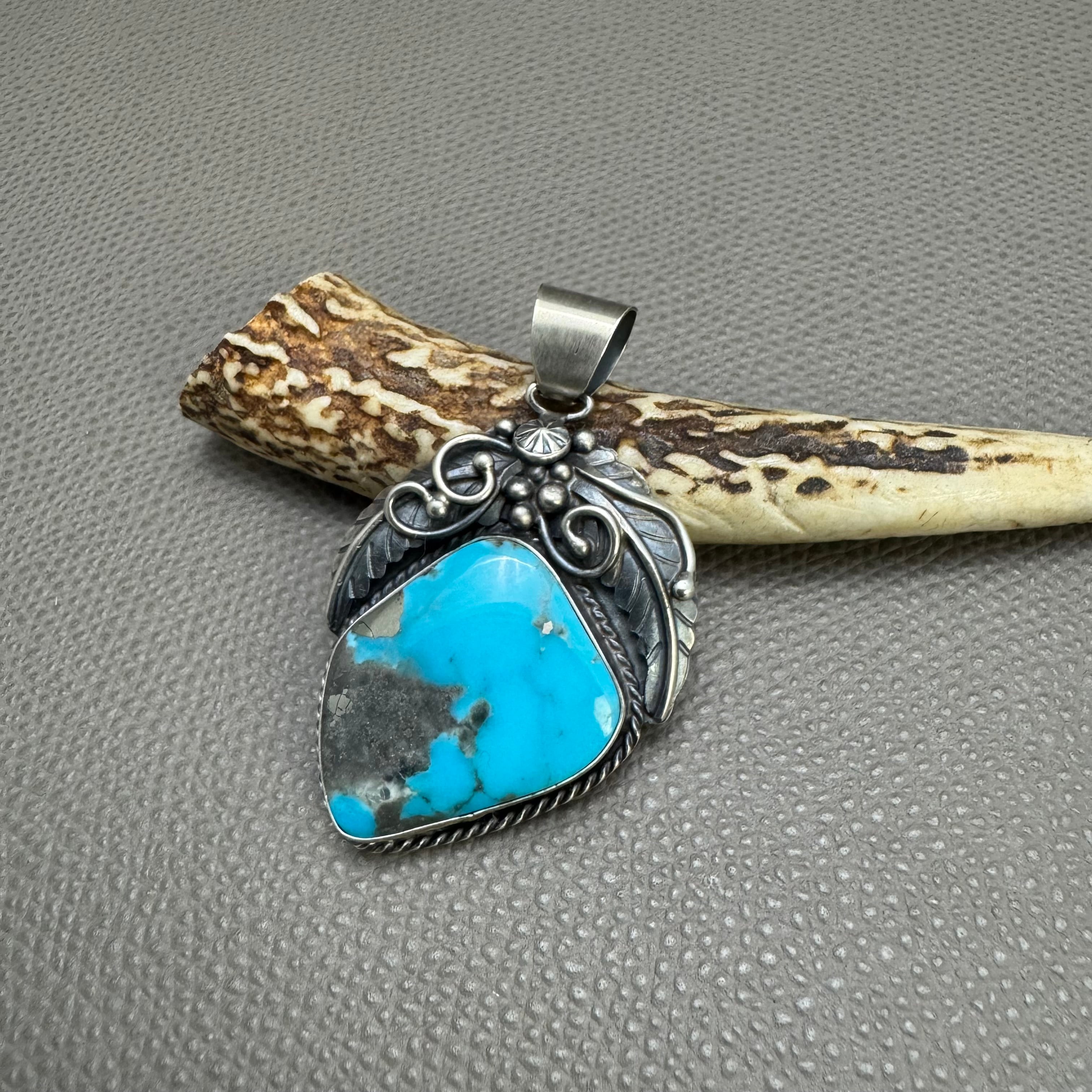非常にきれいなターコイズがセットされており、存在感抜群のトップです。