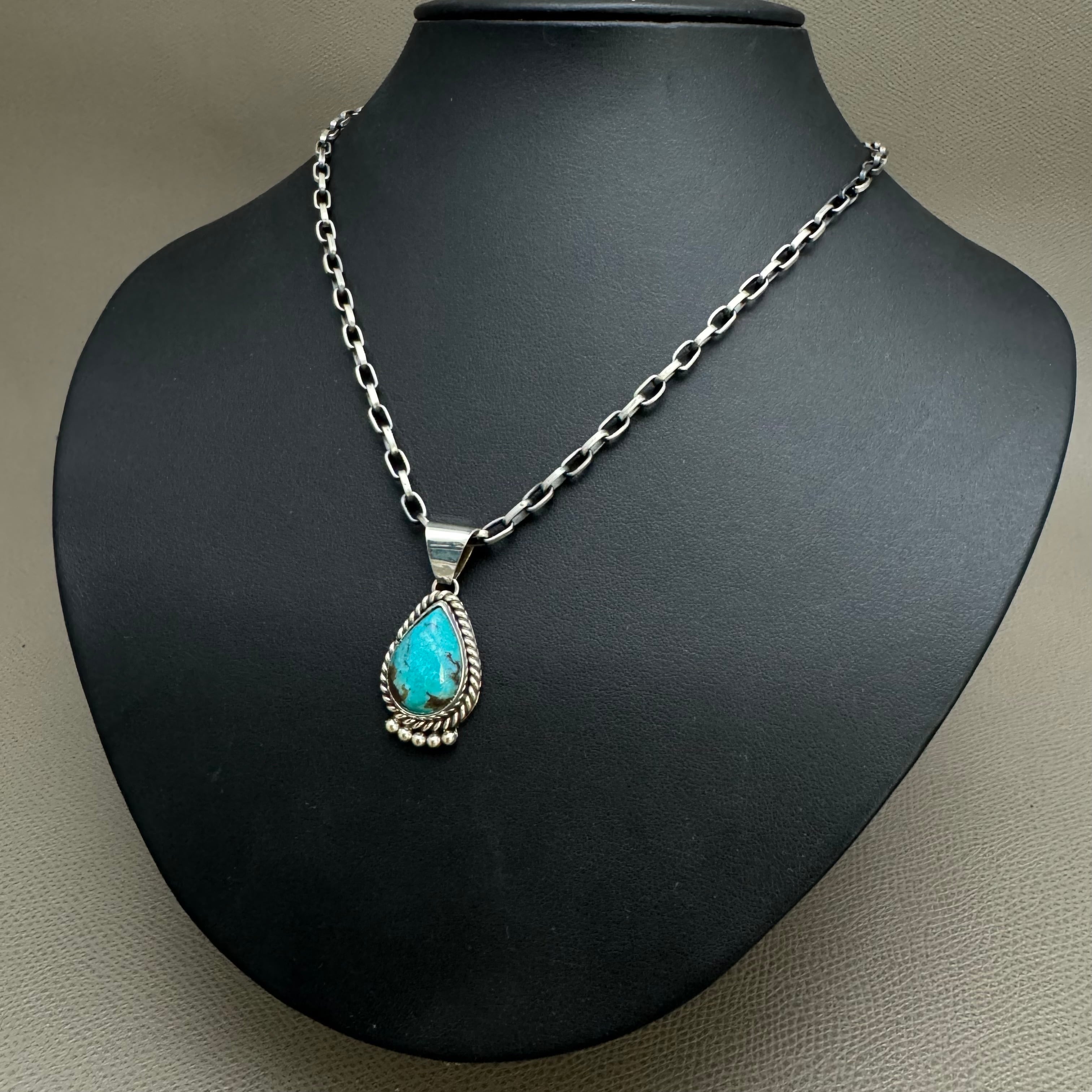 NAVAJO(ナバホ)族 Benjamin Martinez作 キングマンターコイズトップ シルバー INDIAN ネイティブ ズニ ホピ アクセ ネックレス