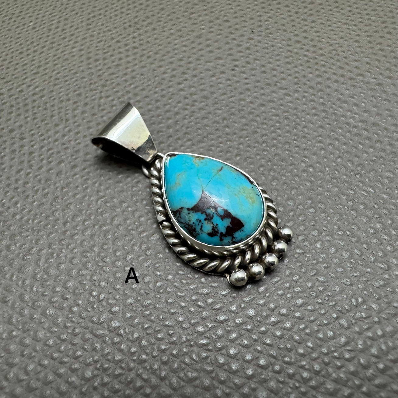 しずく型の非常にきれいなキングマンターコイズがセットされています。