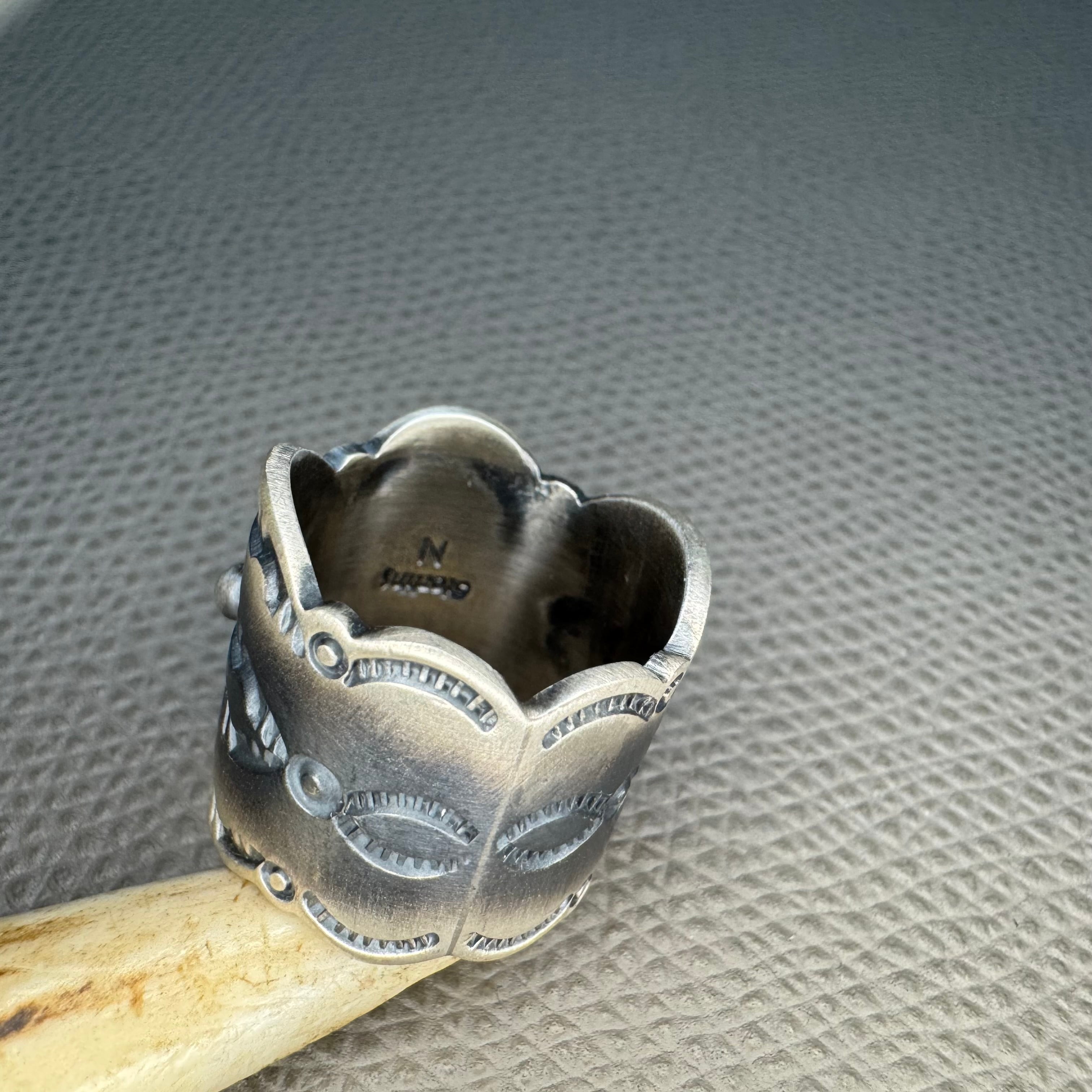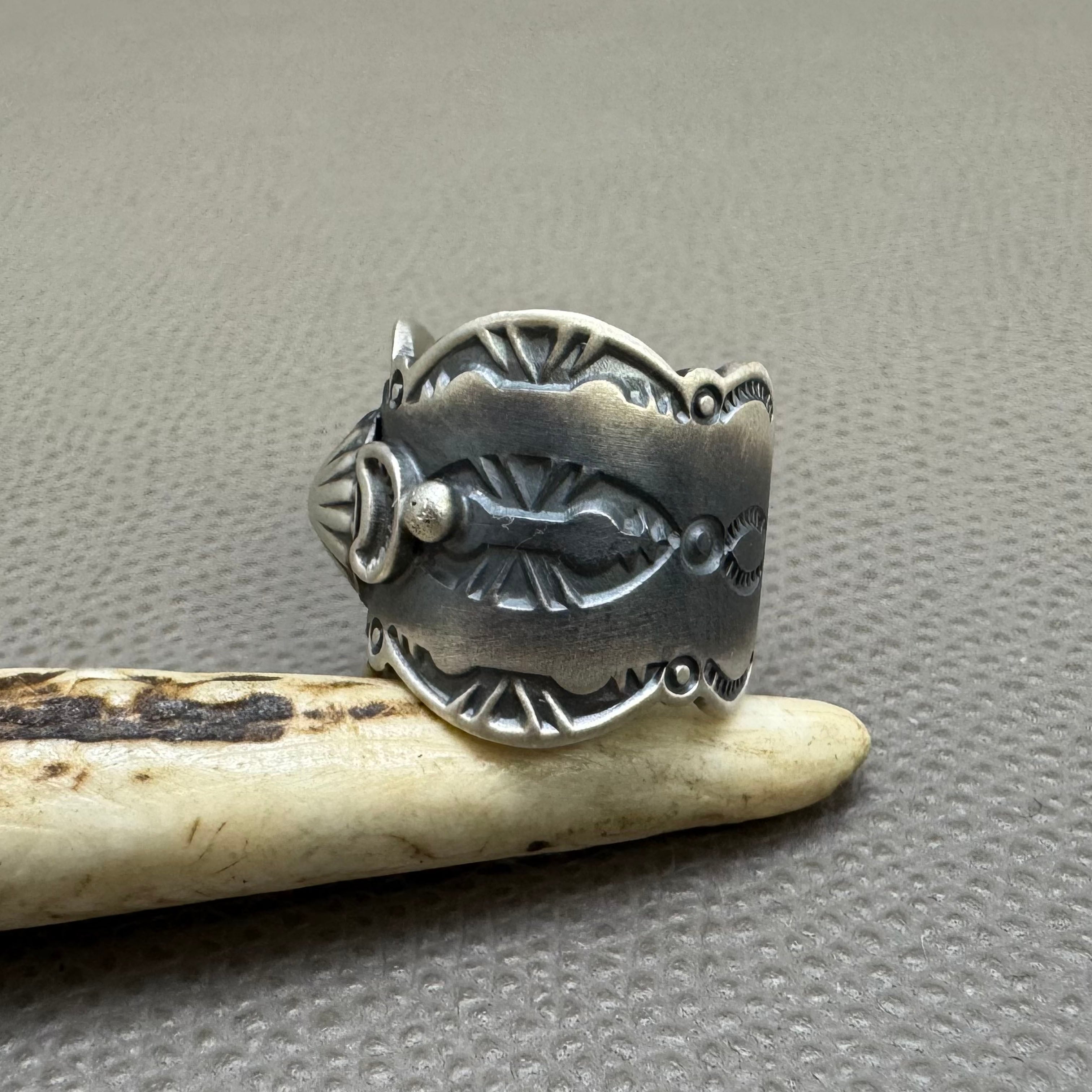 NAVAJO(ナバホ)族 Gene Natan作 スタンプワーク&アポロコンチョリング 11号 シルバー INDIAN ネイティブ ズニ ホピ アクセ 指輪