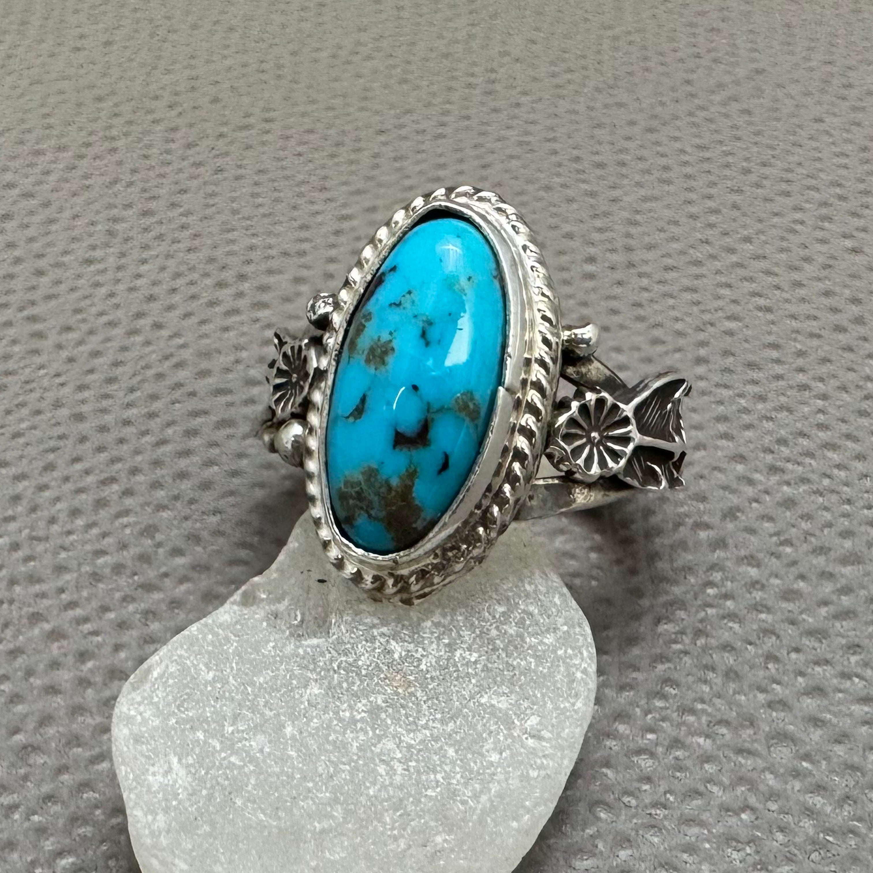 ナバホ族の人気アーティストAnnette Chiquitoのキングマンターコイズリングです。