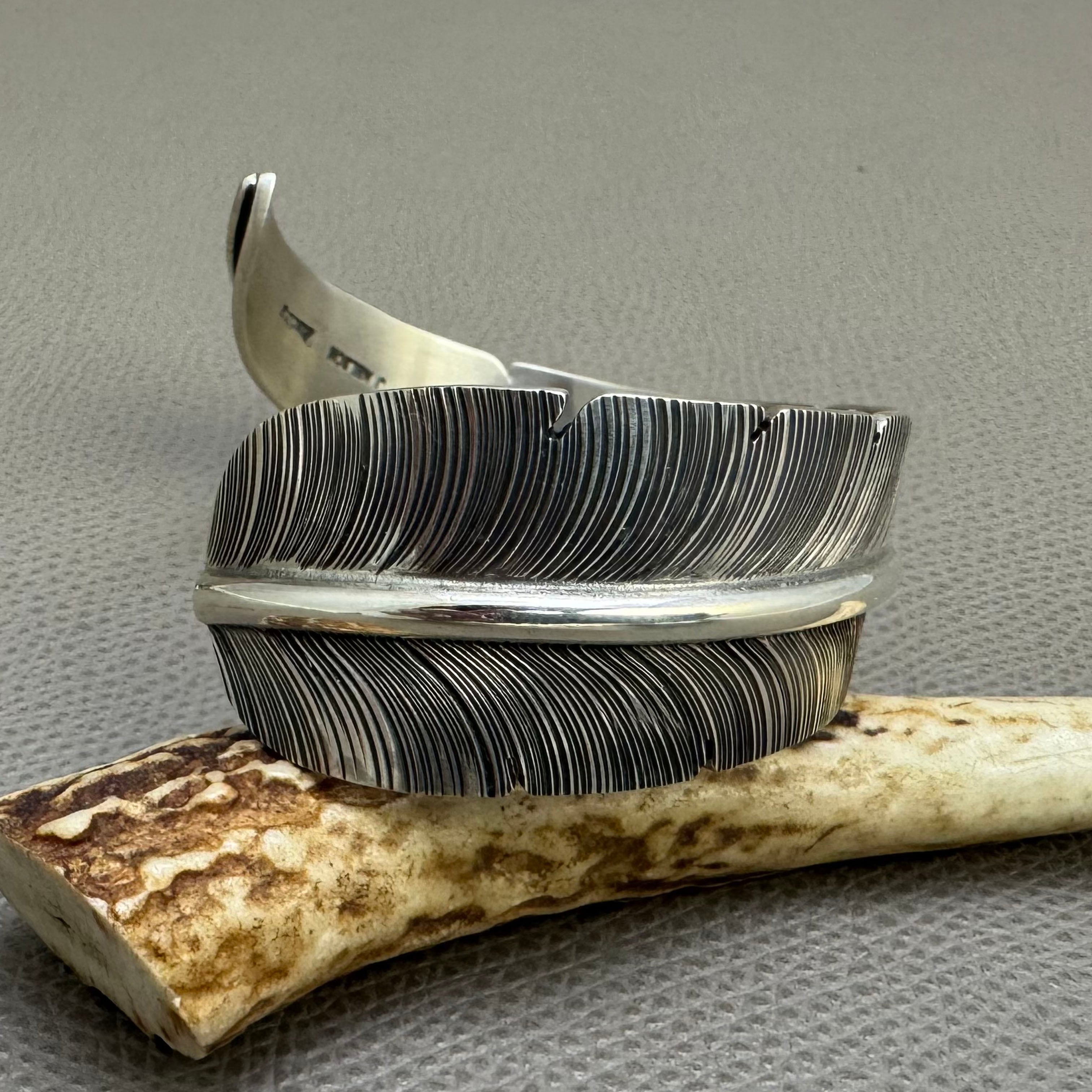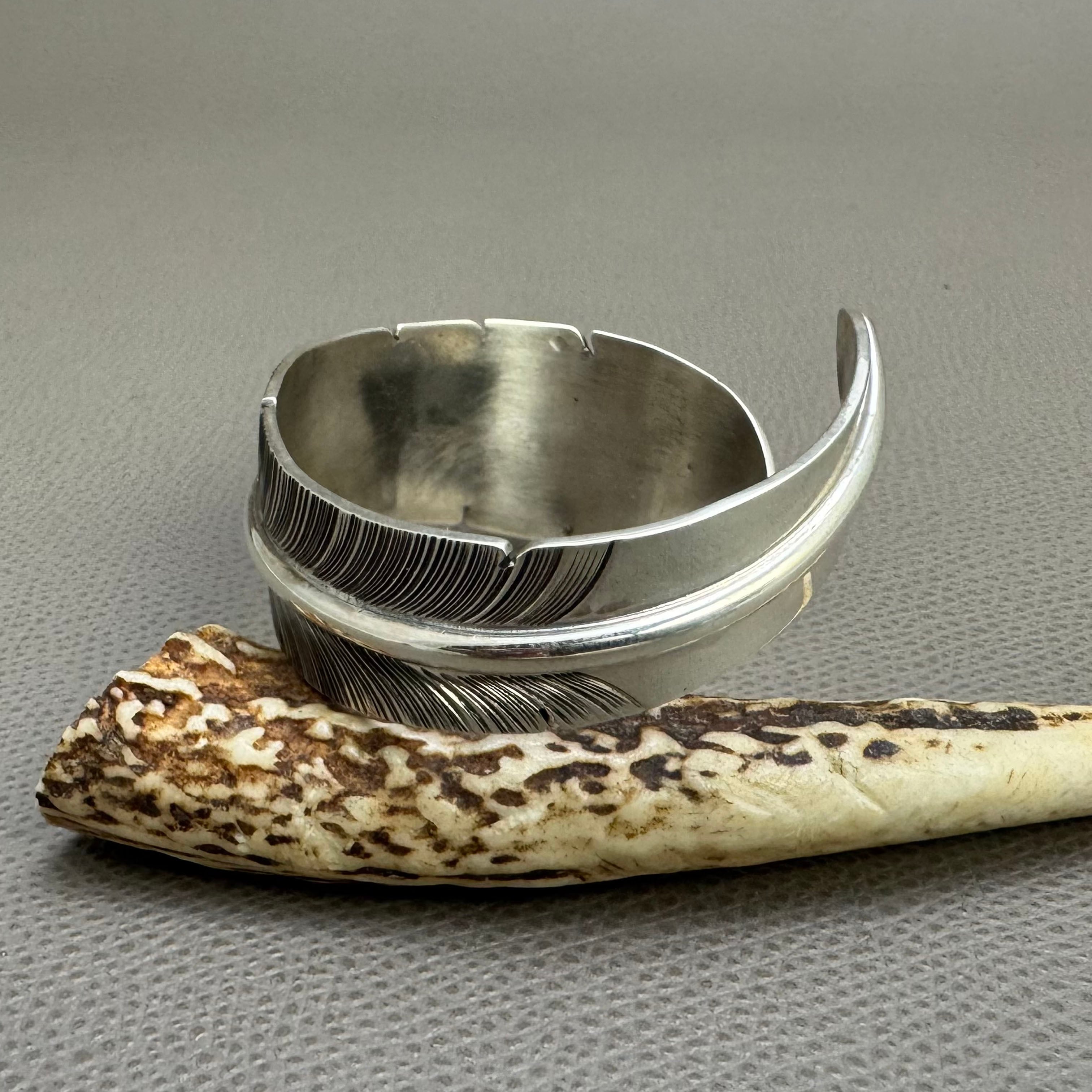 NAVAJO(ナバホ)族 John Nelson作 フェザーバングル シルバー INDIAN ネイティブ ズニ ホピ アクセ ブレス 羽根