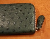 レザークラフトWHOL社オリジナルのラウンドファスナーオーストリッチウォレット。
