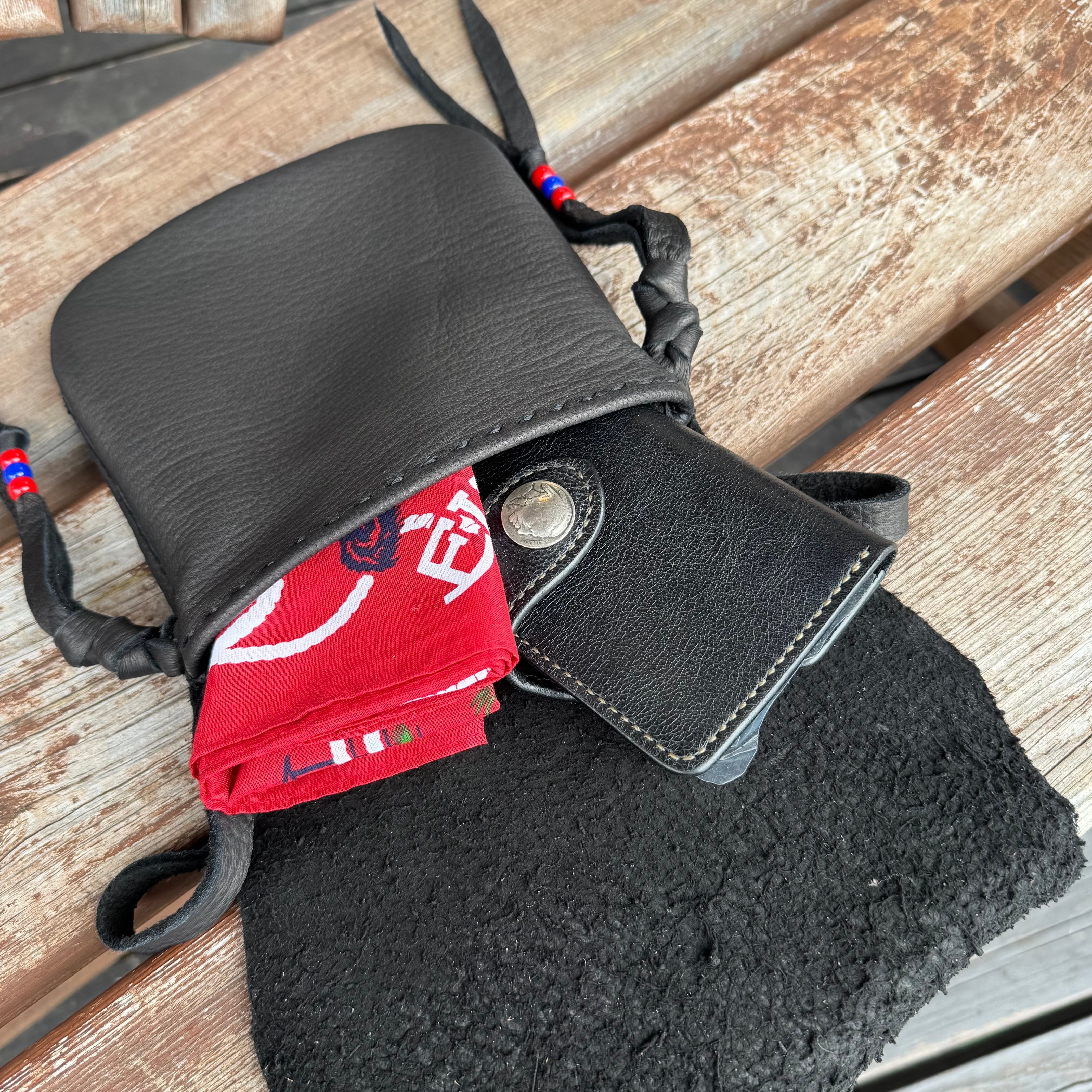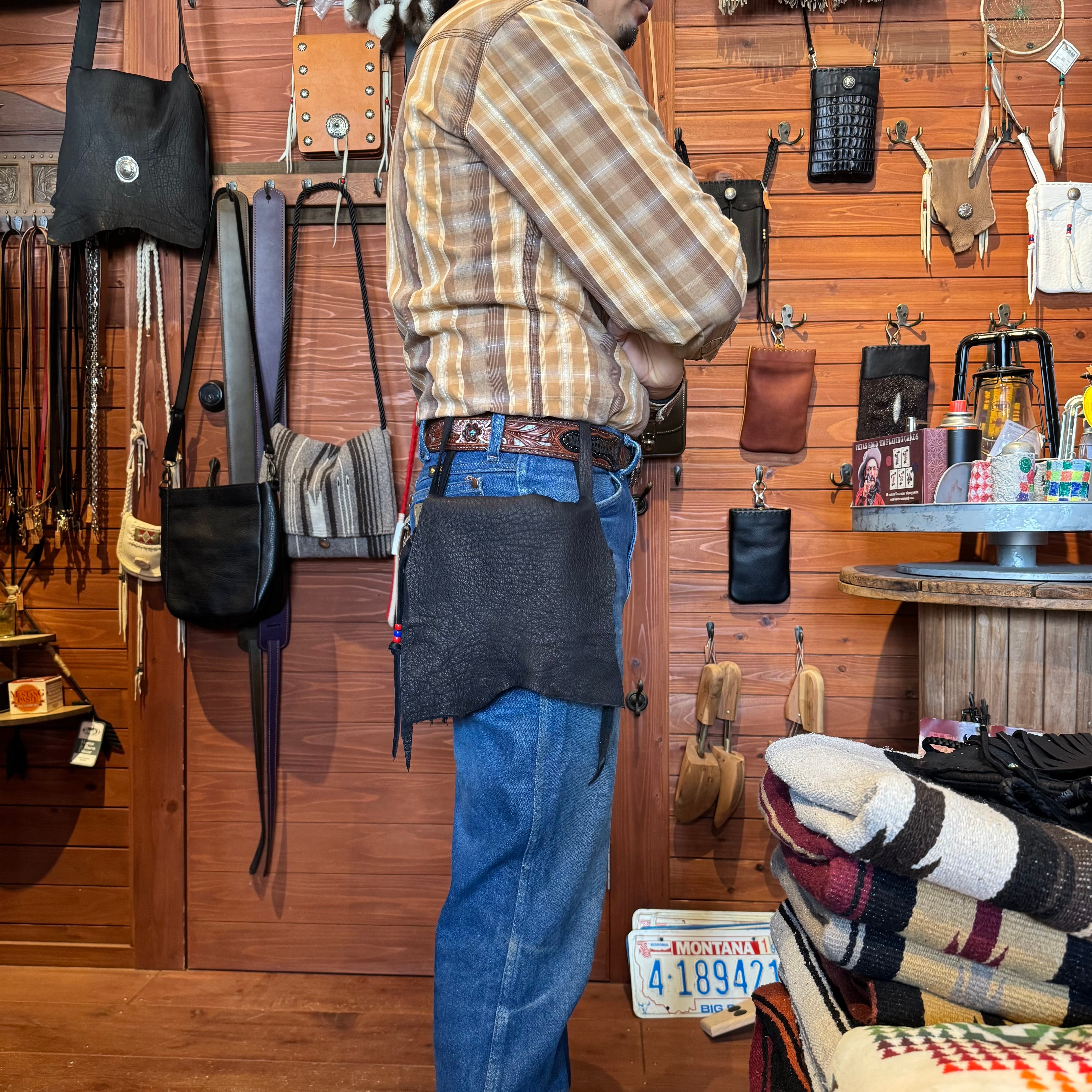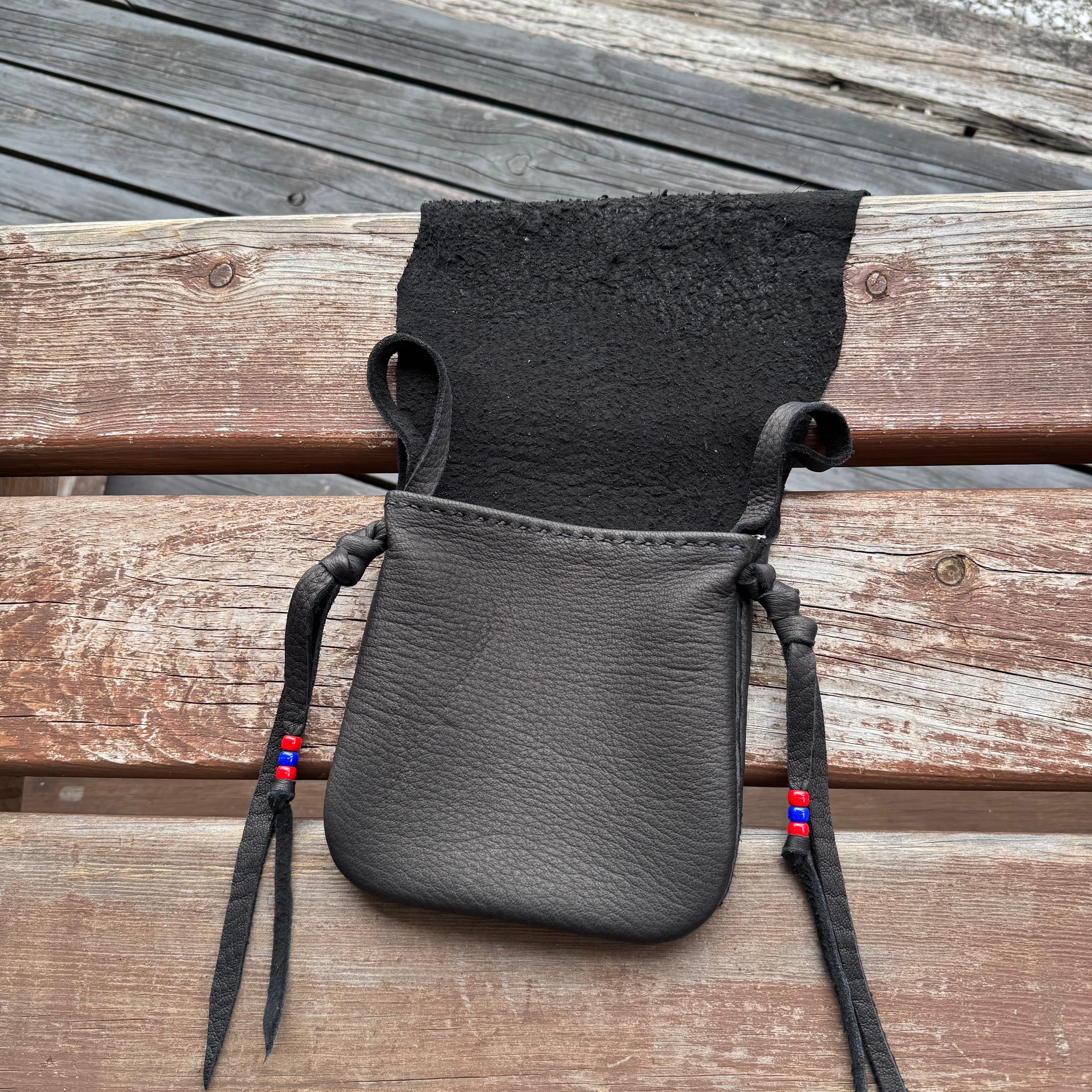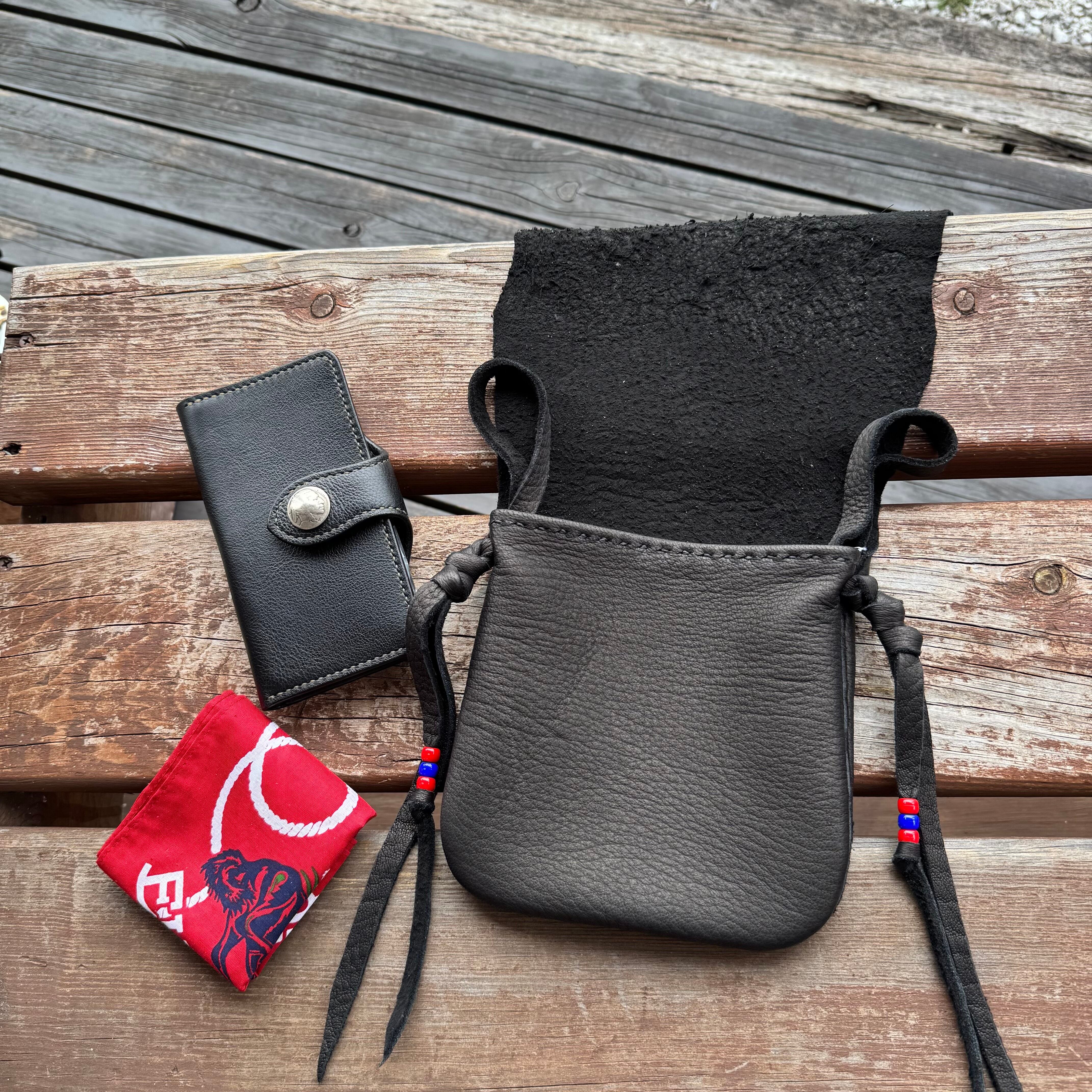 WHOLオリジナル メディスンバッグ エルクスキン バイカー ライダー INDIAN ネイティブ カバン スマホポーチ 鹿革 本革 ブラック