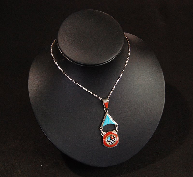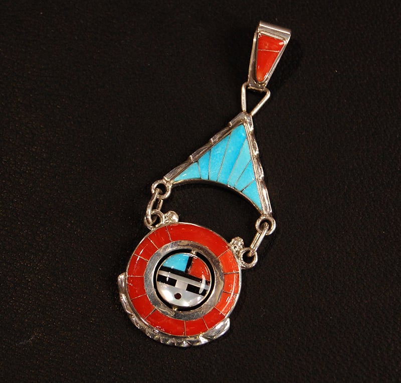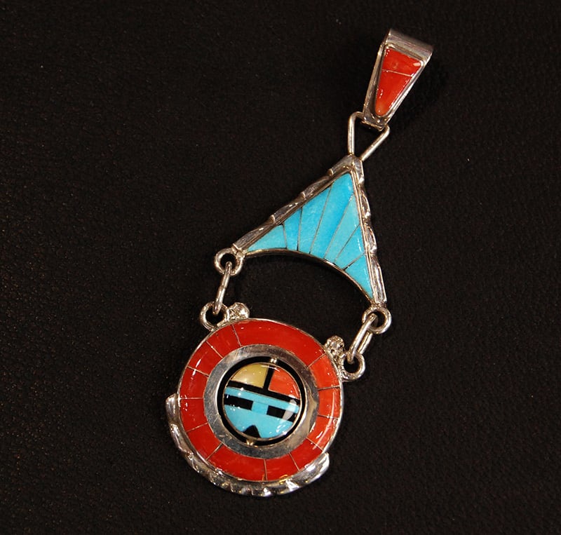 何と言ってもズニ族らしい丁寧で美しいインレイワークの真ん中に、クルクル回る可愛らしいサンフェイスがとても印象的です。
