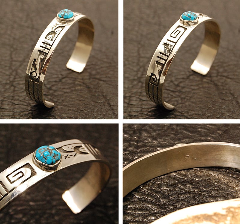 HOPI族 Frank Lahaleon ターコイズオーバーレイバングル シルバー INDIAN ネイティブ ズニ ナバホ アクセ ブレス