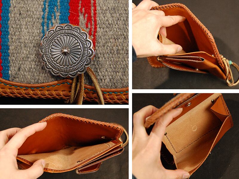 WHOLオリジナル ORTEGA's(オルテガ)ラグ ミドルウォレット NAVAJOオービルホワイトコンチョ使用 ※ ハンドメイド 春 財布 センチネラ NAVAJO ラグ 本革 牛革 手縫い ネイティブ コンチョ Orville White レザーウォレット