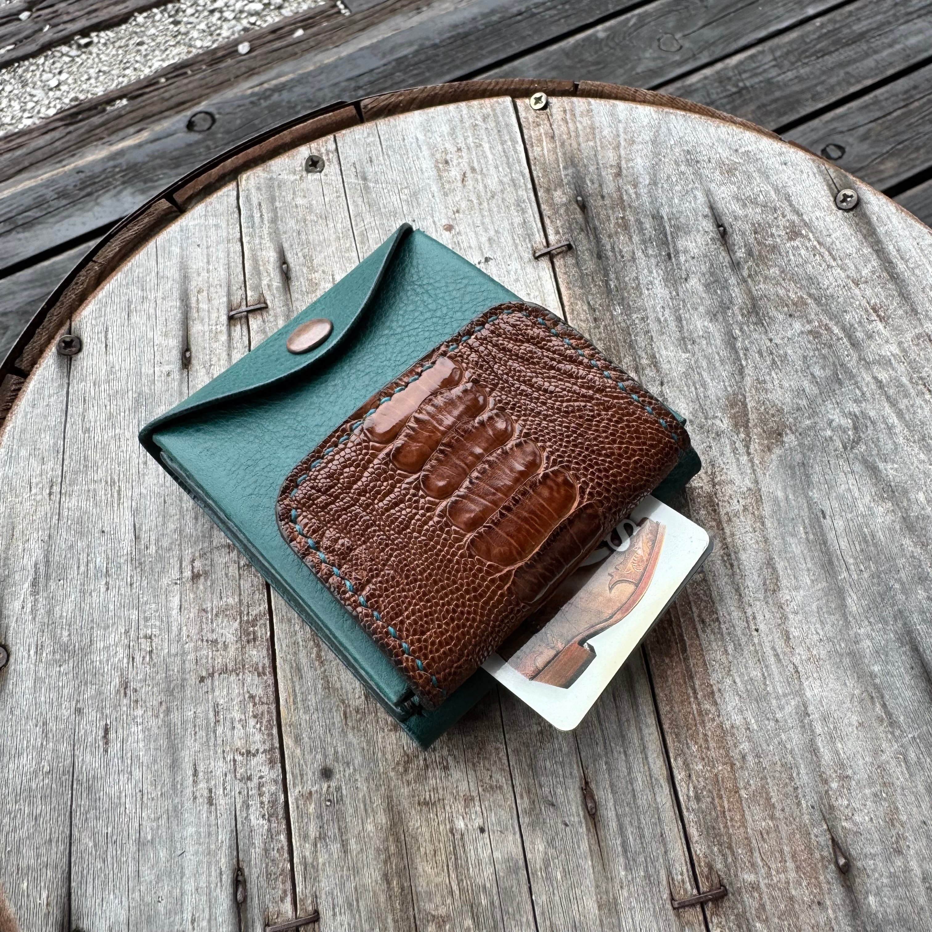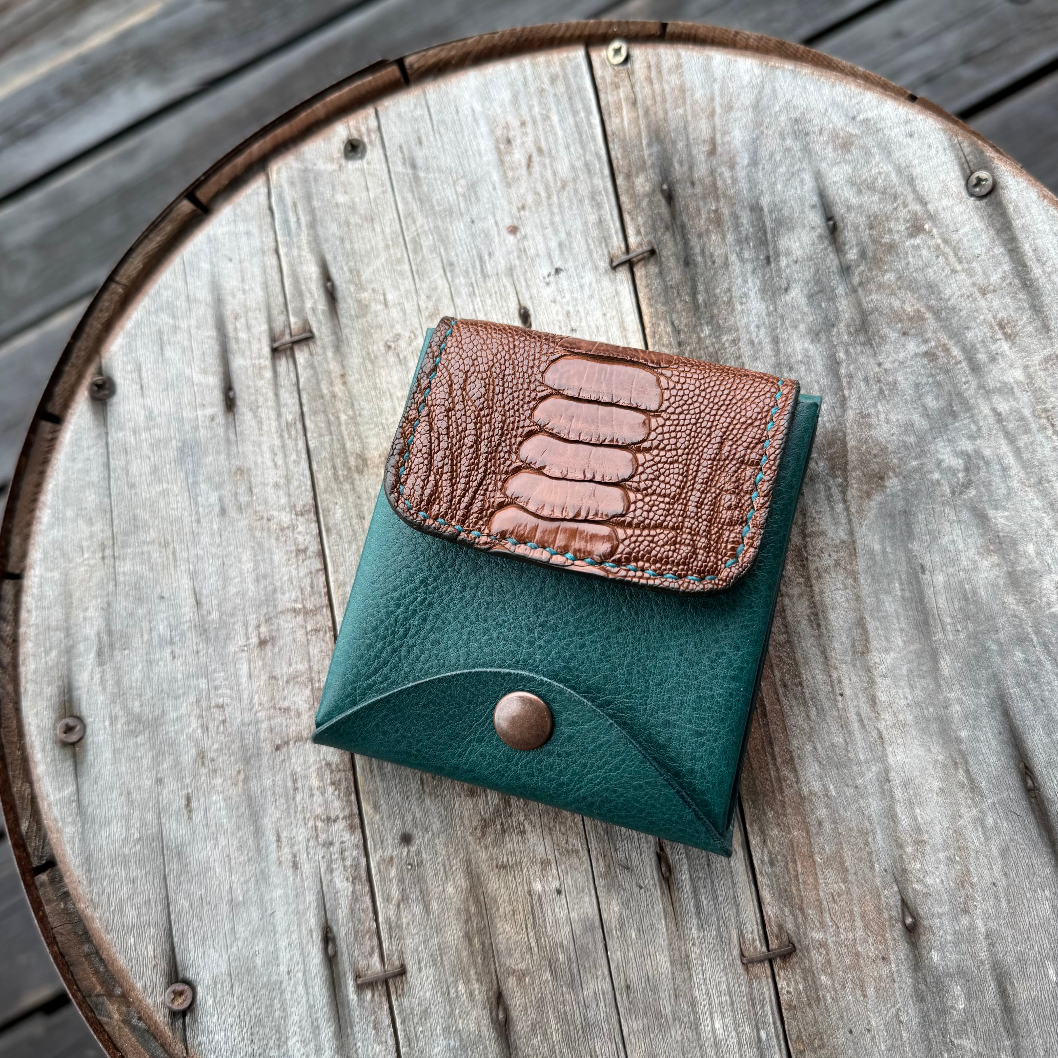 WHOLオリジナル ビルフォードS ミネルバ・ボックスレザー&オーストレッグレザー ※ ハンドメイド 財布 ウォレット コインケース 札ばさみ ダチョウ グリーン ブラウン レザーウォレット