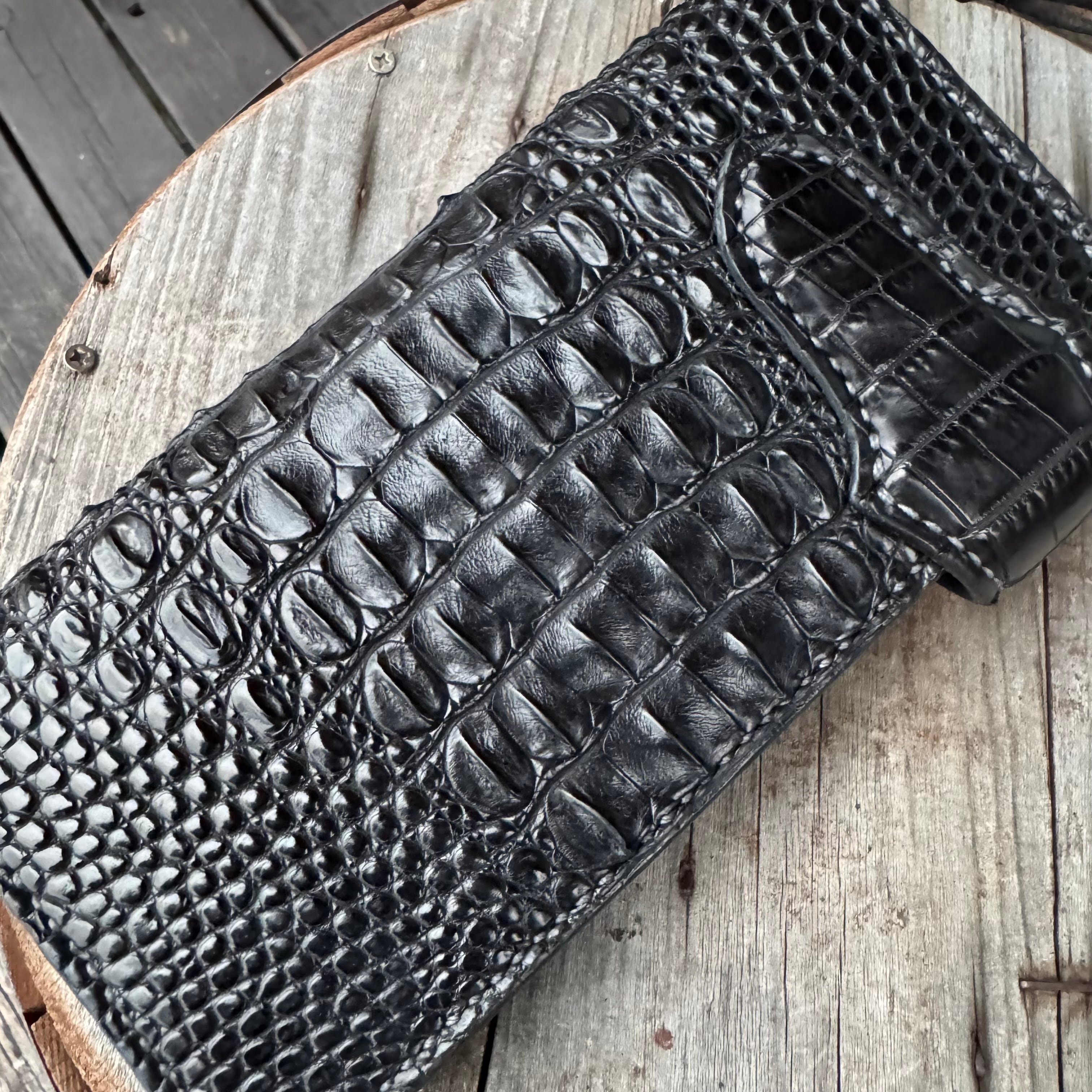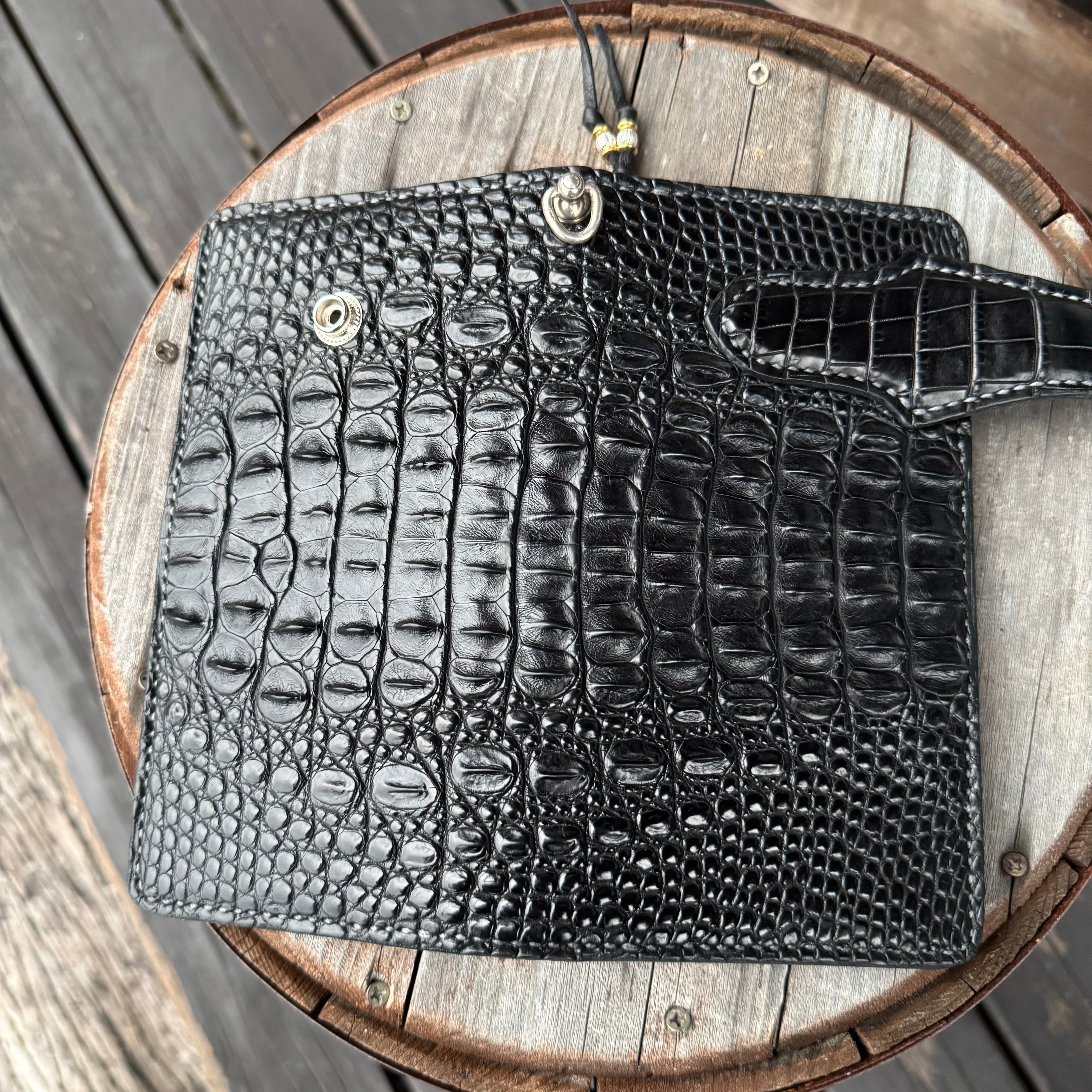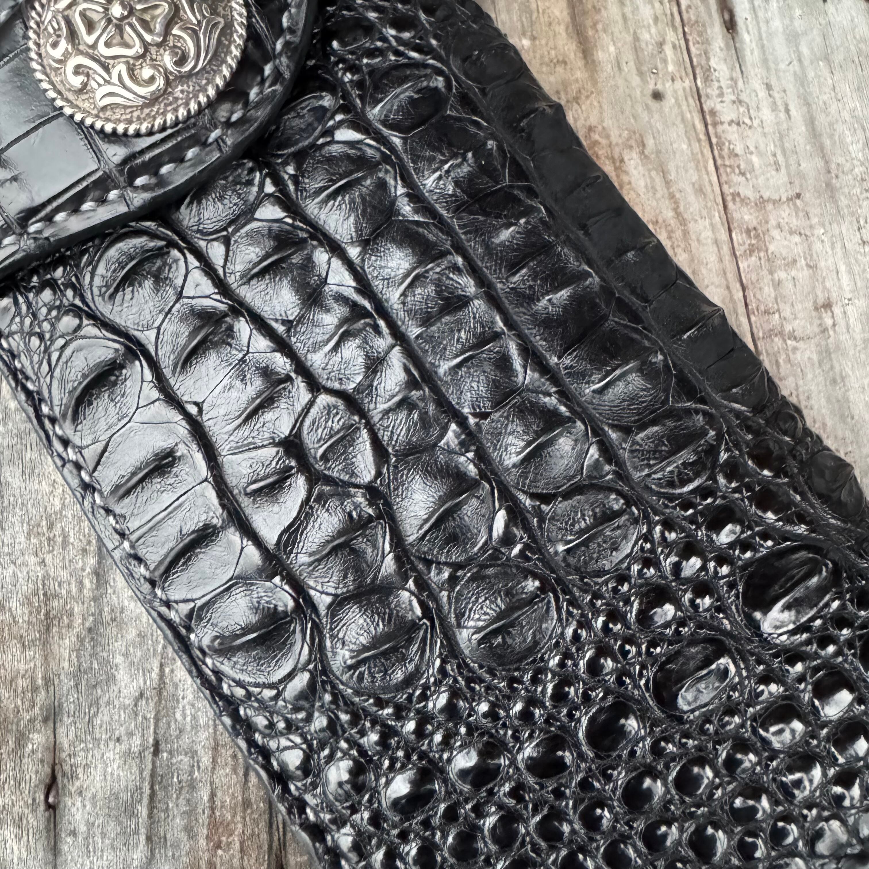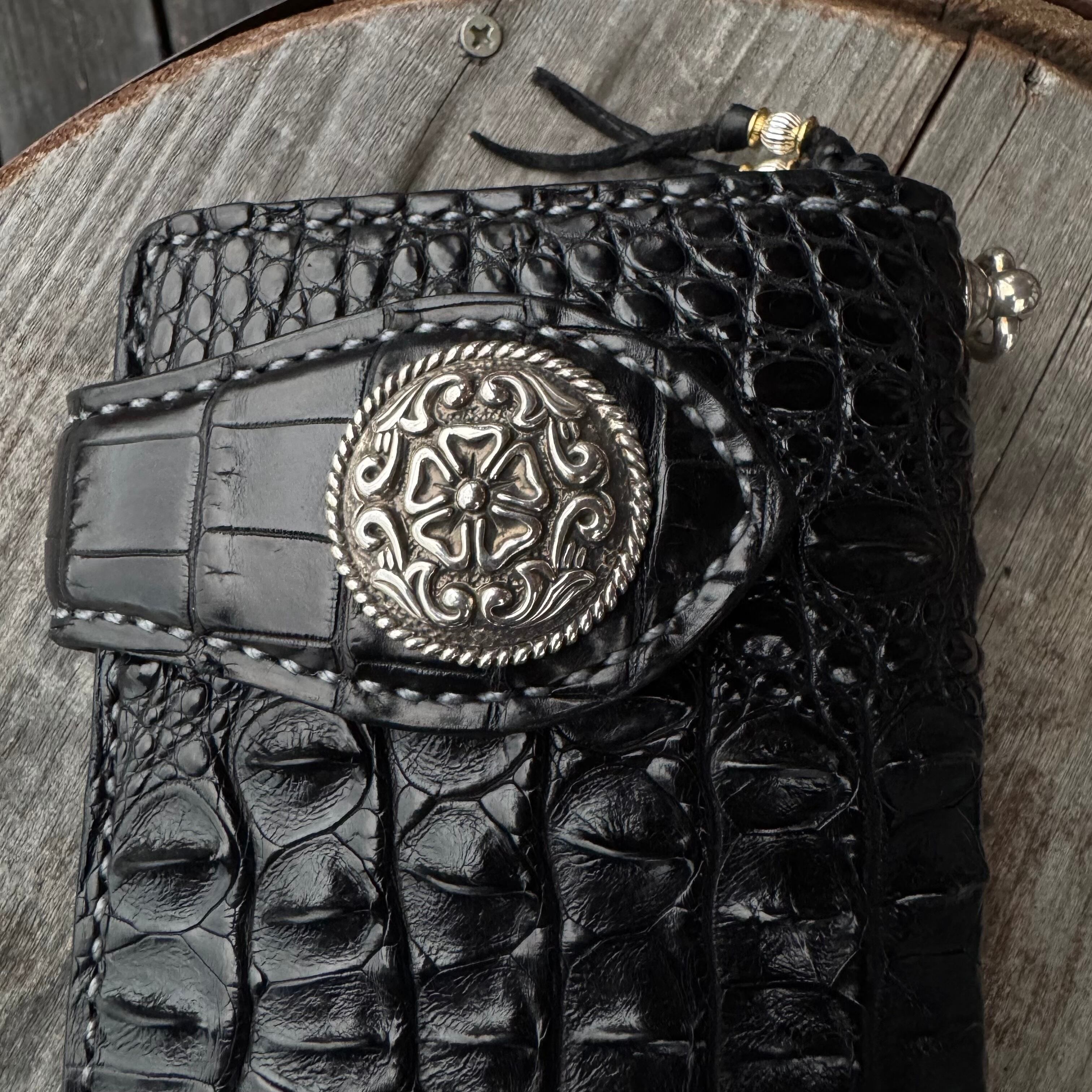 WHOLオリジナルライダースウォレット カイマンクロコレザー ハンドメイド バイカー 手縫い クラフト 財布 ワニ 本革