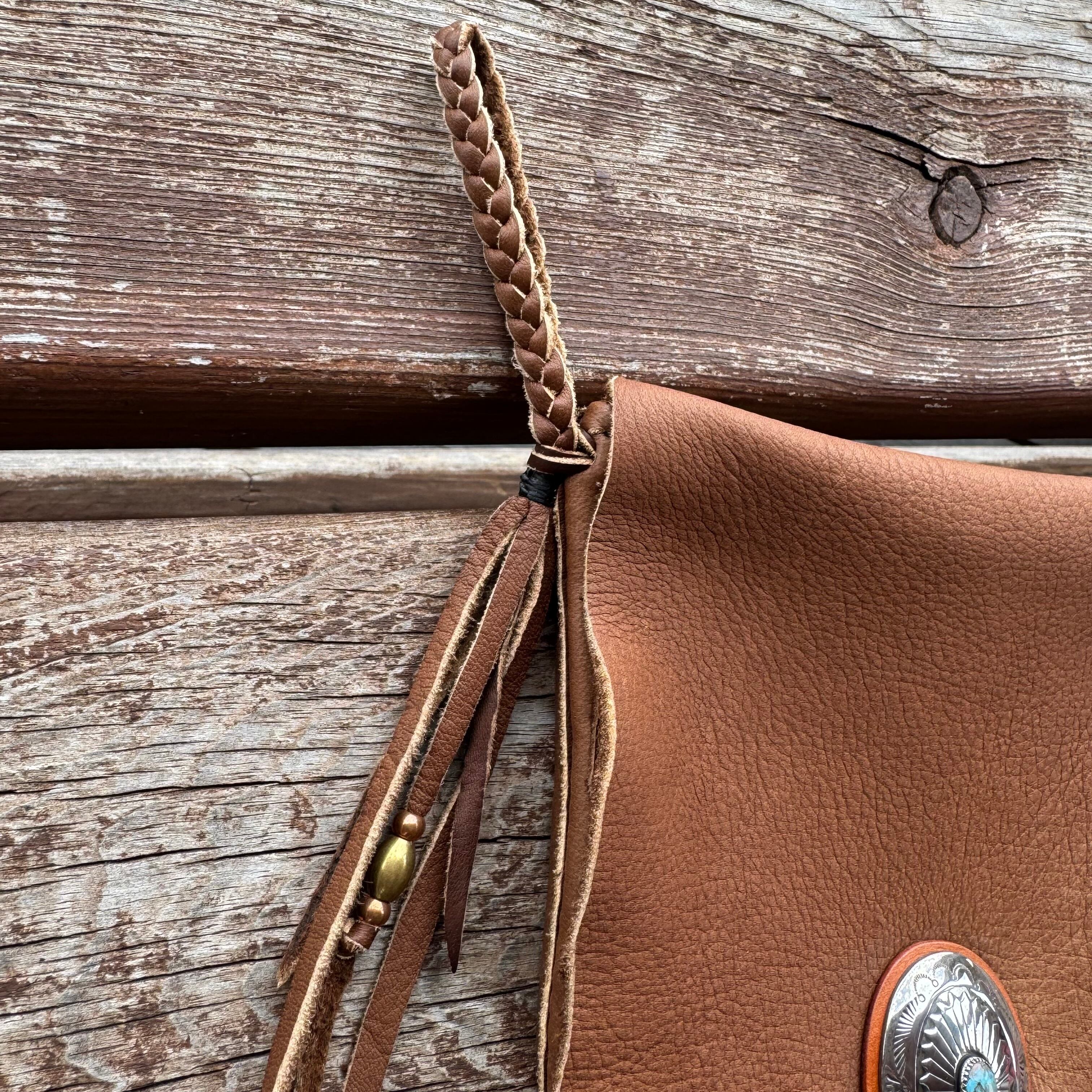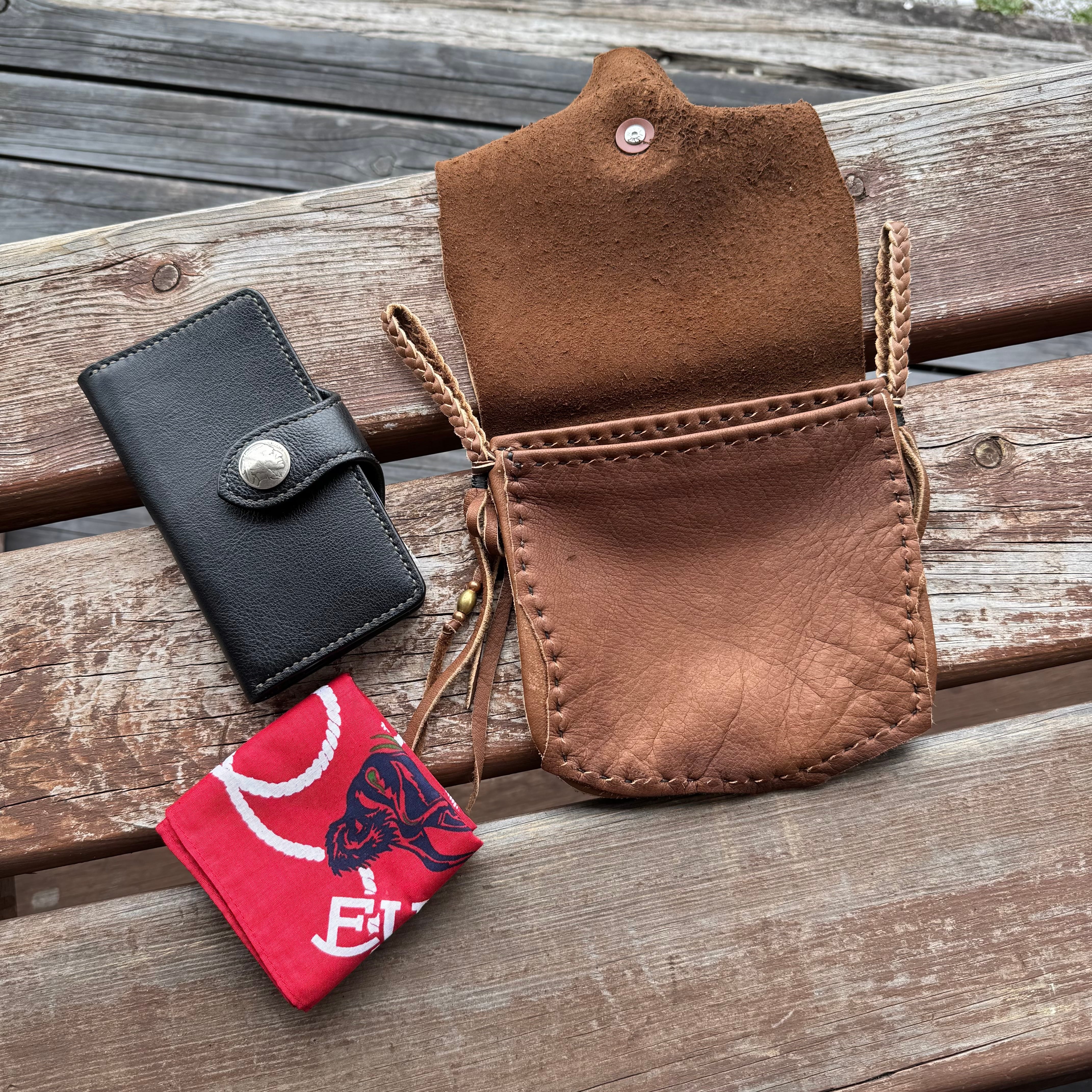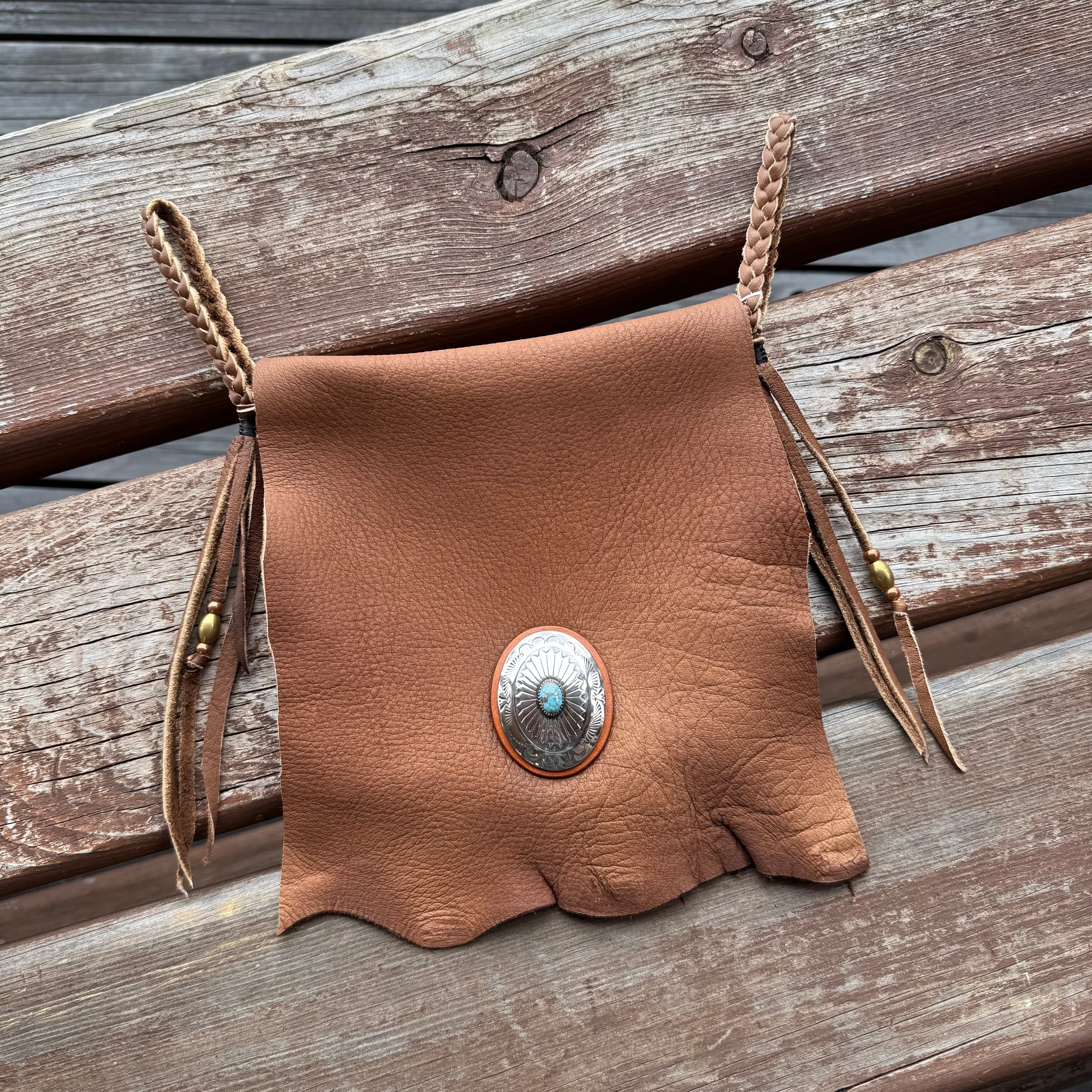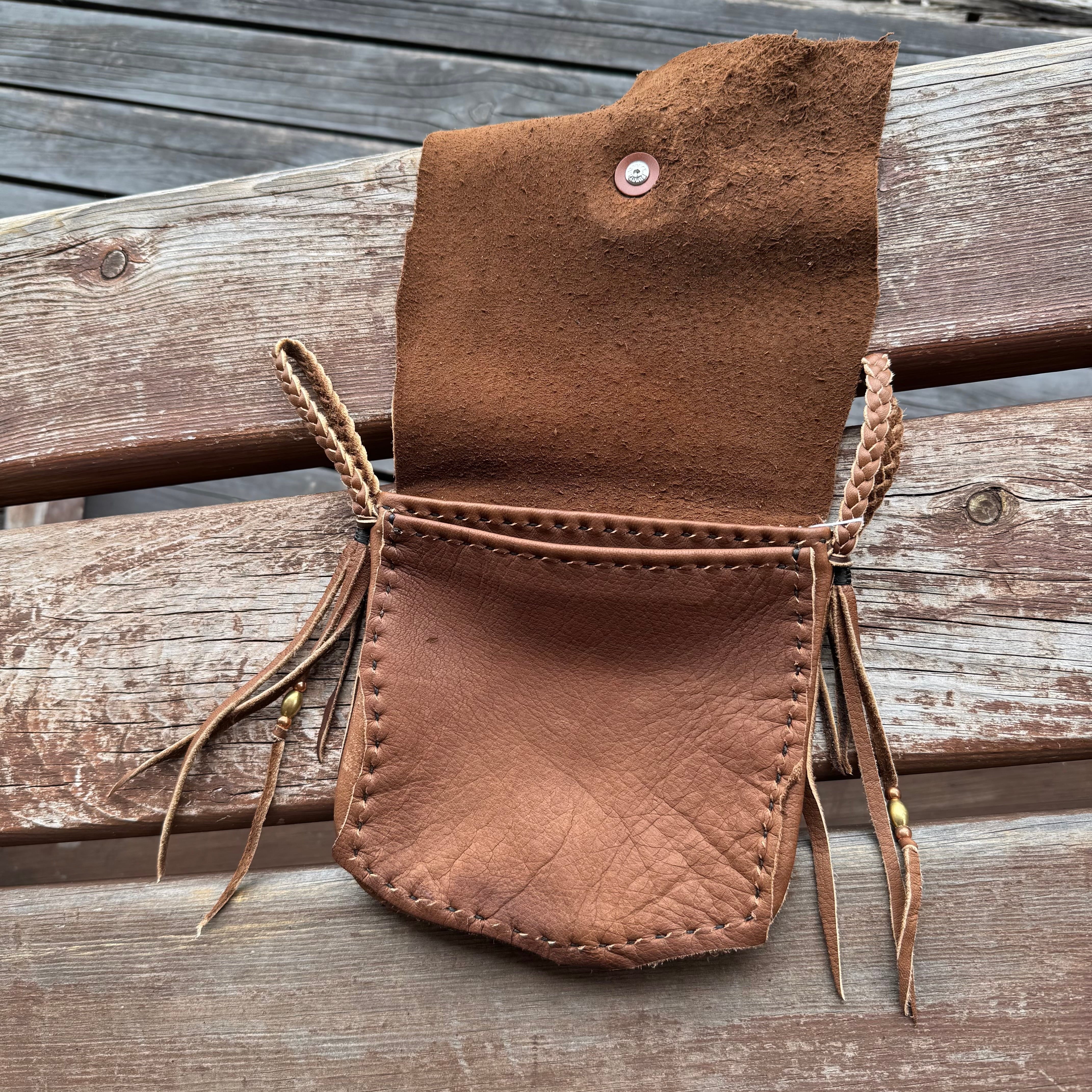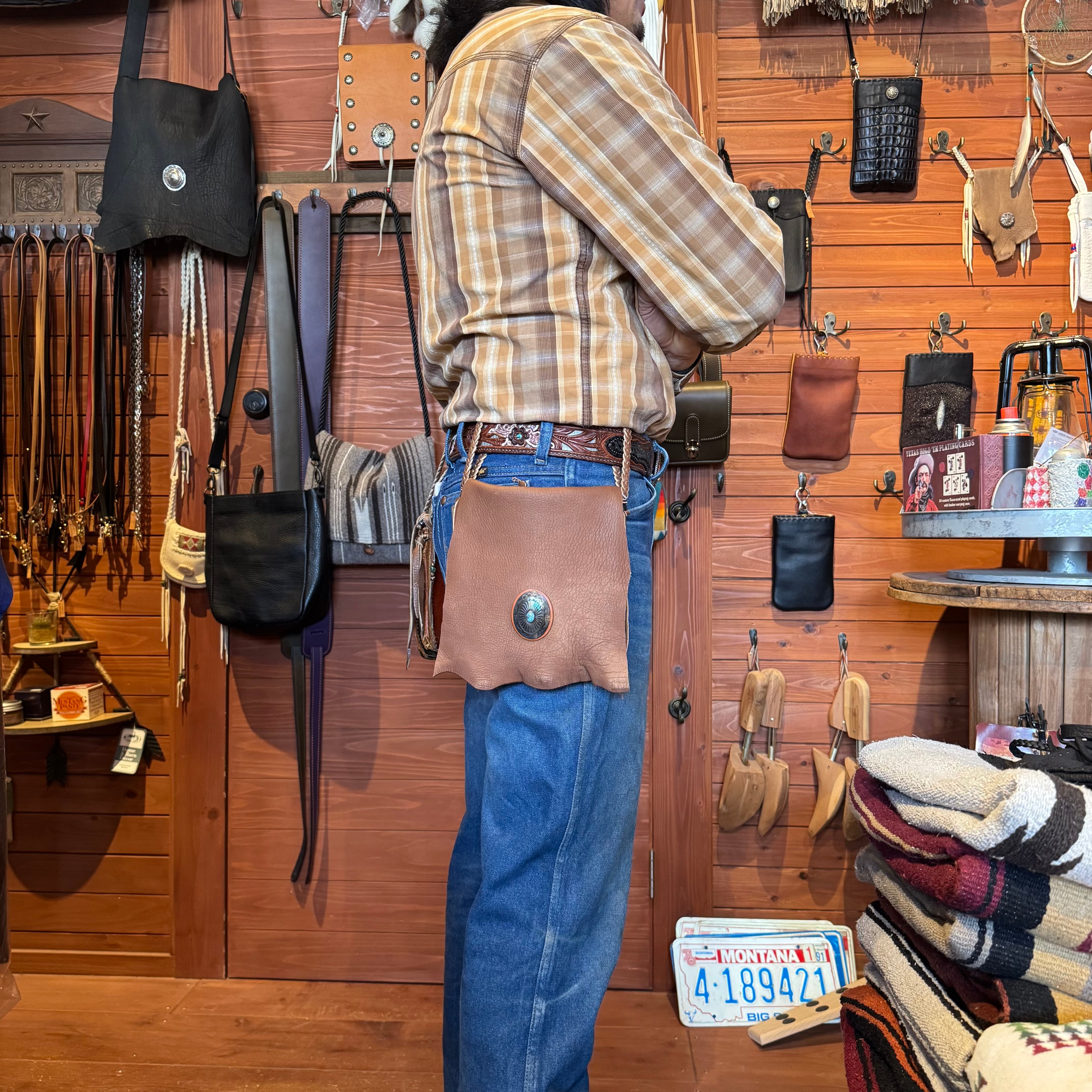 WHOLオリジナル メディスンバッグ エルクレザー バイカー ライダー INDIAN ネイティブ 本革 鹿革 手縫い レザーポーチ ブラウン