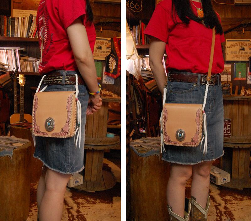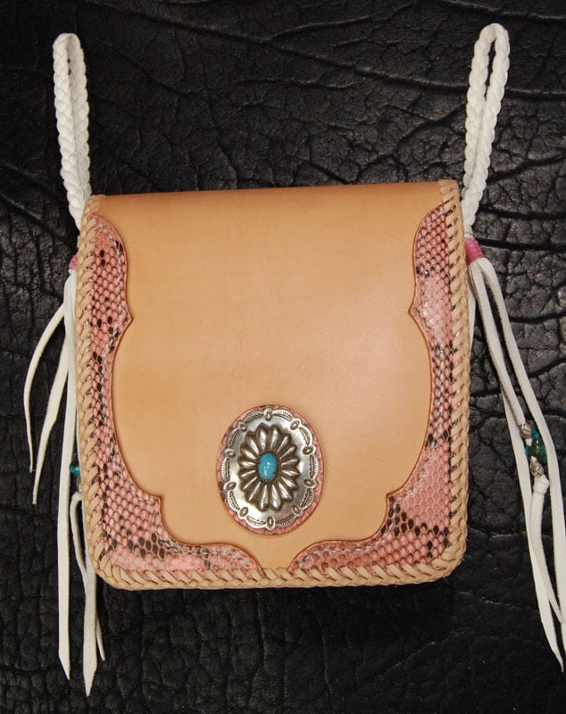 WHOLオリジナル メディスンバッグL(ハードタイプ) 三つ編みループ ハンドメイド ライダー ネイティブ ヒップバッグ 本革 牛革 ヘビ ベルト 箱型 ピンク パイソン スマホポーチ スマホケース レザーポーチ レザーバッグ 手縫い