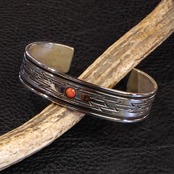 ナバホ族 Trina Bahe作 コーラルバングル。