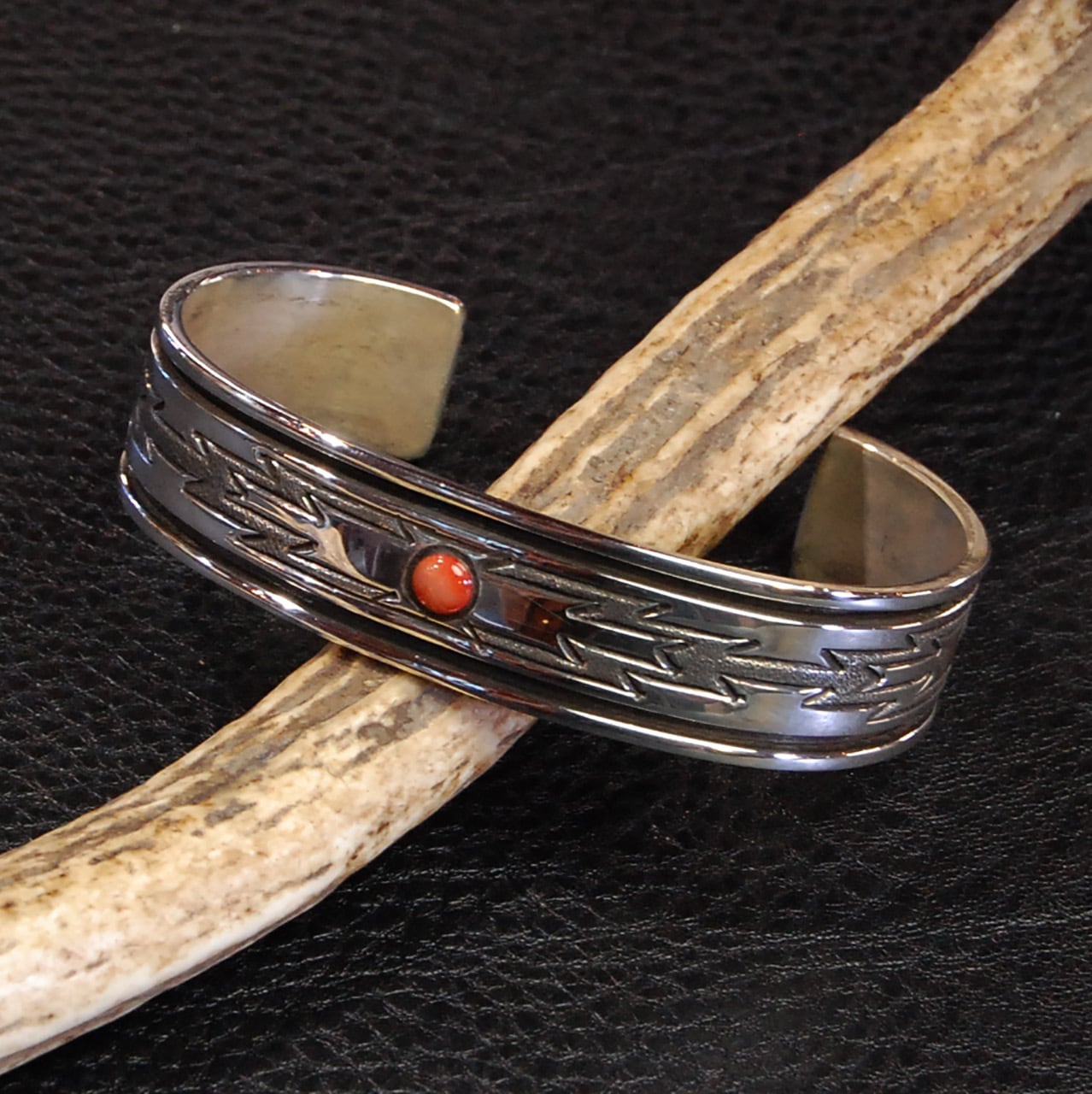 NAVAJO(ナバホ)族 Trina Bahe作 コーラルバングル シルバー INDIAN ネイティブ ズニ ホピ ブレスレット インディアンジュエリー