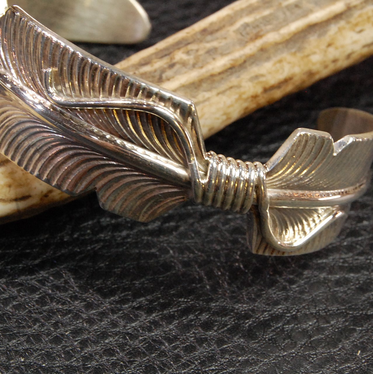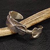 NAVAJO(ナバホ)族 Chester Charlie作 フェザーバングル シルバー INDIAN ネイティブ ズニ ホピ アクセ ブレス 羽根 インディアンジュエリー