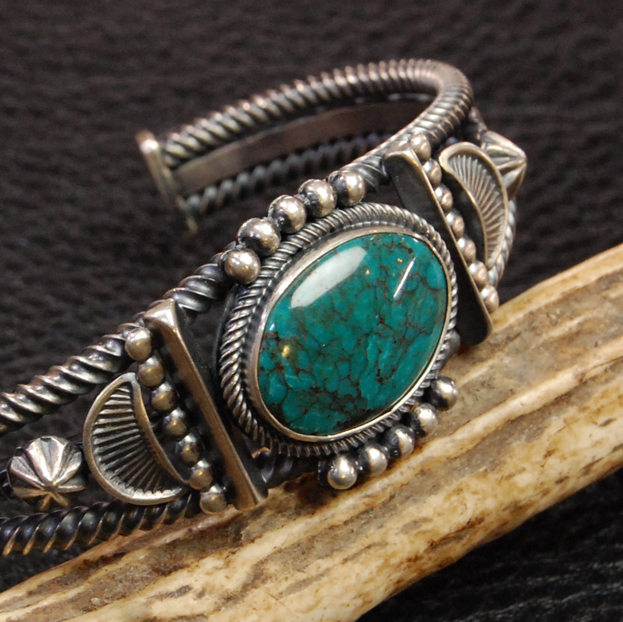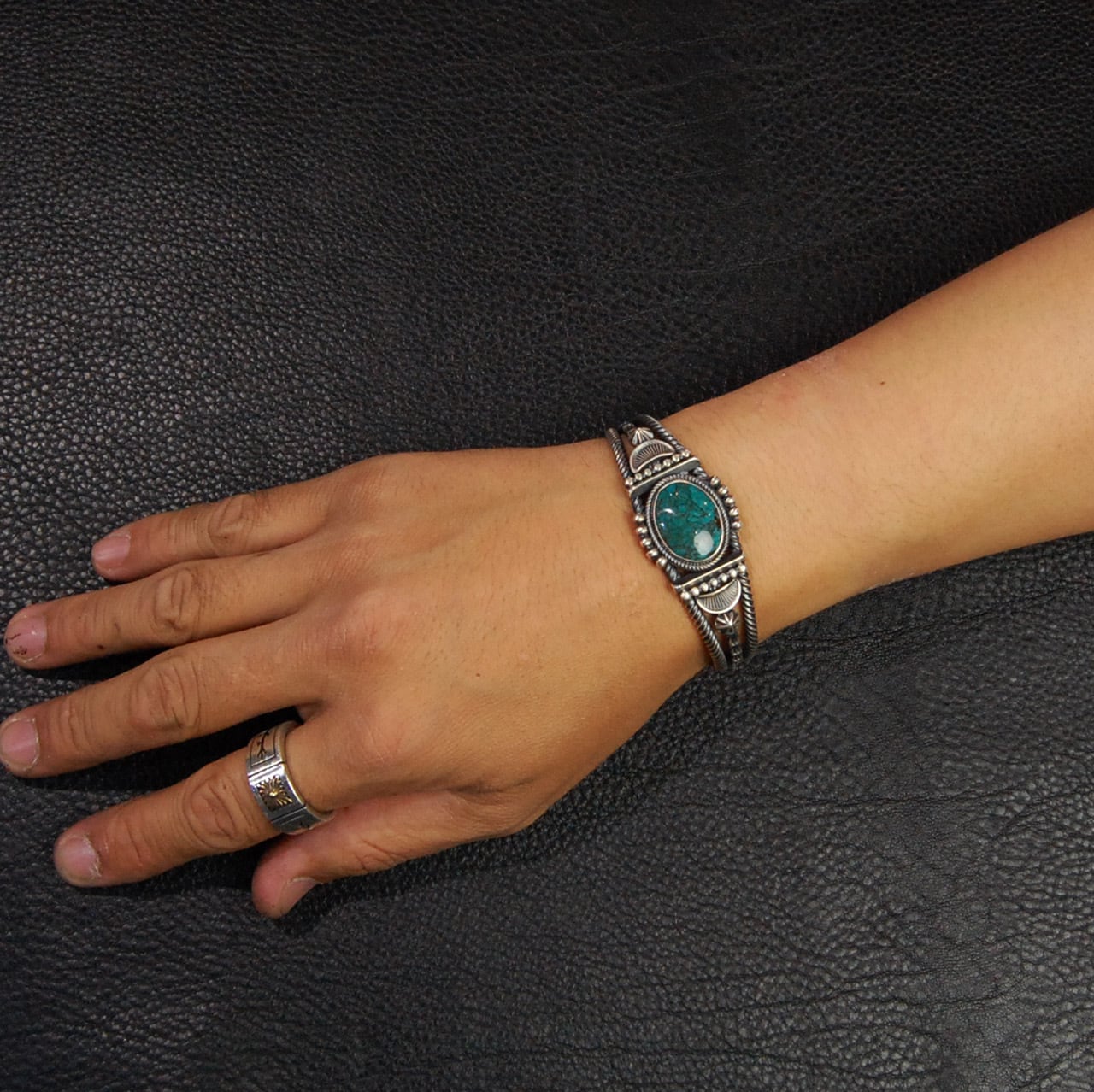 NAVAJO(ナバホ)族 アーティストAaron Toadlena作 China Mountainターコイズバングル シルバー INDIAN ネイティブ ズニ ホピ アクセ ブレス インディアンジュエリー