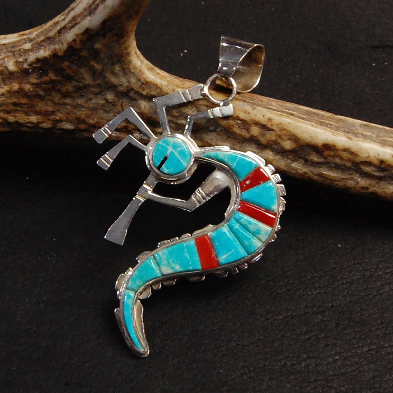 とてもユニークなココペリにはターコイズとコーラルがインレイされています。
