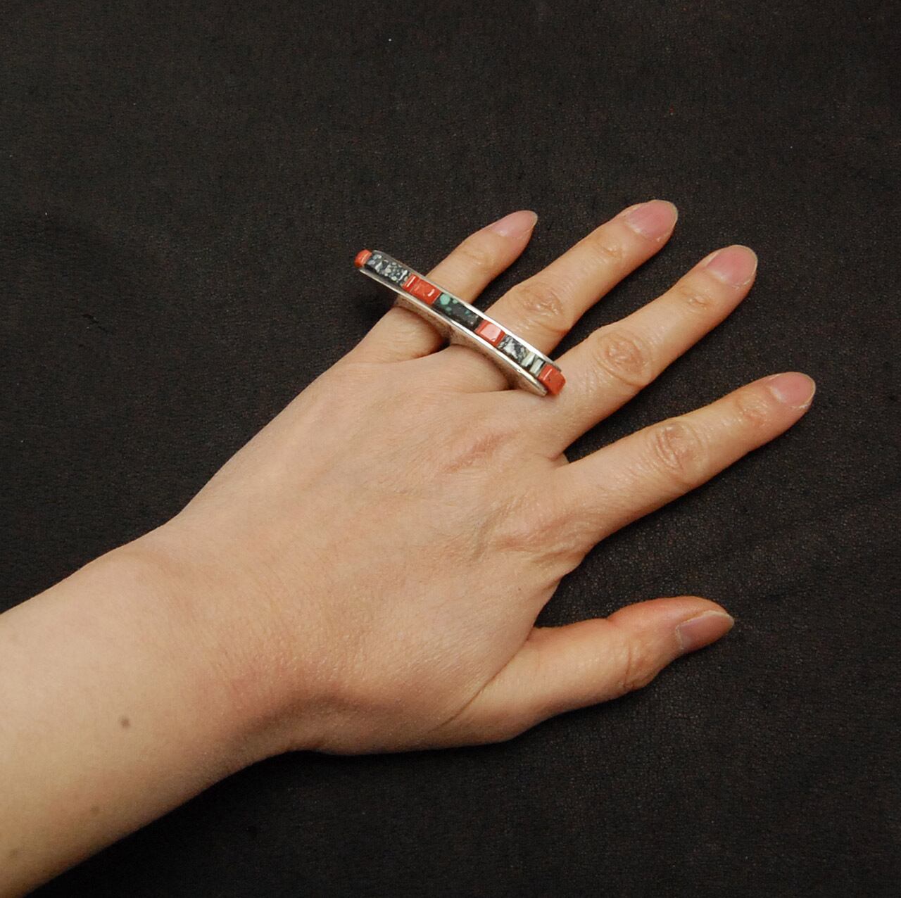 NAVAJO(ナバホ)族 Lester James作 マルチストーンリング 7.5&11.5号 シルバー INDIAN ネイティブ ズニ ホピ アクセ 指輪 インディアンジュエリー トゥファーキャスト