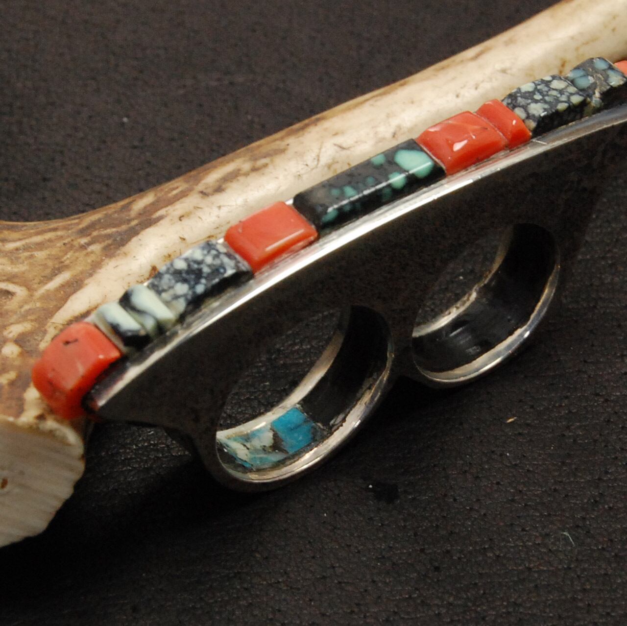 トゥファキャストにコーンロウのような凹凸を付けたインレイワークでリングの内側にもインレイされた贅沢な作品です。