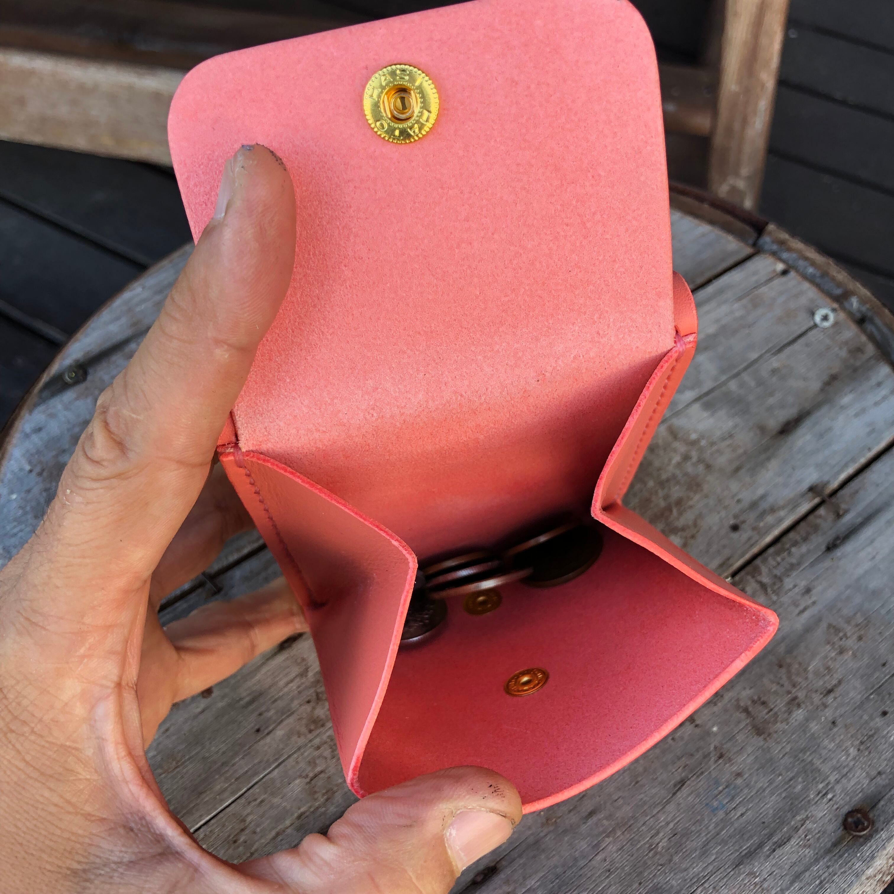 WHOLオリジナル ビルフォードS ティーポレザー ※ ハンドメイド 手縫い 財布 ウォレット コインケース 札ばさみ 牛革 本革 ピンク レザーウォレット
