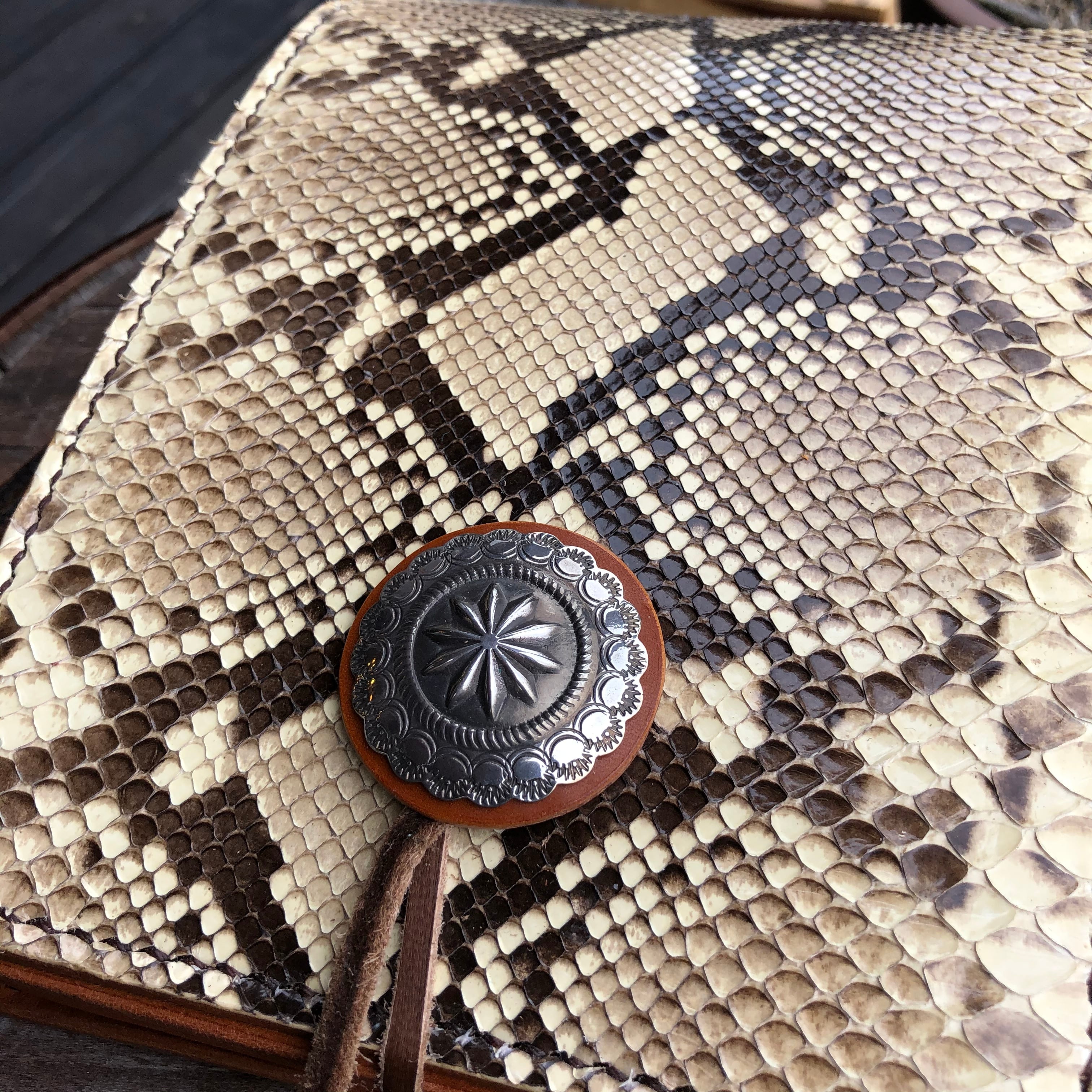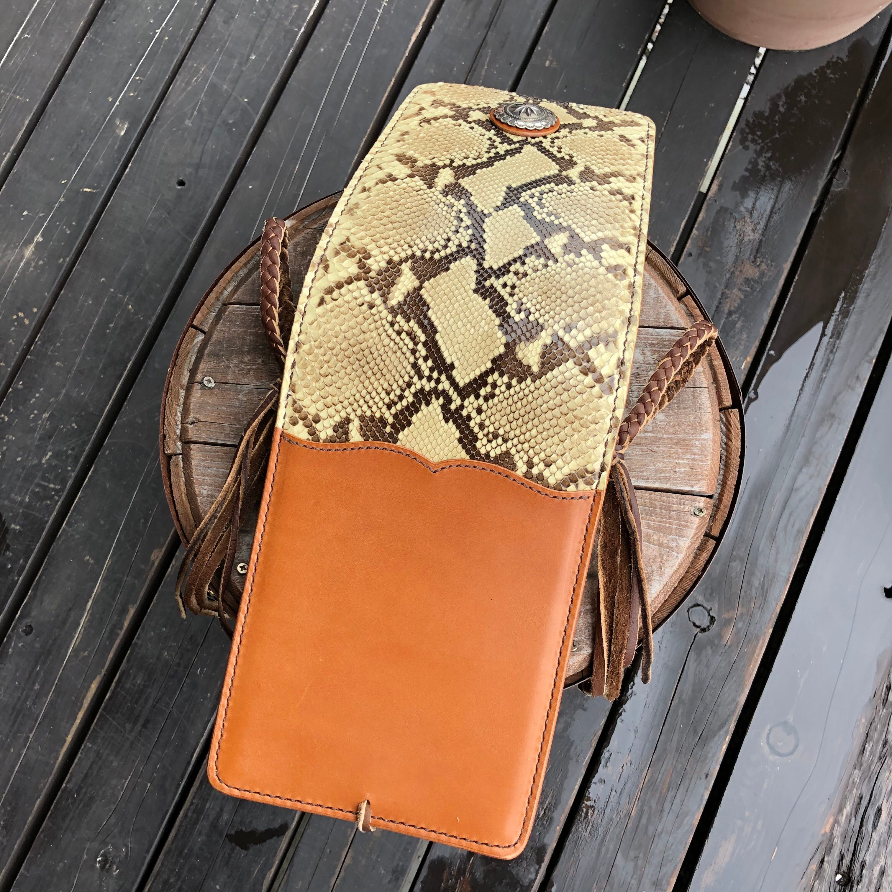 WHOLオリジナル パイソンレザーメディスンバッグL(ハードタイプ) NDIAN ネイティブ ヒップバッグ 本革 牛革 手縫い ハンドメイド ベルト 箱型 スマホポーチ スマホケース レザーポーチ レザーバッグ ヘビ