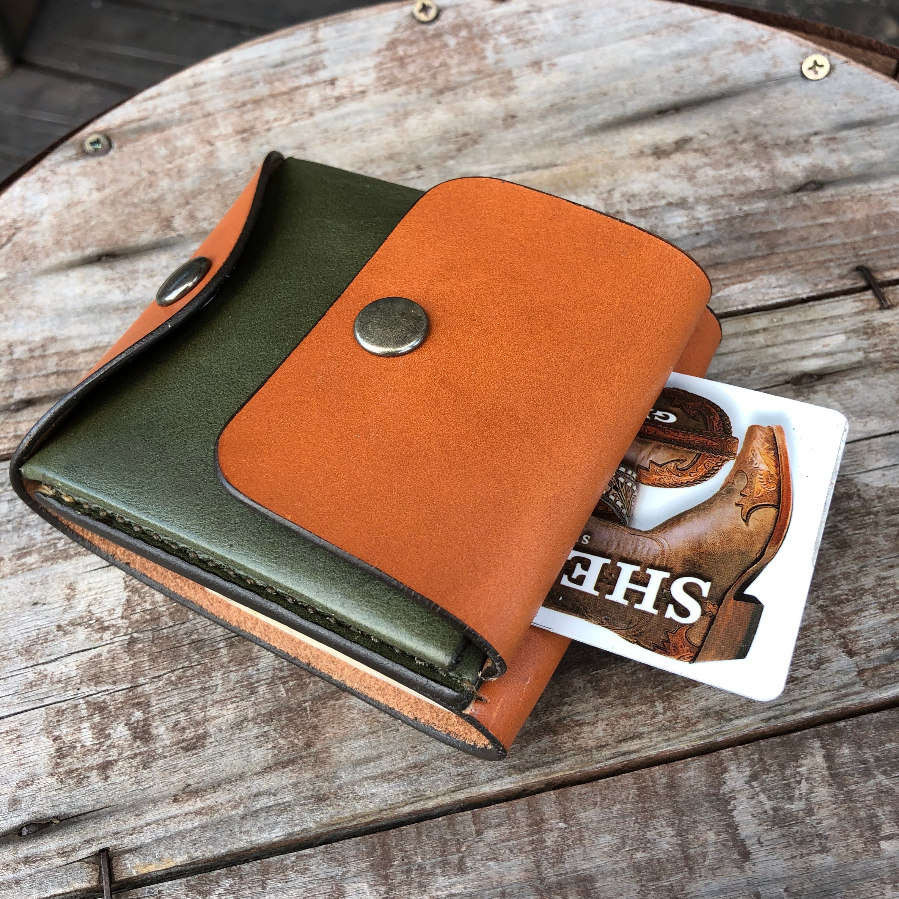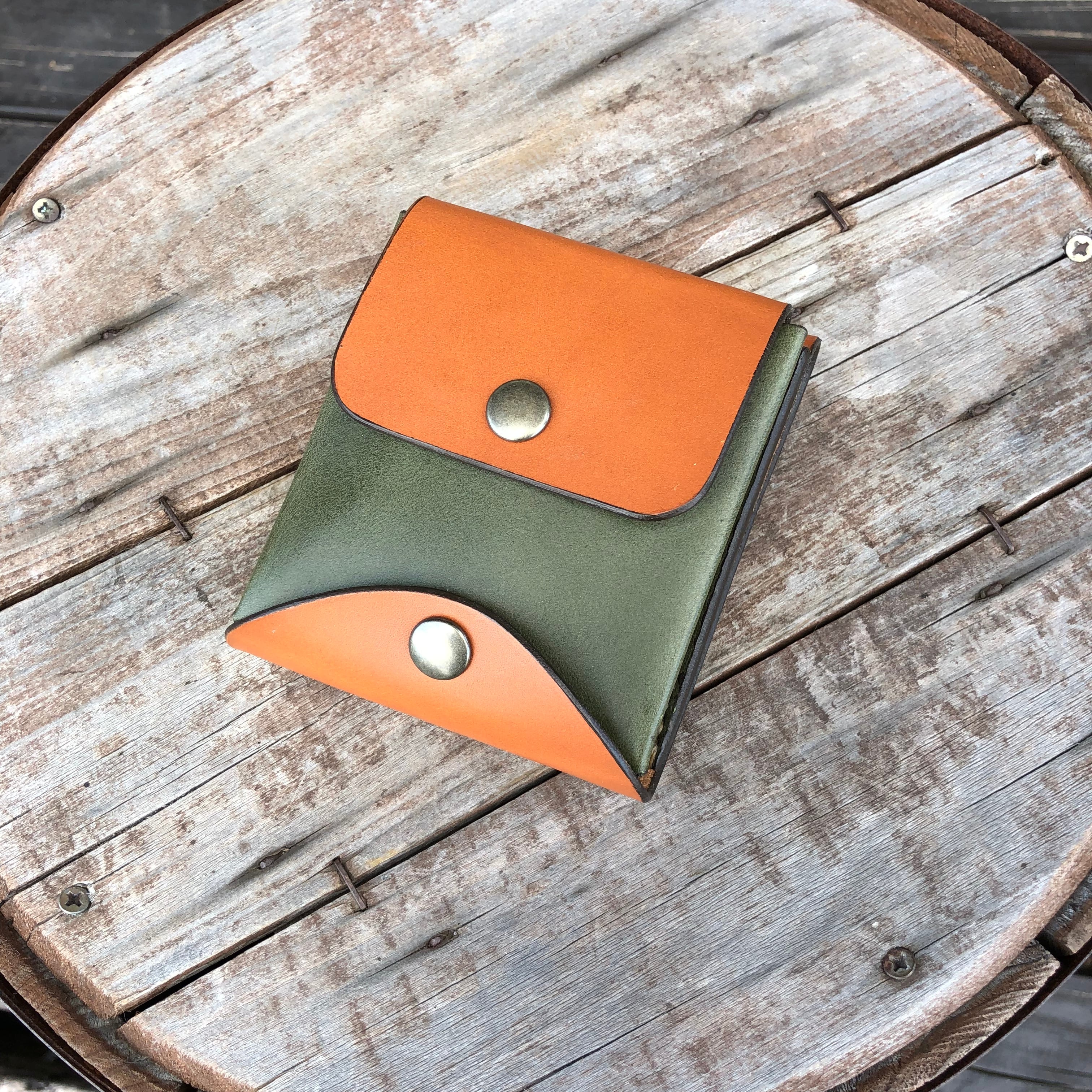 WHOLオリジナル ビルフォードS リオショルダー使用 ハンドメイド 財布 ウォレット コインケース 札ばさみ 本革 牛革 レザーウォレット グリーン×ブラウン
