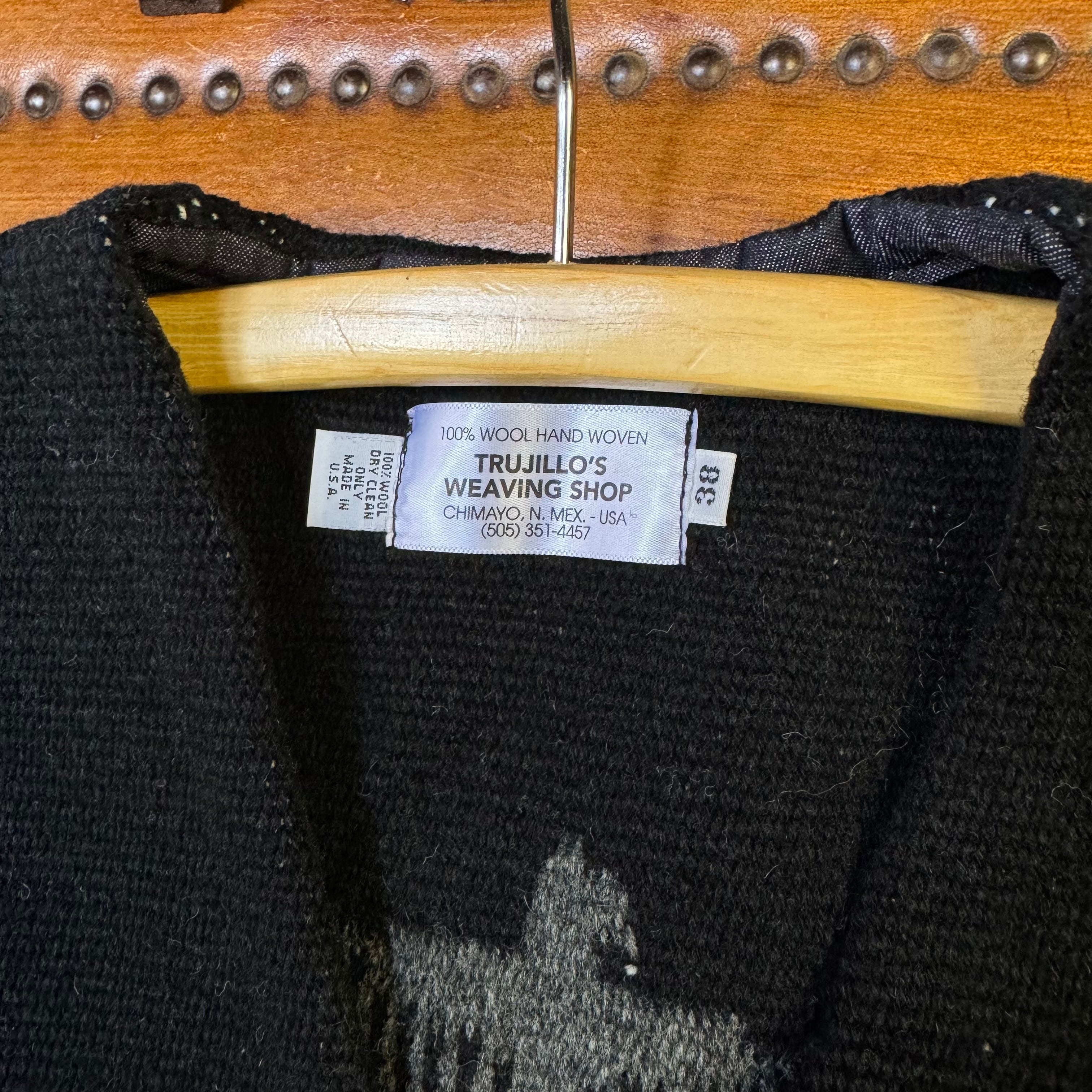 TRUJILLO'S(トルフィリオス)ラグ チマヨベスト サイズ38 センチネラ オルテガ チマヨ インディアン INDIAN 手織り ブラック イーグル