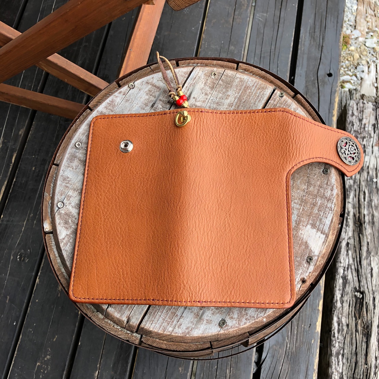 WHOLオリジナル ライダース ウォレット フラップ一体型 ハンドメイド アリゾナレザー リオショルダーレザー 財布 手縫い 牛革 本革 長財布 ブラウン レザーウォレット