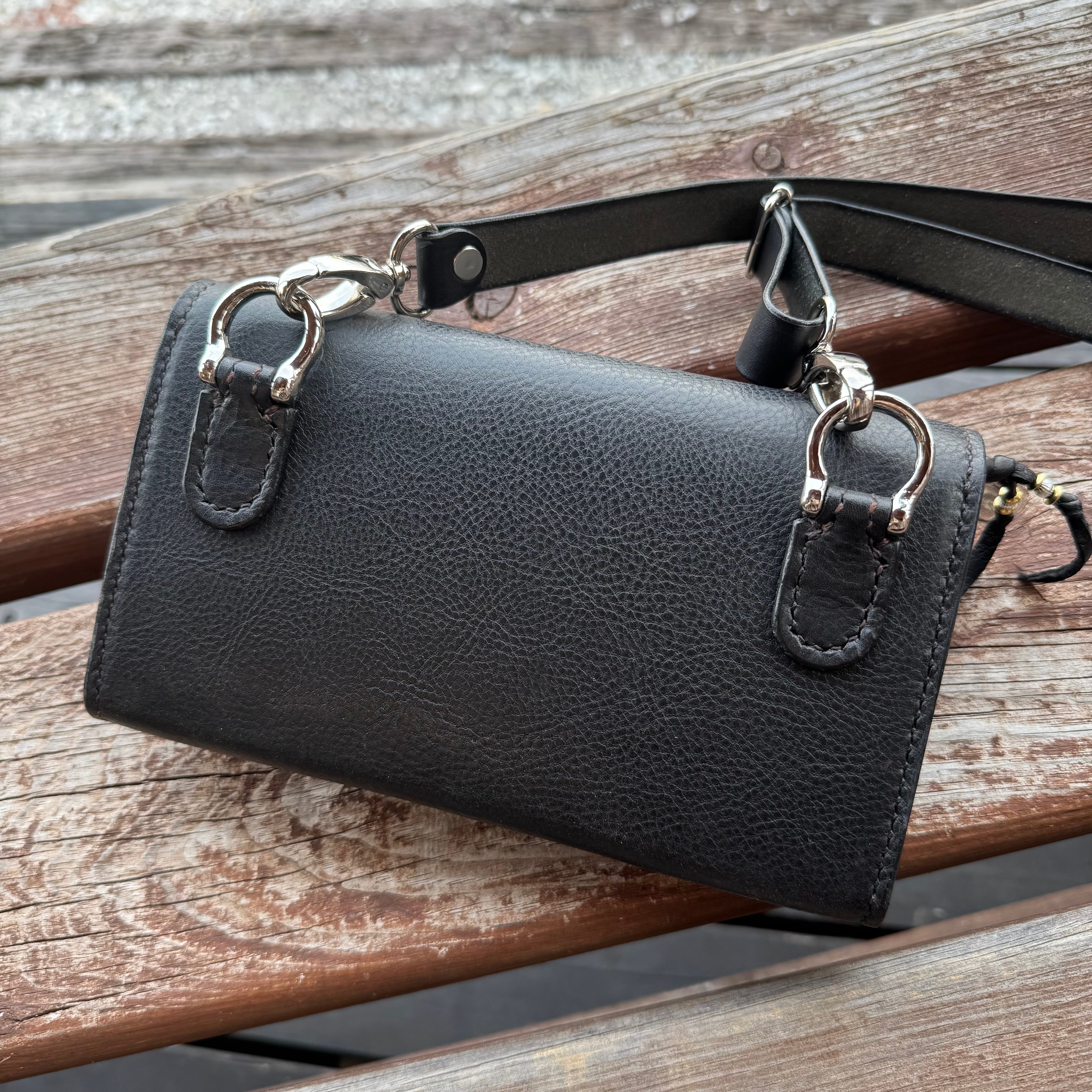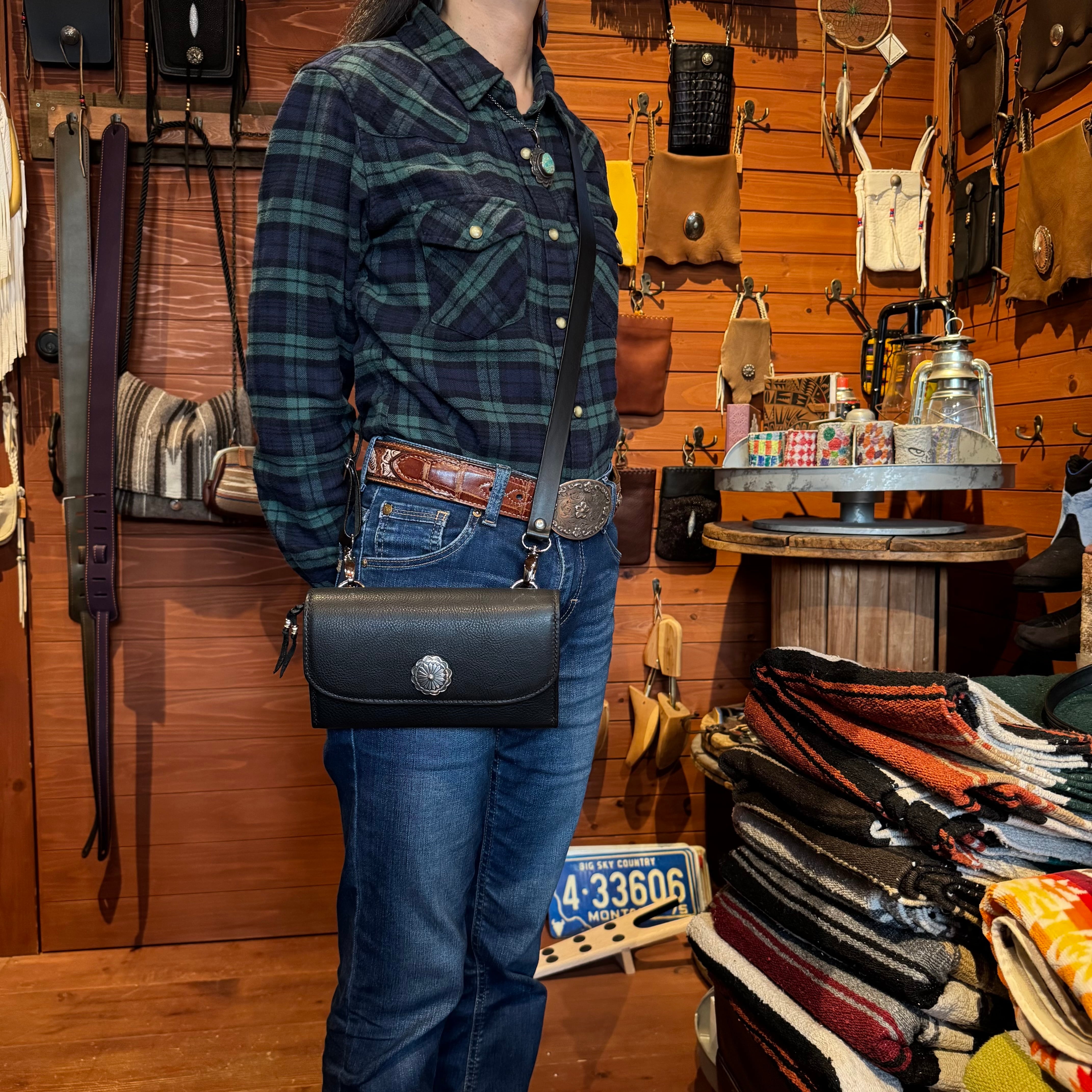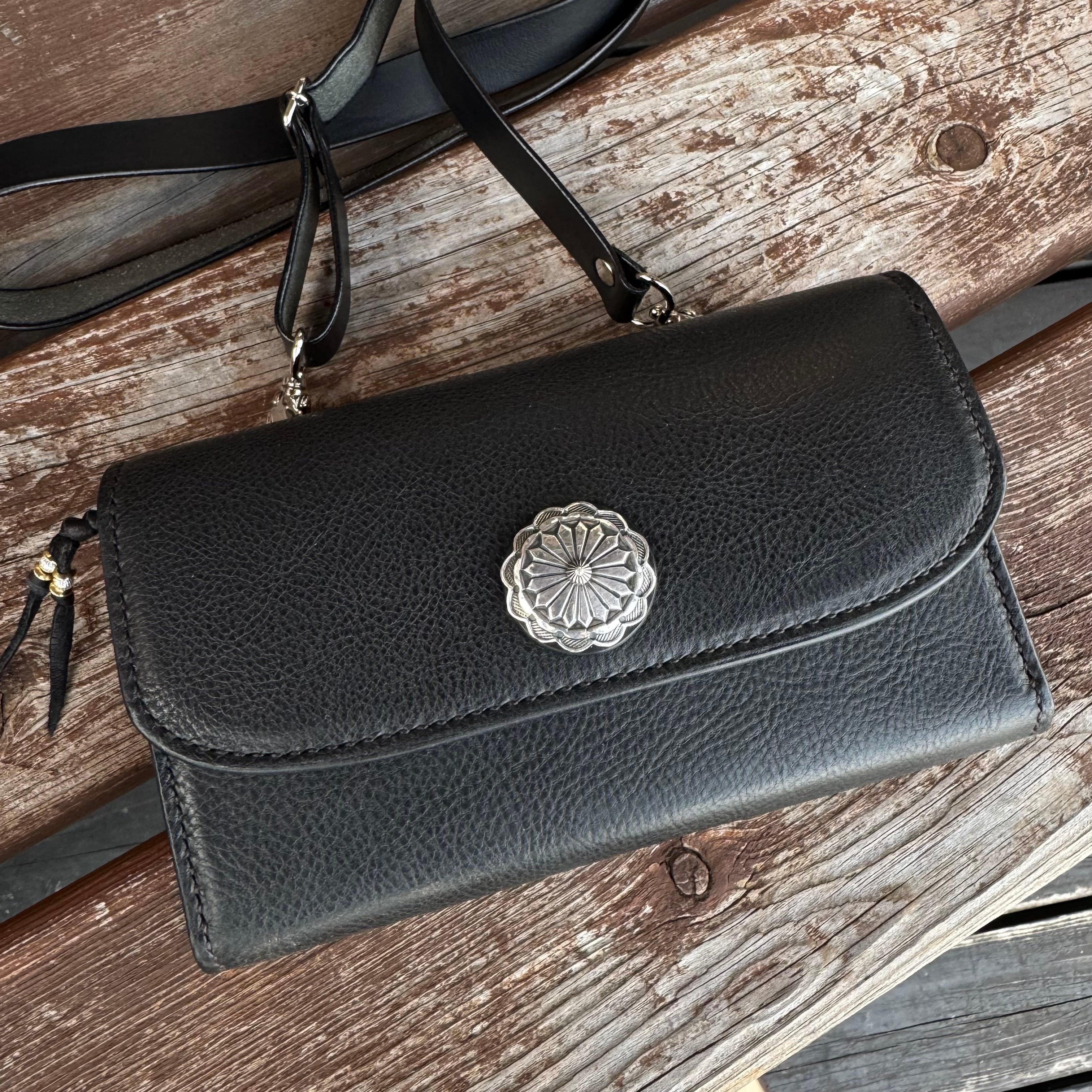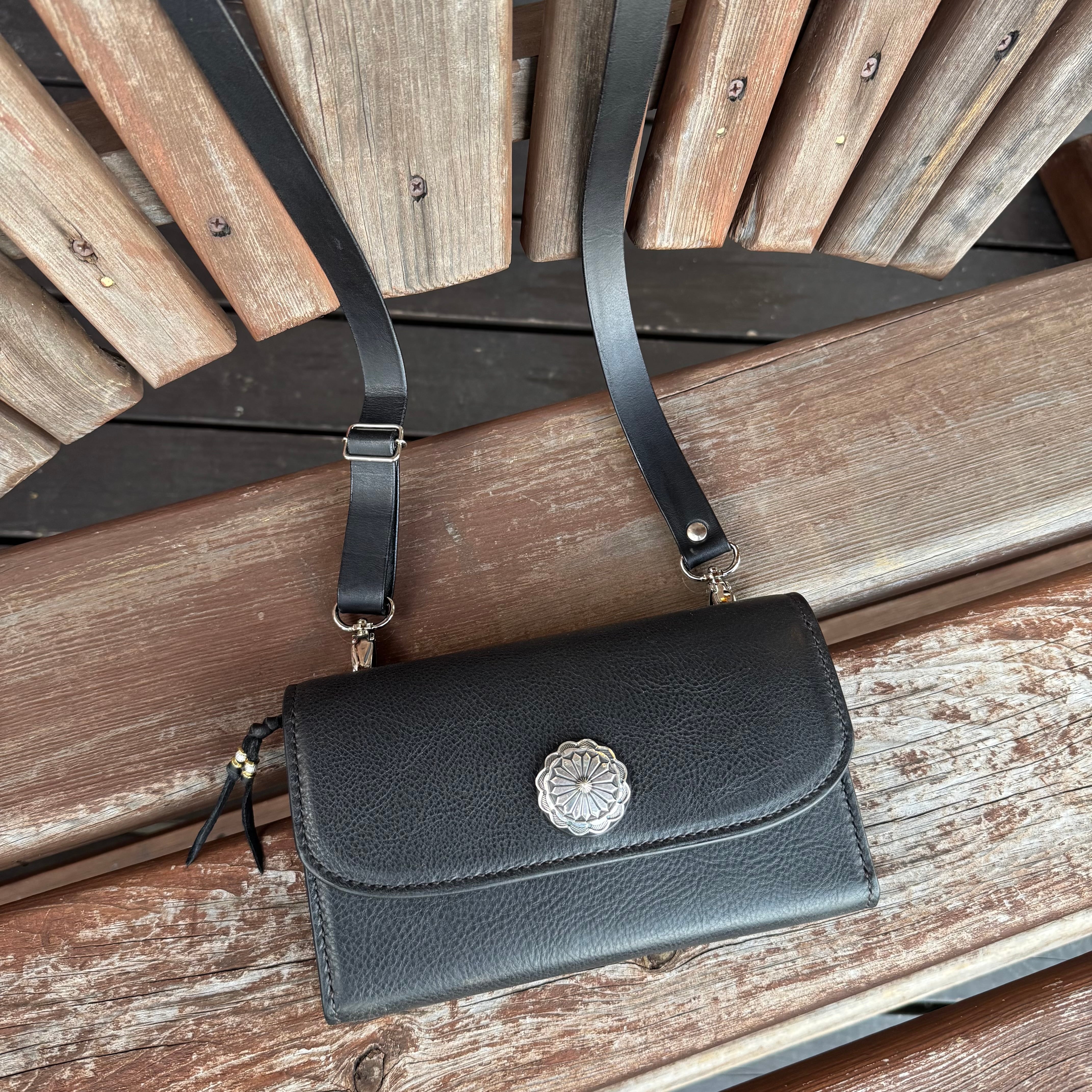 WHOL×SUNSHINE・REEVES(NAVAJO)Wネーム ポーチウォレット ハンドメイド 財布 本革 手縫い 牛革 長財布 ブラック ショルダーバッグ