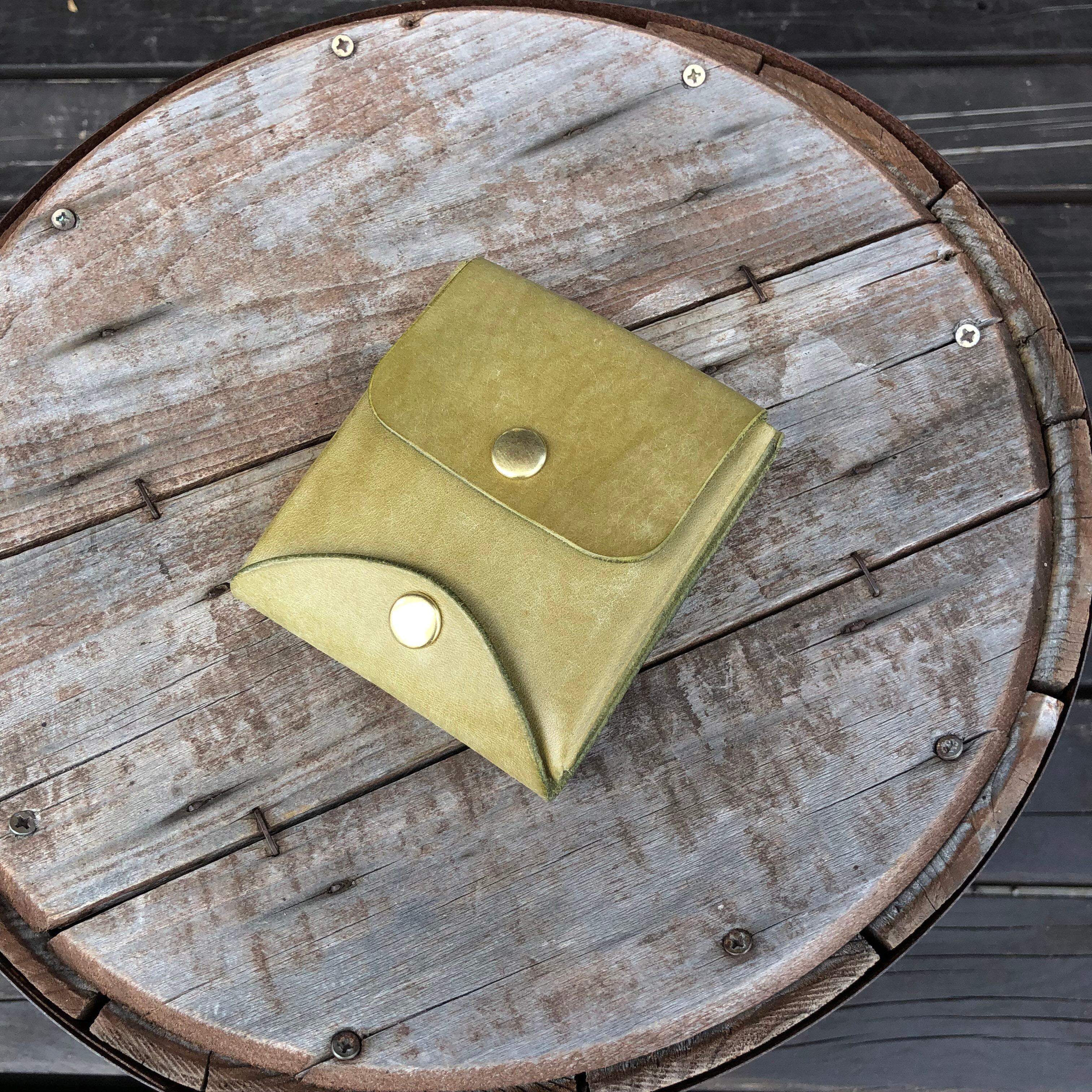 WHOLオリジナル ビルフォードS ショルダーレザー ※ ハンドメイド 手縫い 財布 ウォレット コインケース 札ばさみ 牛革 本革 オリーブ レザーウォレット ツートン
